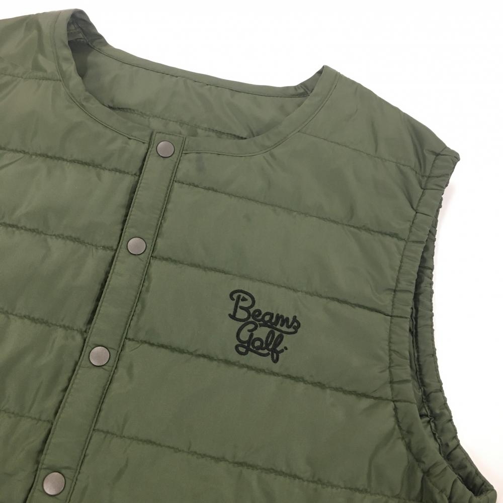 【美品】ビームスゴルフ 中綿ベスト カーキ ロゴ刺しゅう レディース S ゴルフウェア BEAMS GOLF
