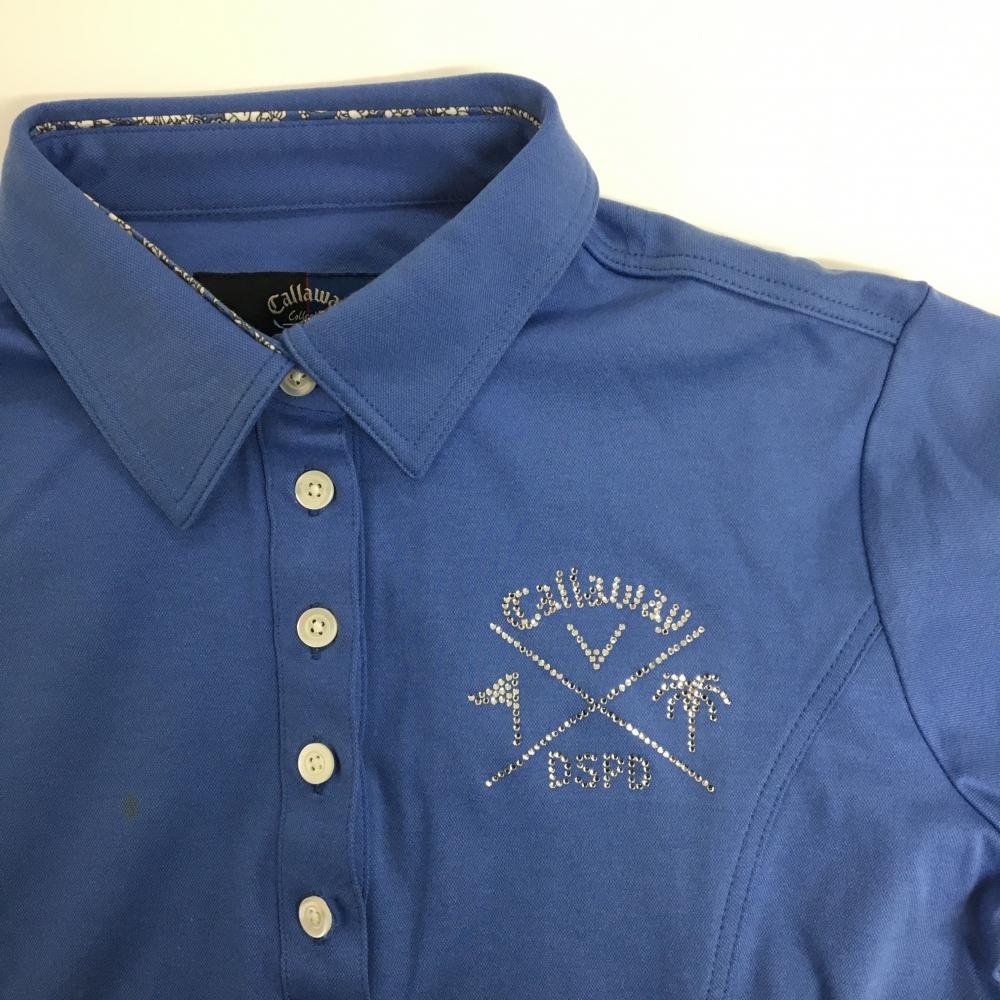 キャロウェイ 半袖ポロシャツ ブルー ラインストーンロゴ レディース L ゴルフウェア Callaway