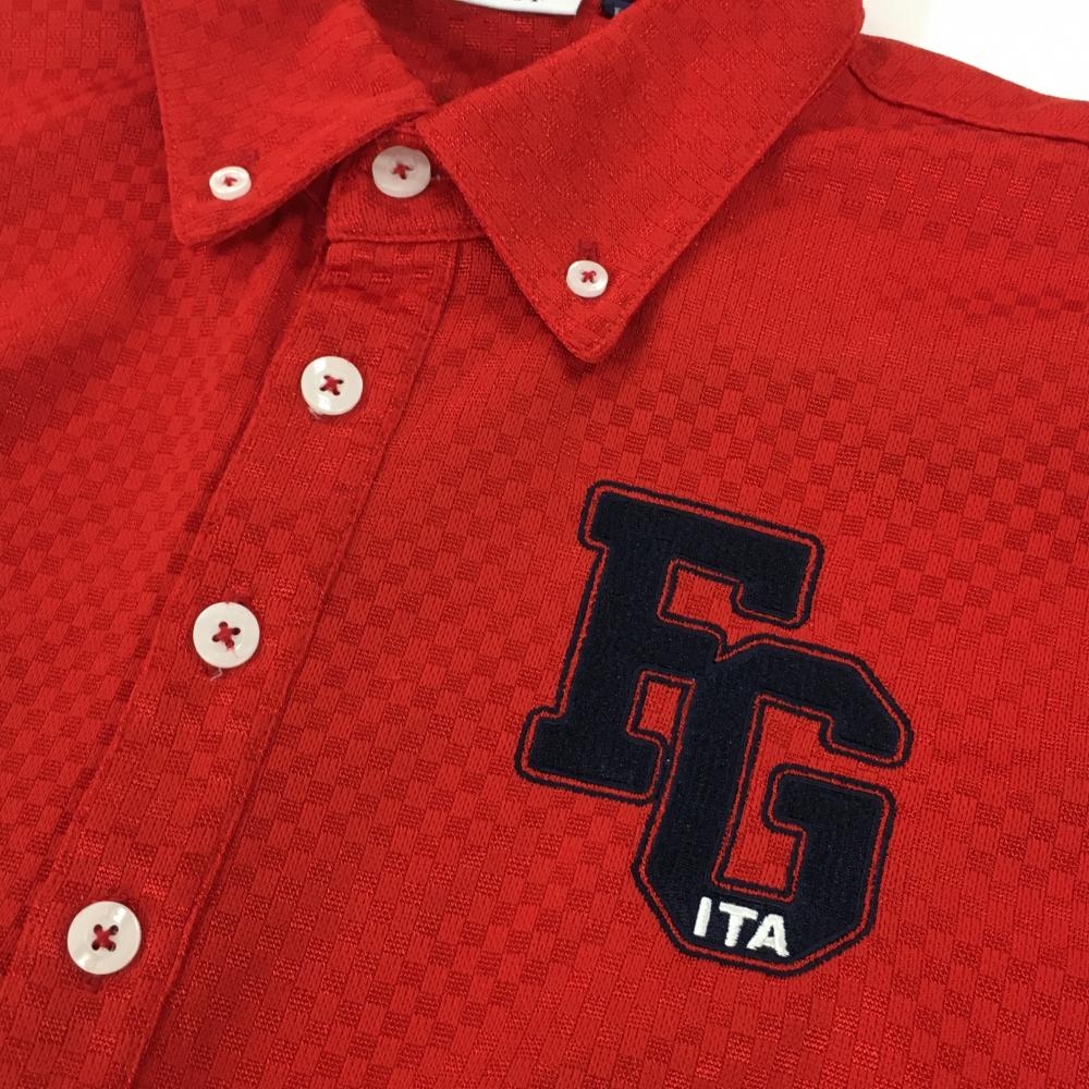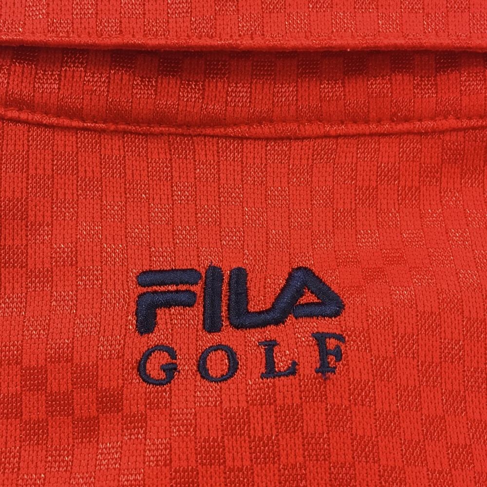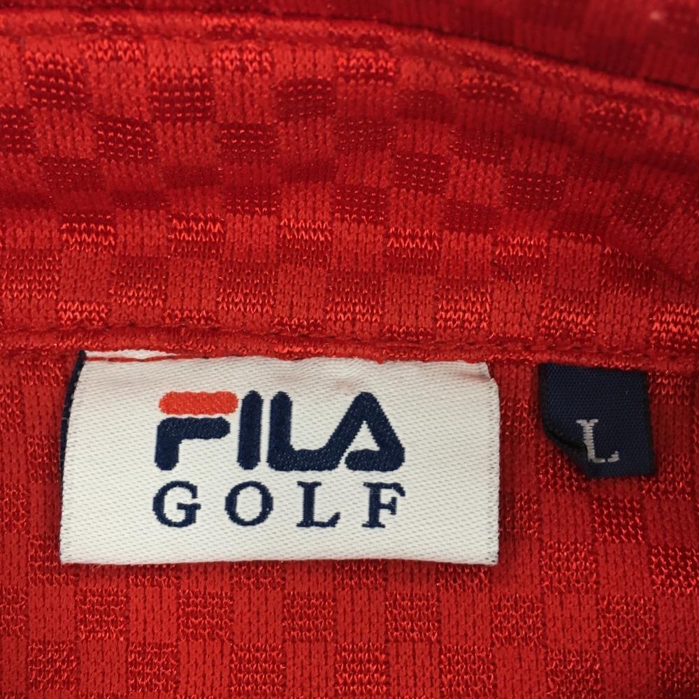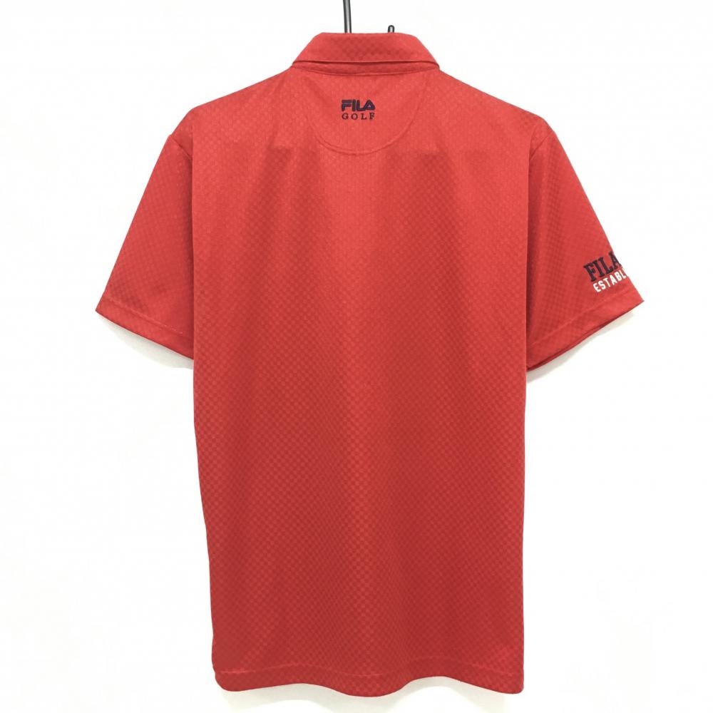 フィラゴルフ 半袖ポロシャツ レッド ブロックチェック柄織生地 ボタンダウン ロゴ刺しゅう メンズ L ゴルフウェア FILA GOLF