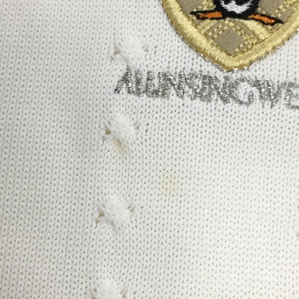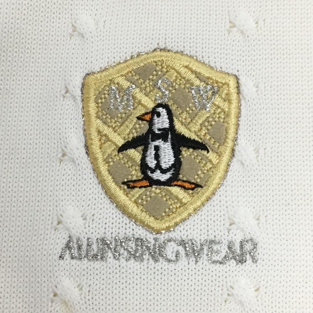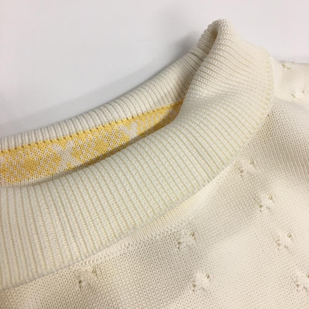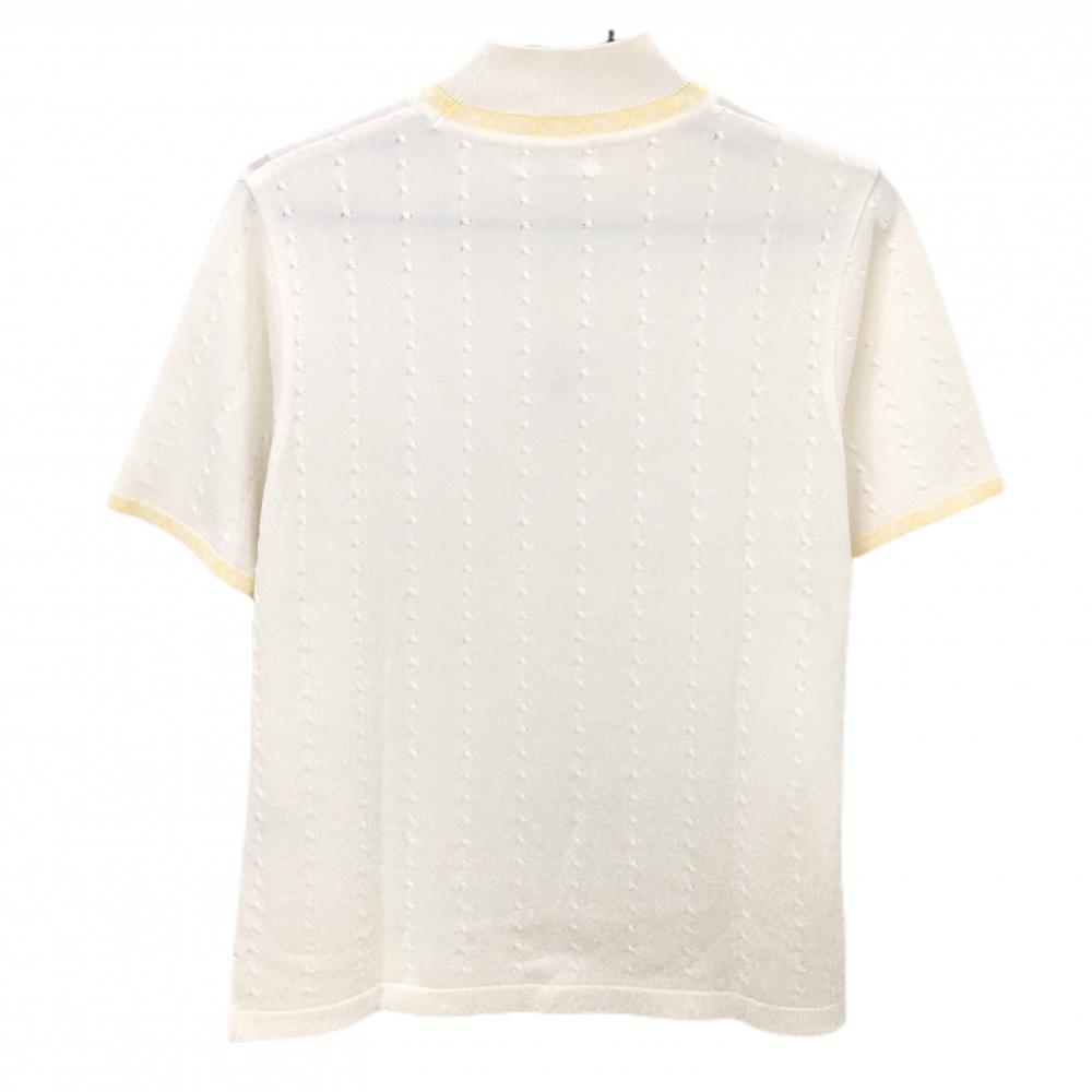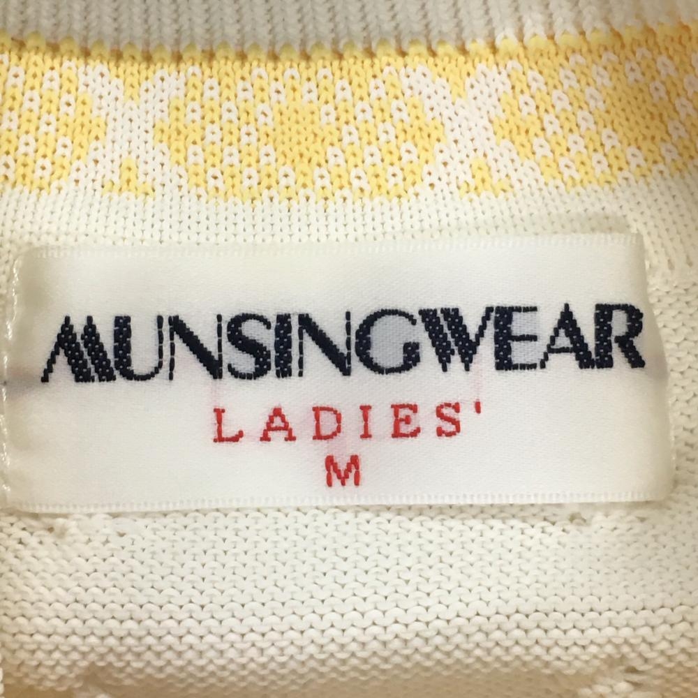 マンシングウェア 半袖ハイネックセーター 白×イエロー ロゴ刺しゅう ニット レディース M ゴルフウェア Munsingwear