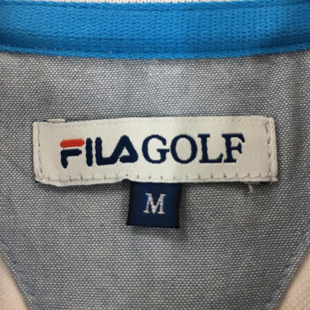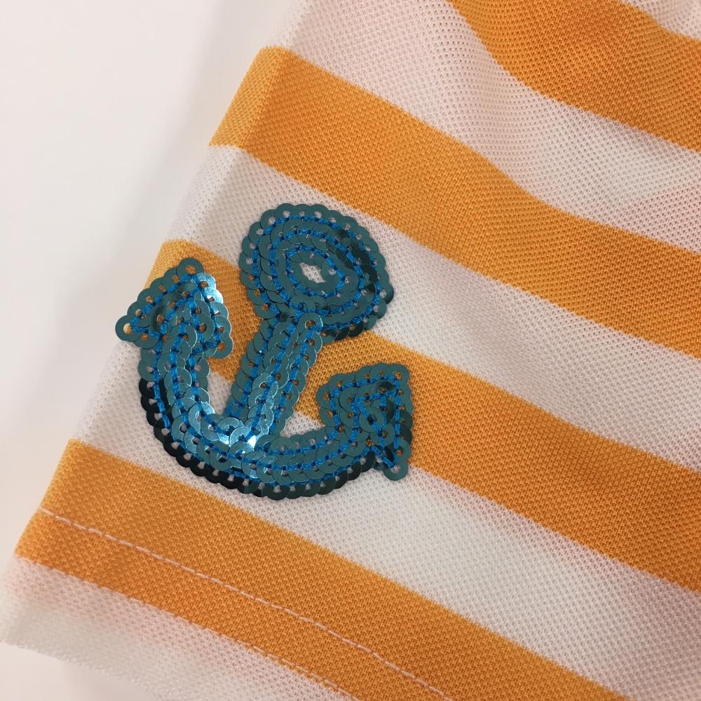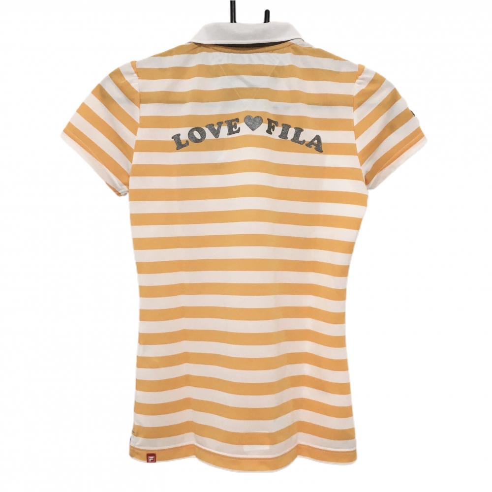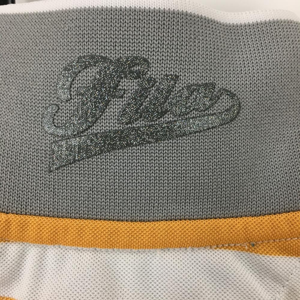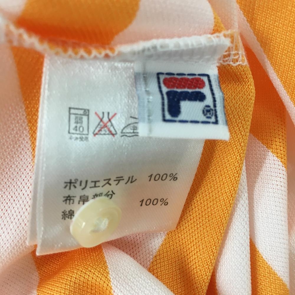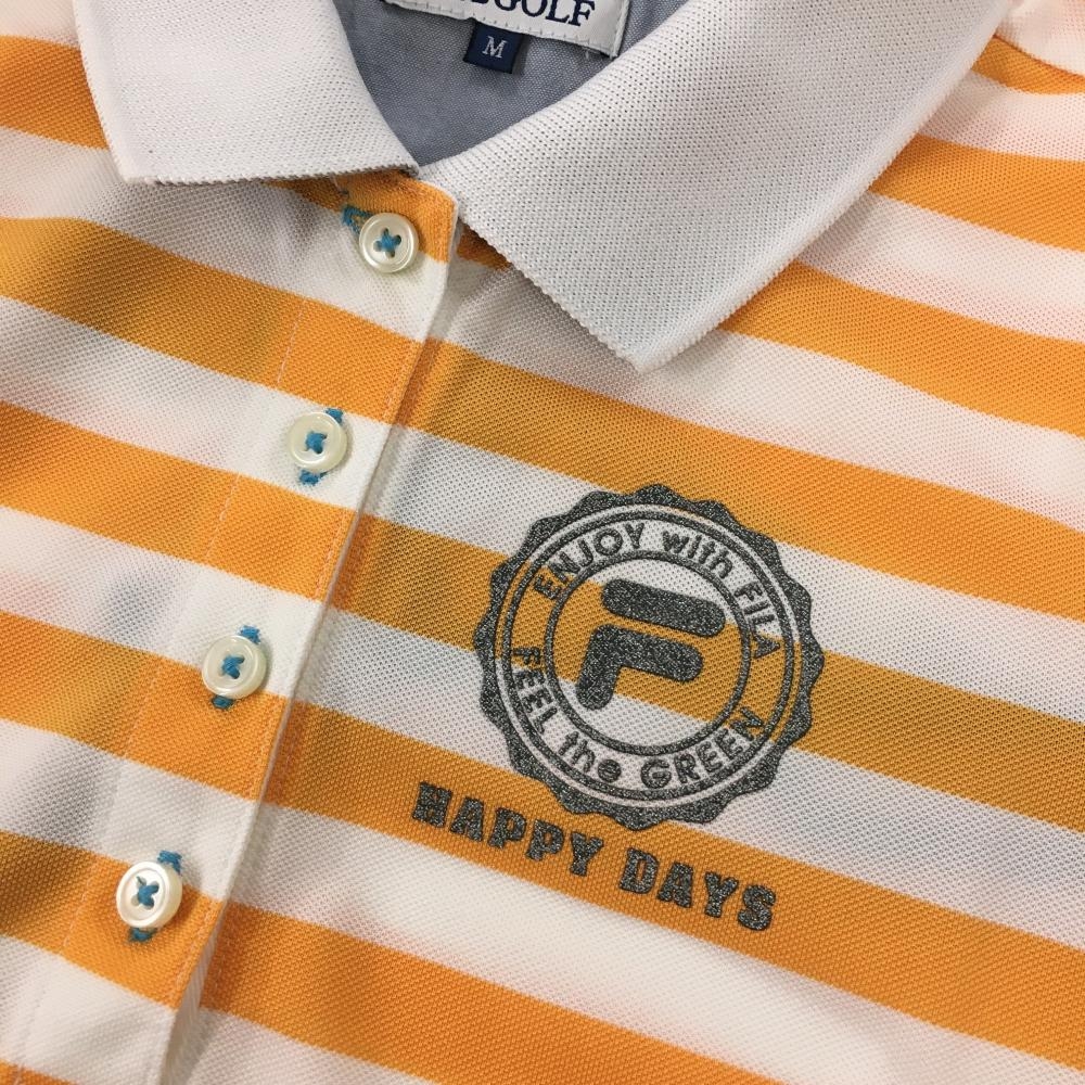 【超美品】フィラゴルフ 半袖ポロシャツ 白×オレンジ ボーダー柄 胸元プリント 襟裏ロゴ レディース M ゴルフウェア FILA GOLF