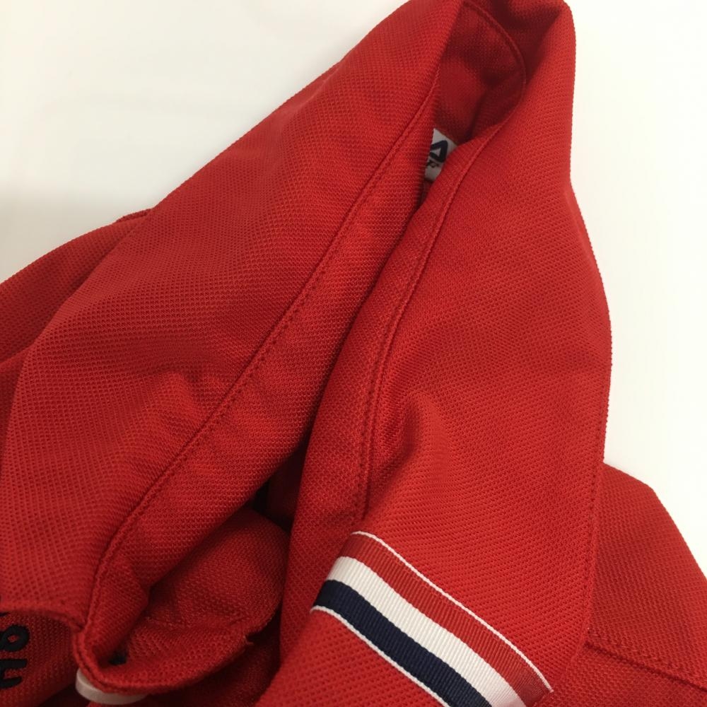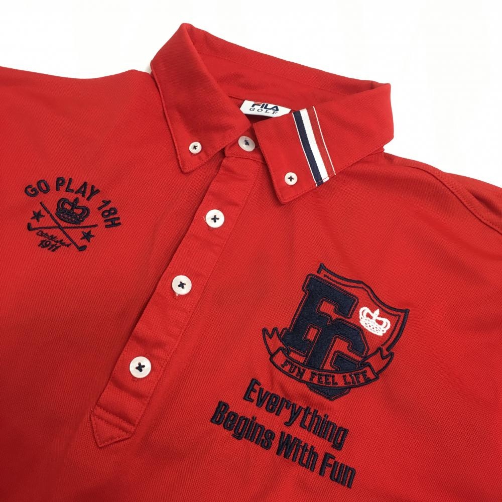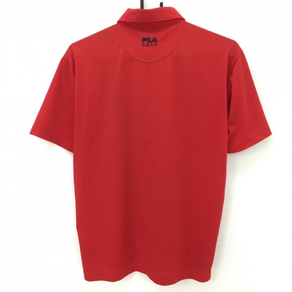 【美品】フィラゴルフ 半袖ポロシャツ レッド×ネイビー ロゴ刺しゅう ボタンダウン メンズ L ゴルフウェア FILA GOLF
