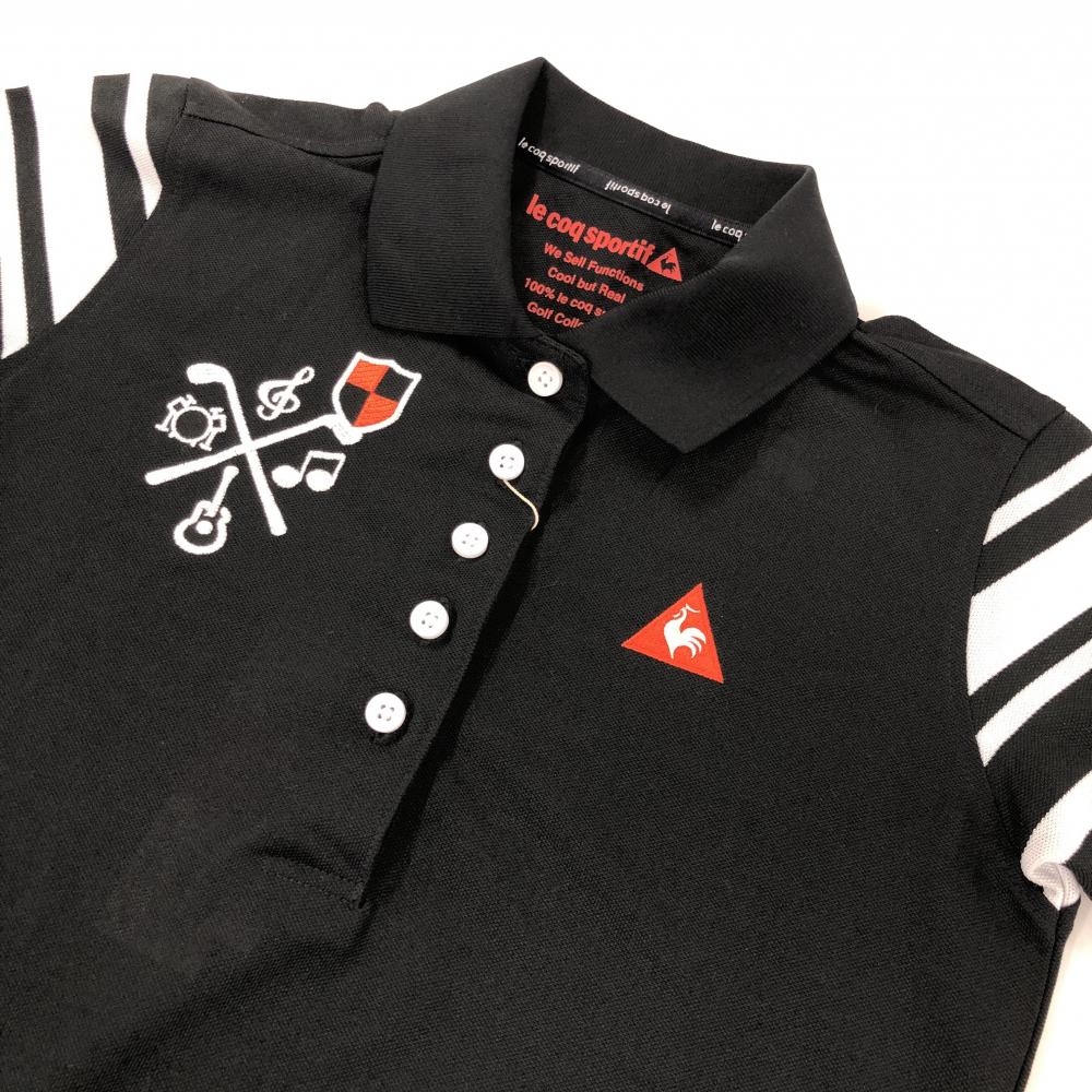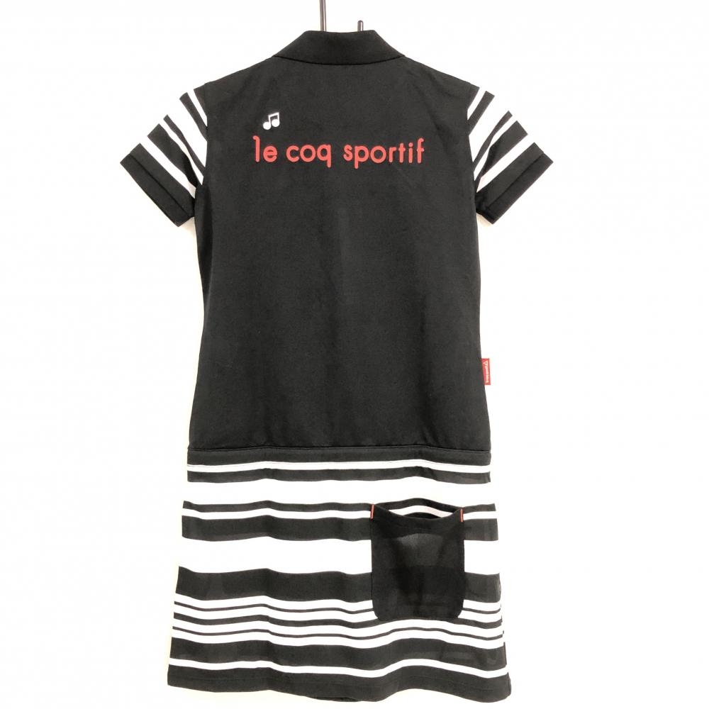 【新品】ルコック 半袖ポロワンピース 黒×白 袖スカートボーダー 吸汗速乾 UVケア レディース S ゴルフウェア le coq sportif