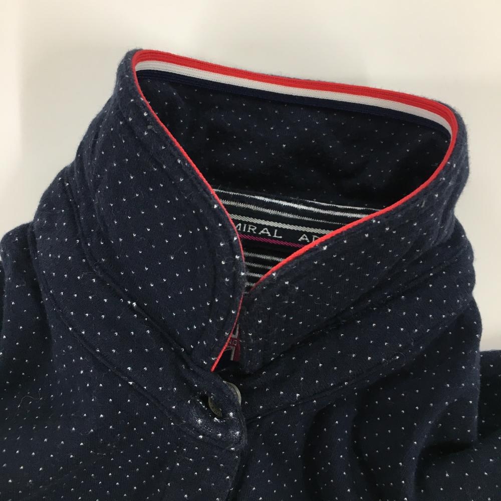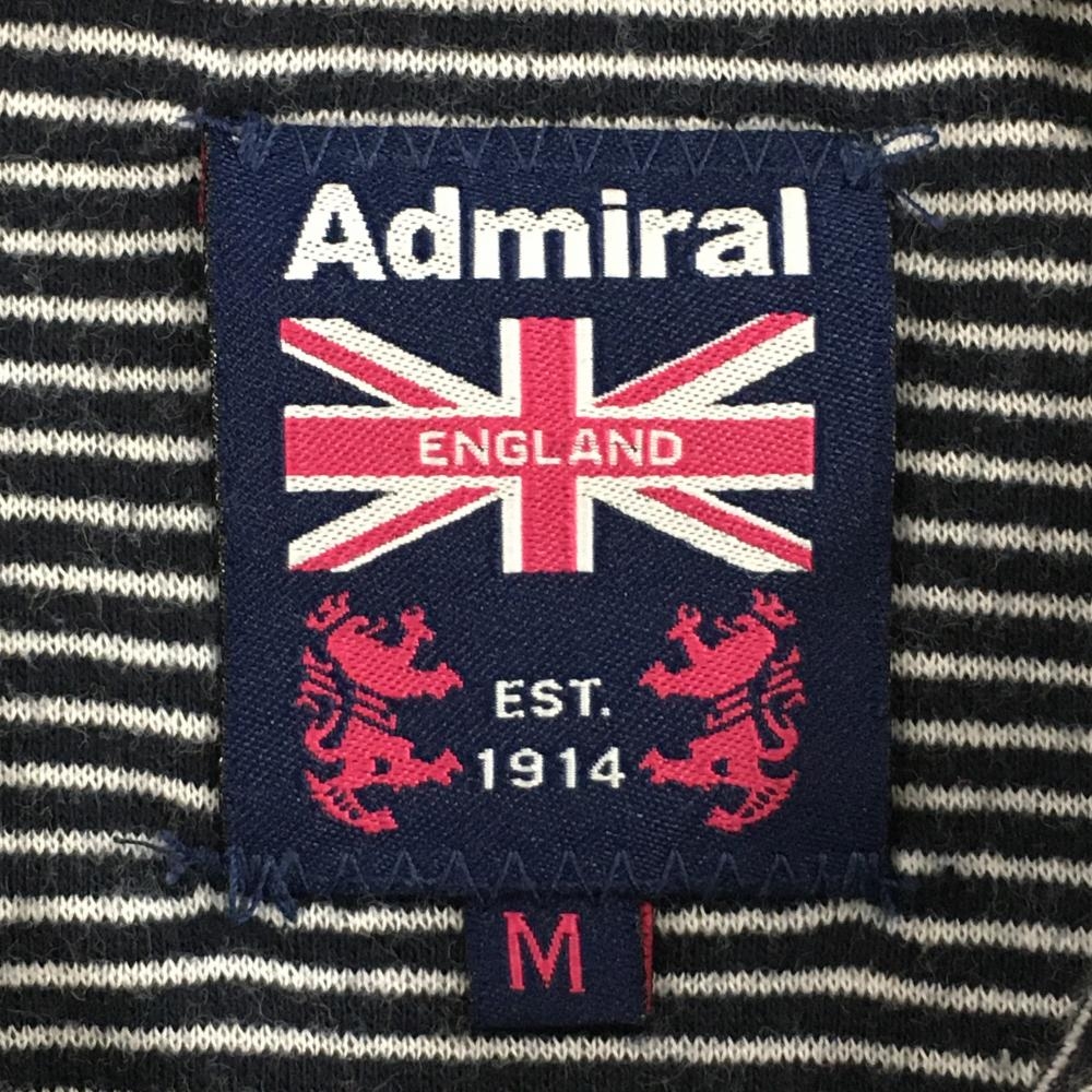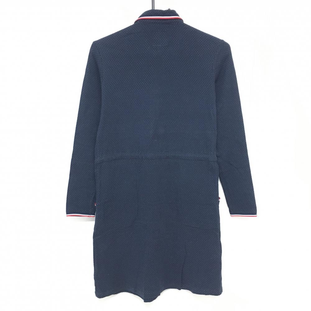 【美品】アドミラル ワンピース ネイビー×白 総柄刺しゅう 微起毛 一部トリコロール 丸襟 綿100% レディース M ゴルフウェア Admiral