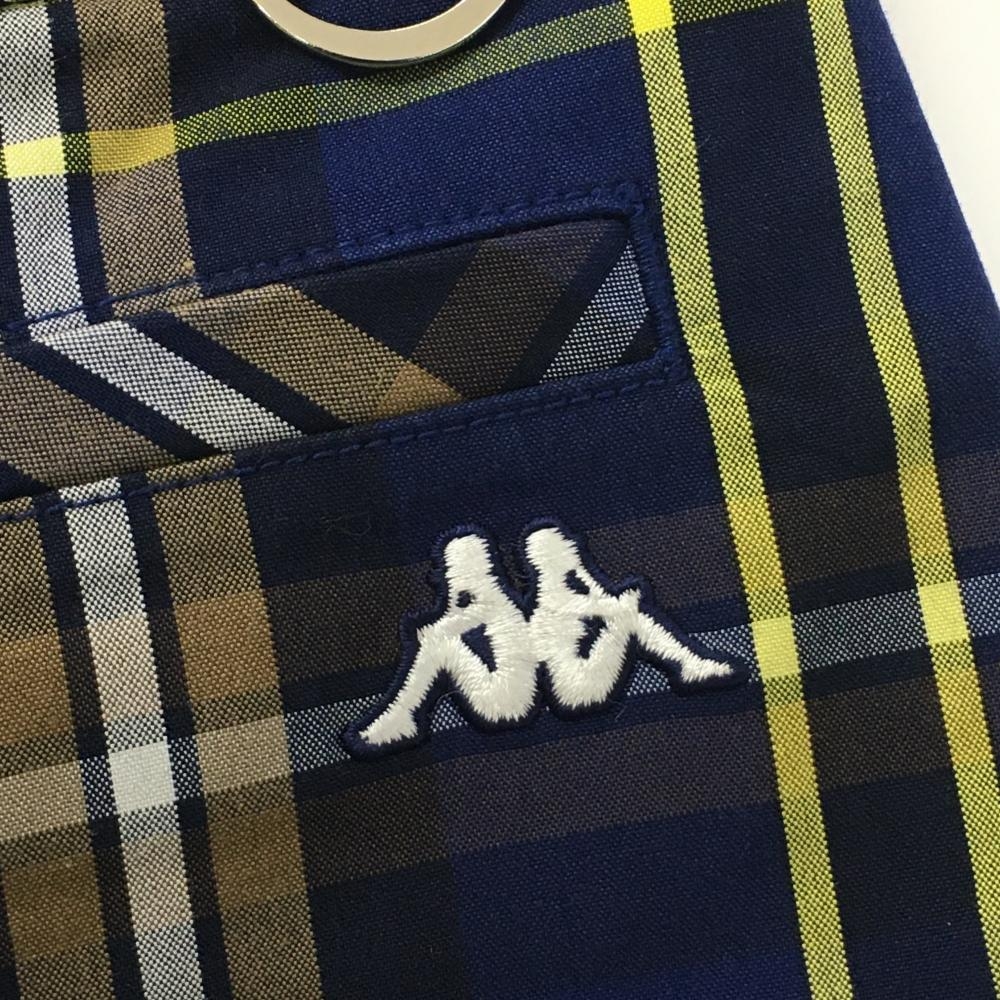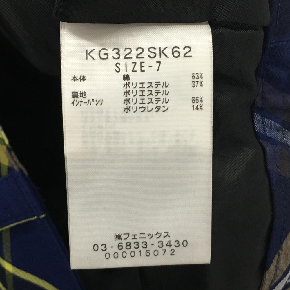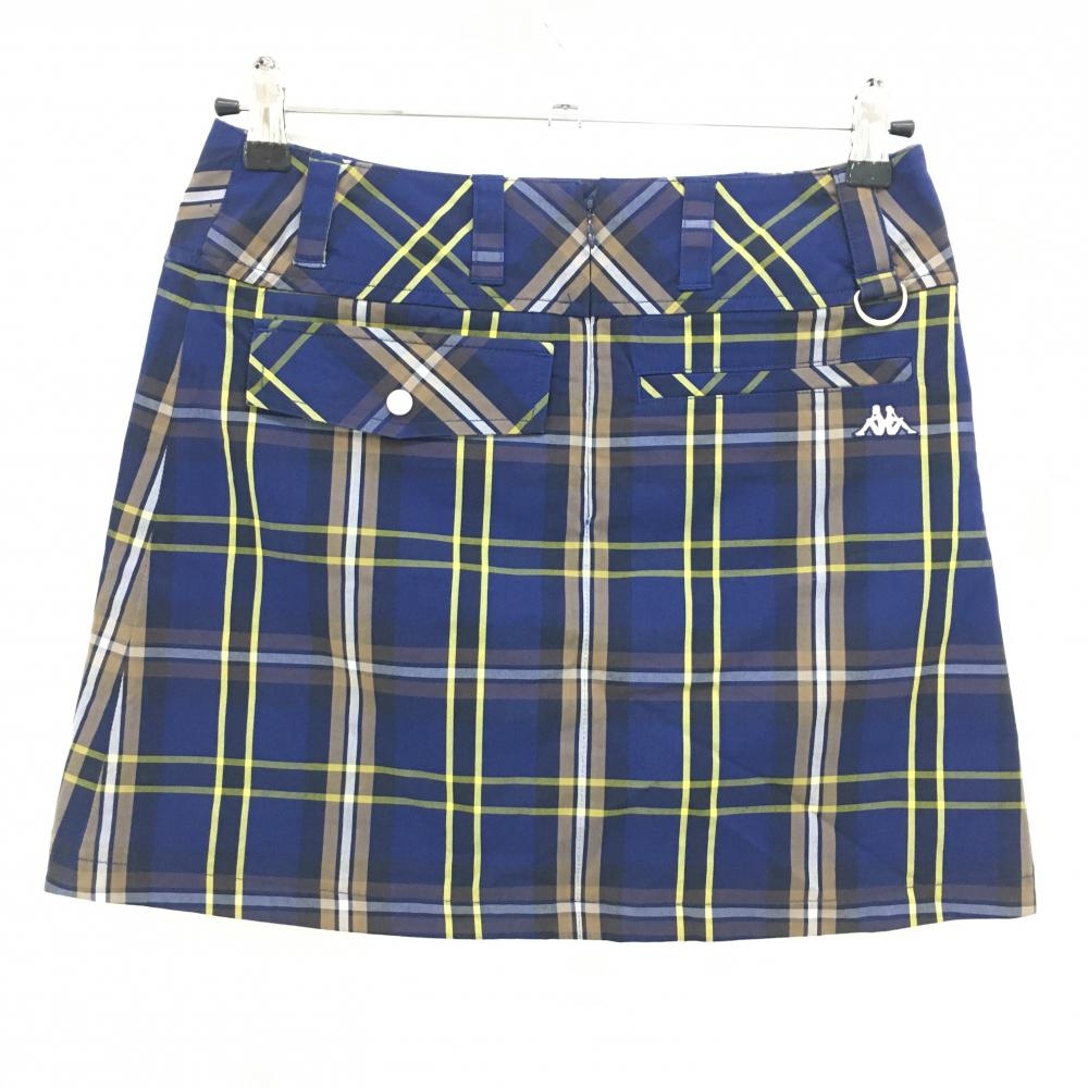 【美品】カッパ スカート ネイビー×イエロー チェック柄 裏地付き バックロゴ レディース 7 ゴルフウェア Kappa