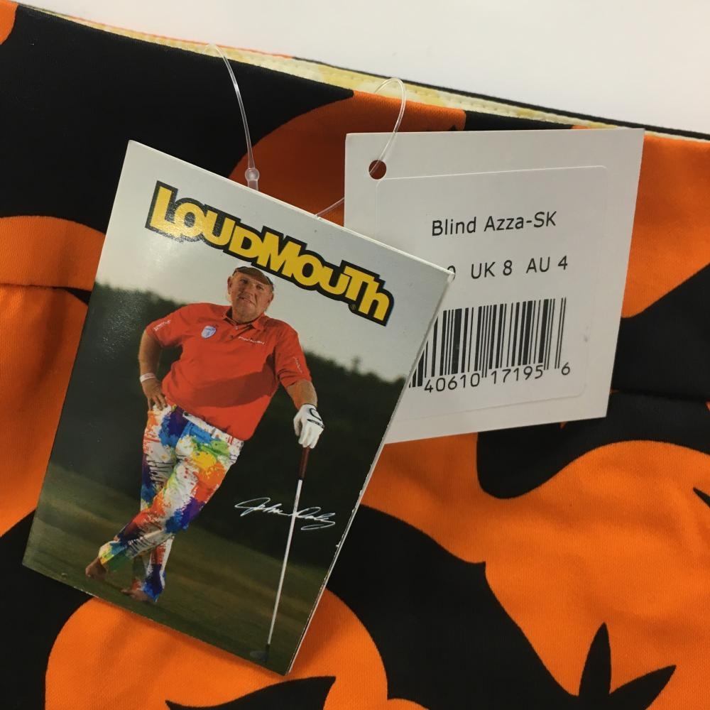 【新品】ラウドマウス スカート オレンジ×黒 コウモリ柄 内側インナーパンツ付 レディース US-0 ゴルフウェア LOUDMOUTH