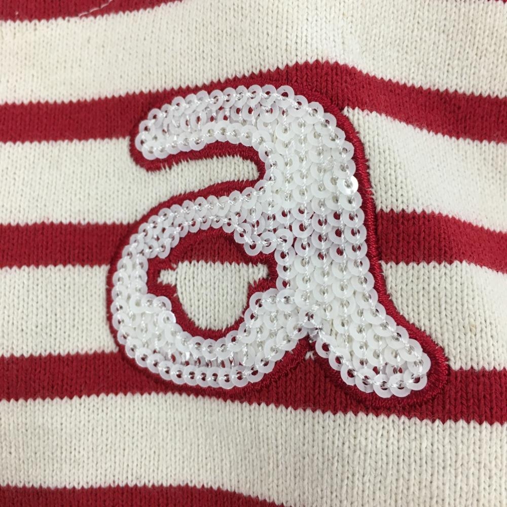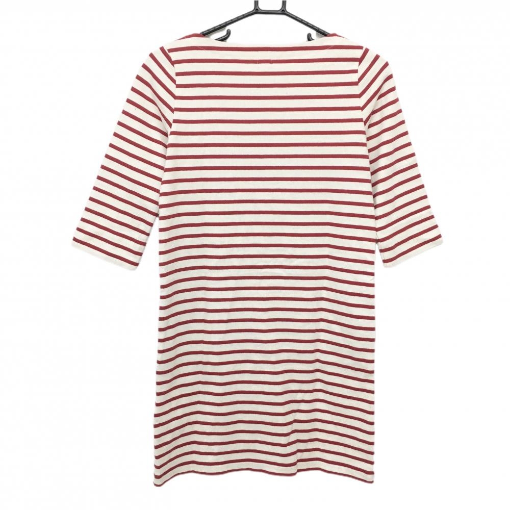 【美品】アルチビオ 五分袖ワンピース 白×レッド ボーダー スパンコールロゴ コットン100% レディース 36(S) ゴルフウェア archivio