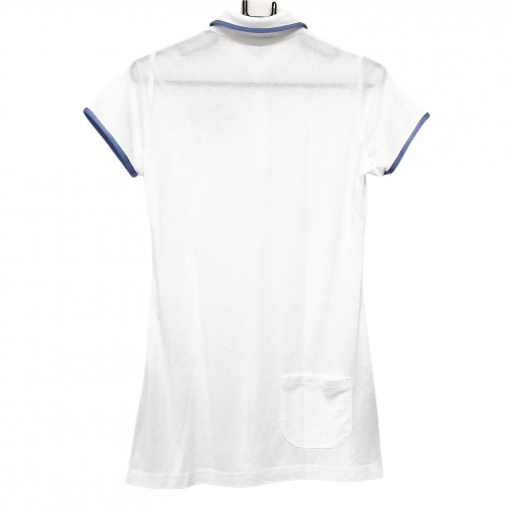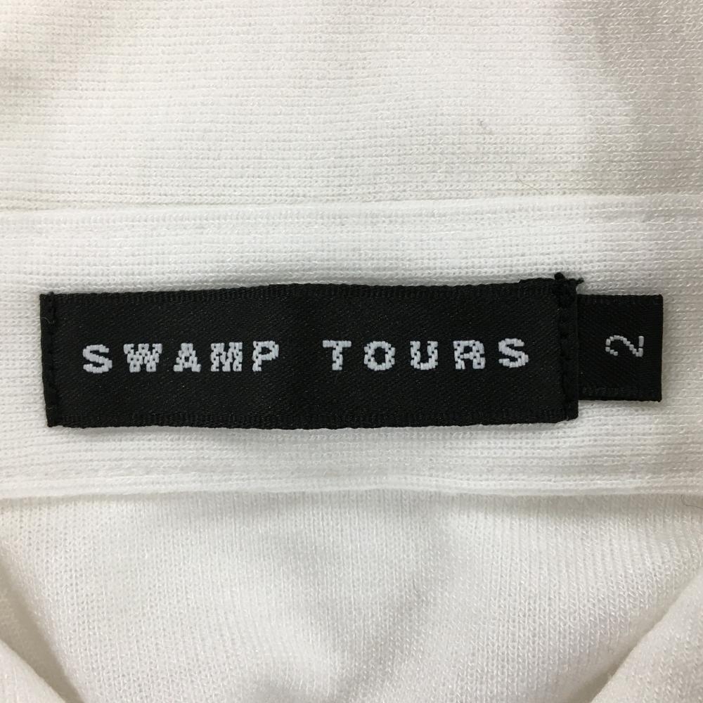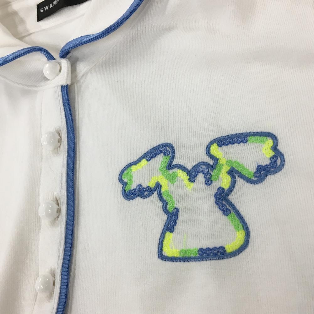 【美品】スワンプツアーズ 半袖ポロシャツ 白×ライトブルー 丸襟 チュニック レディース 2 ゴルフウェア SWAMP TOURS