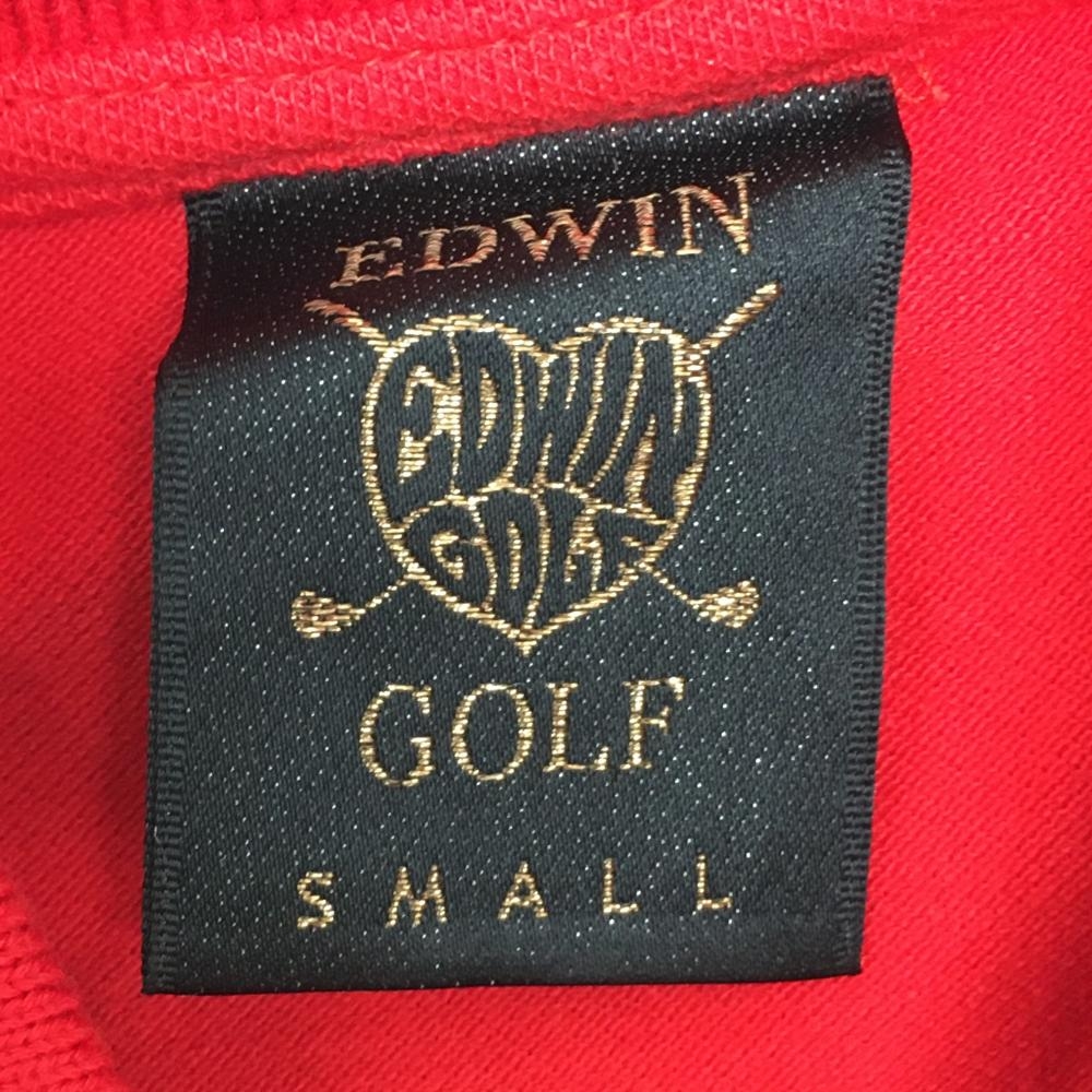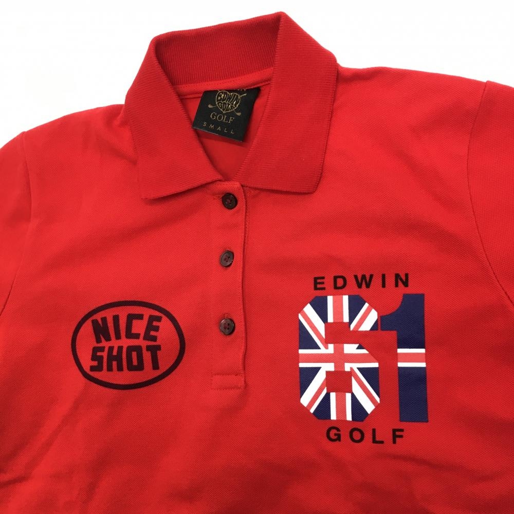 【美品】エドウィンゴルフ 半袖ポロシャツ レッド プリントロゴ レディース SMALL ゴルフウェア EDWIN GOLF