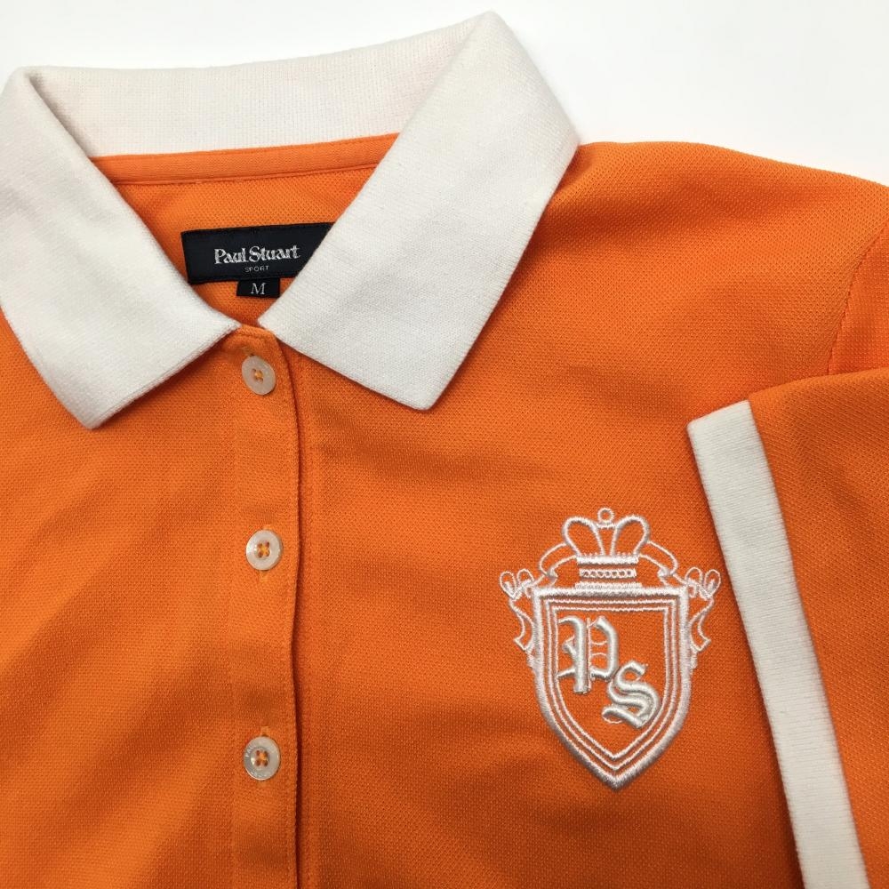 【超美品】ポールスチュアート スポーツ 半袖ポロシャツ オレンジ×白 ロゴ刺しゅう レディース M ゴルフウェア Paul Stuart SPORT