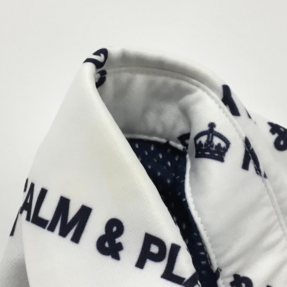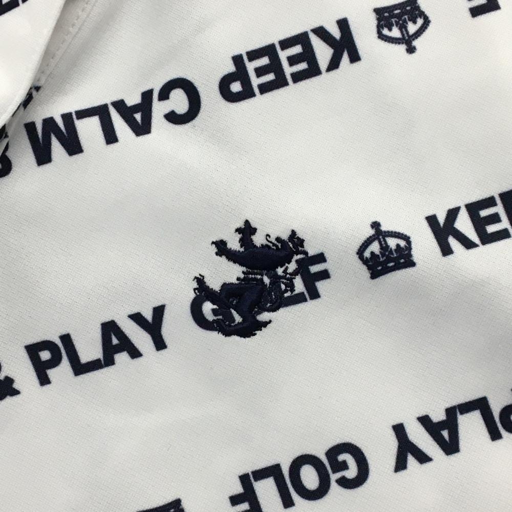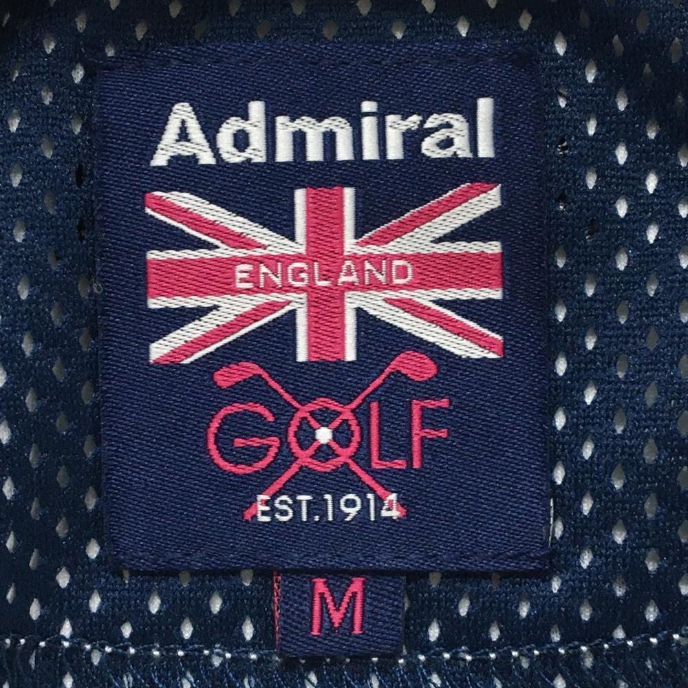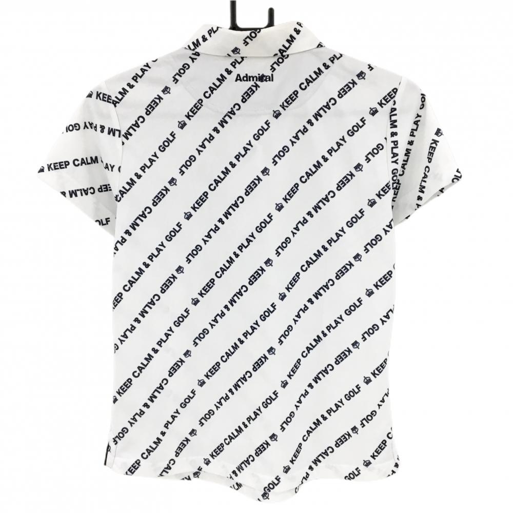【美品】アドミラル 半袖ポロシャツ 白×ネイビー 英字柄 丸襟 レディース M ゴルフウェア Admiral