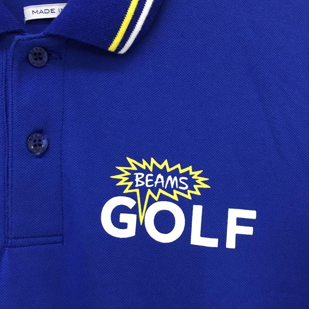 ビームスゴルフ 半袖ポロシャツ ブルー×イエロー 襟ライン メンズ M ゴルフウェア BEAMS GOLF