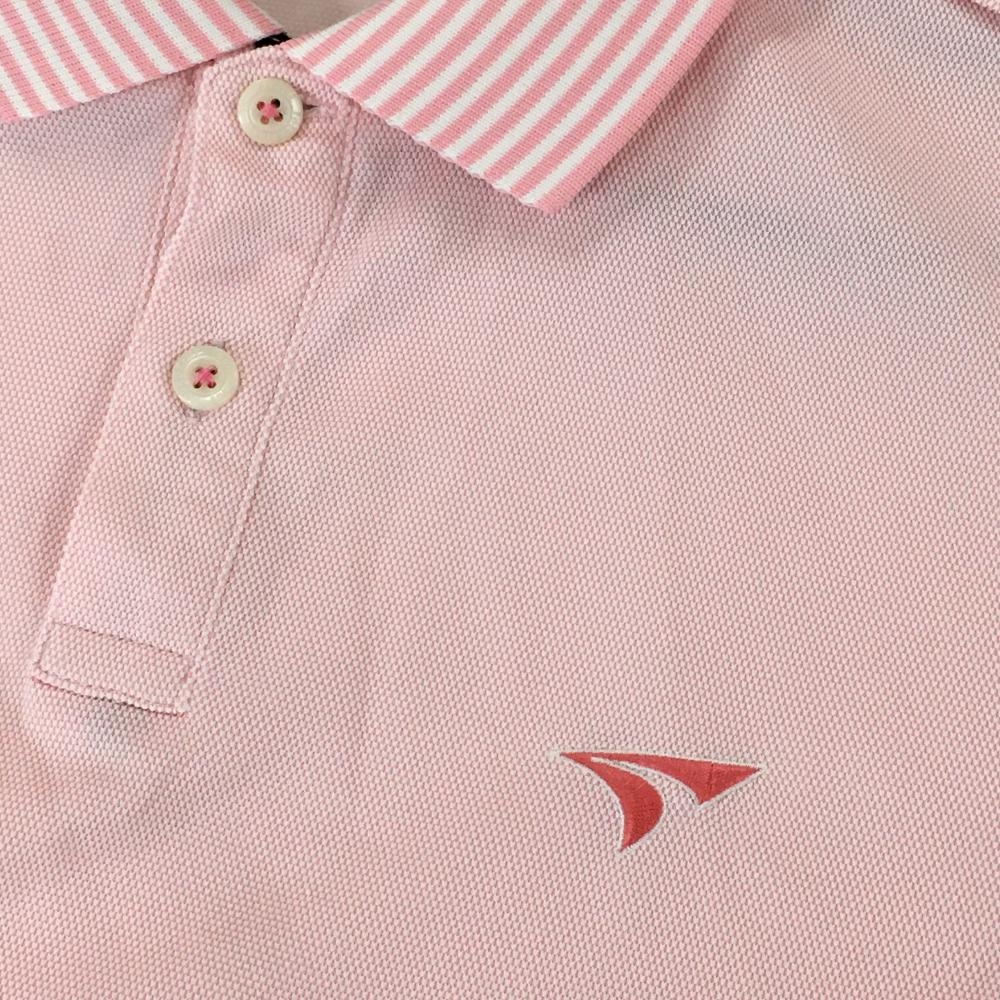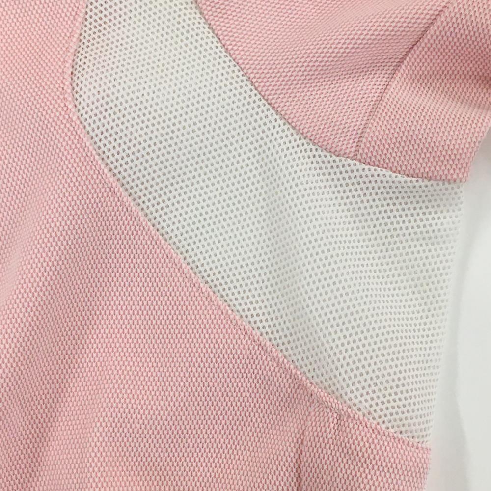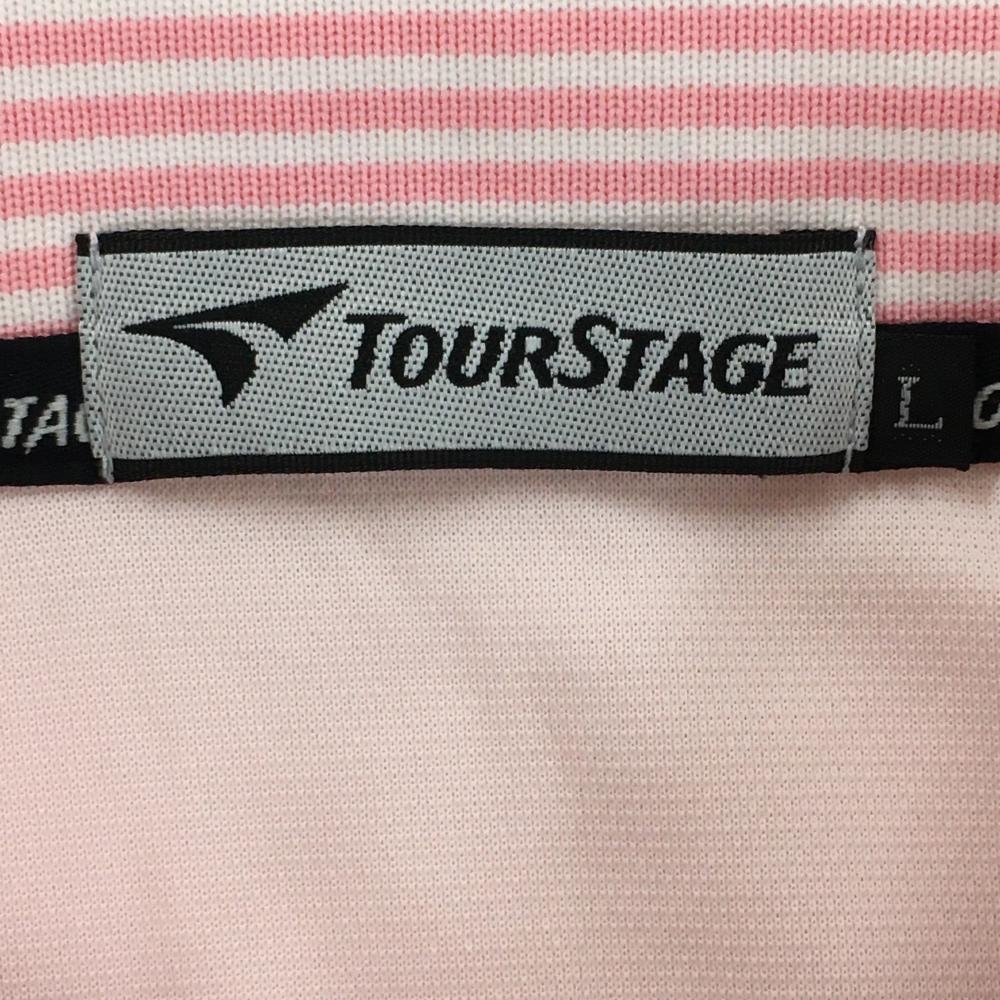 ツアーステージ 半袖ポロシャツ ピンク×白 織生地 ロゴ刺しゅう 袖下メッシュ メンズ L ゴルフウェア TOURSTAGE