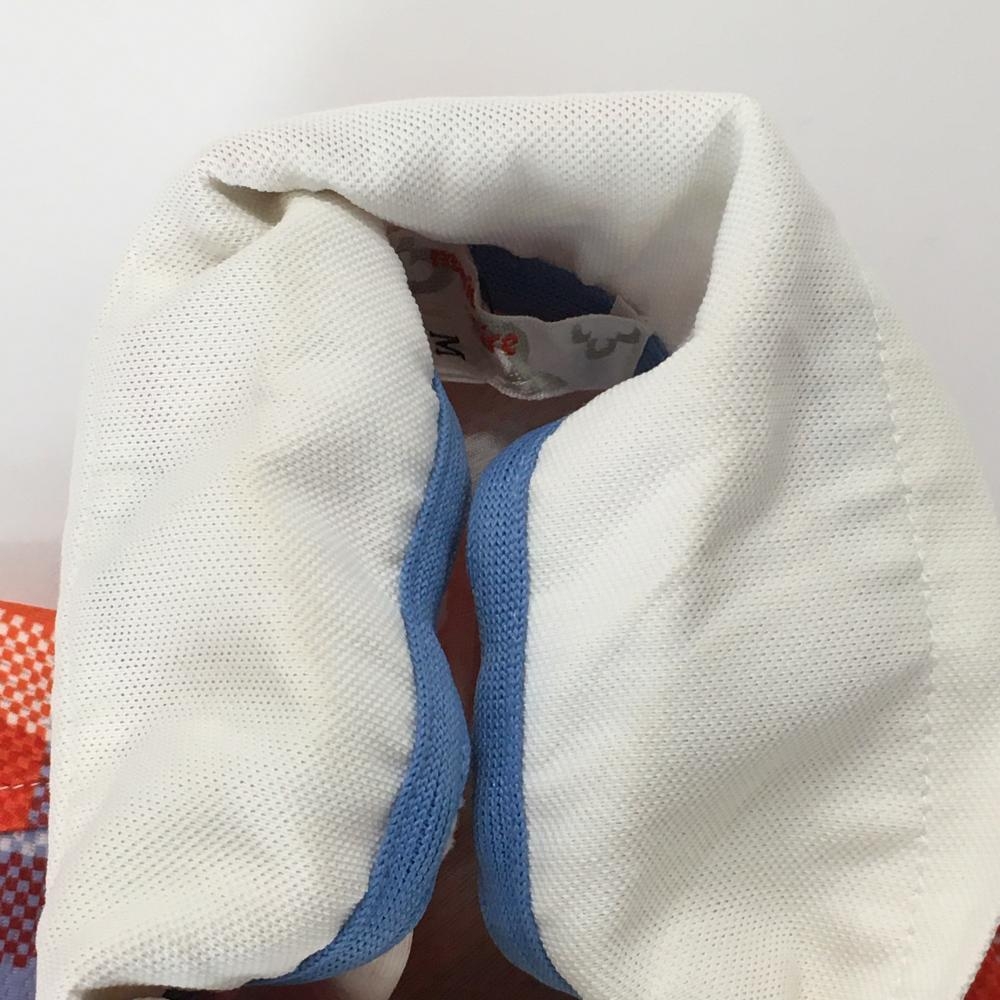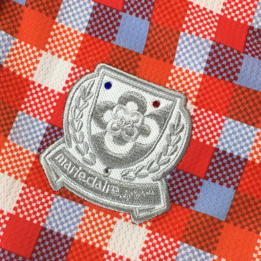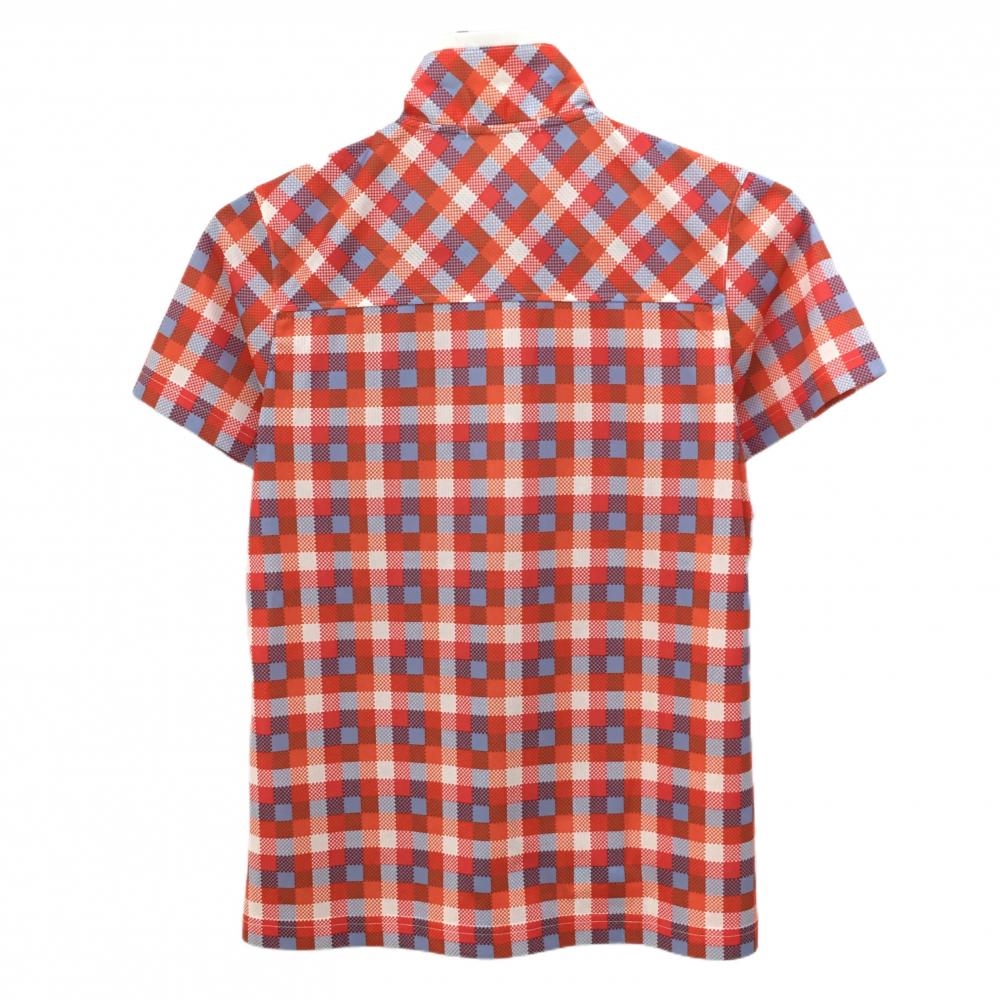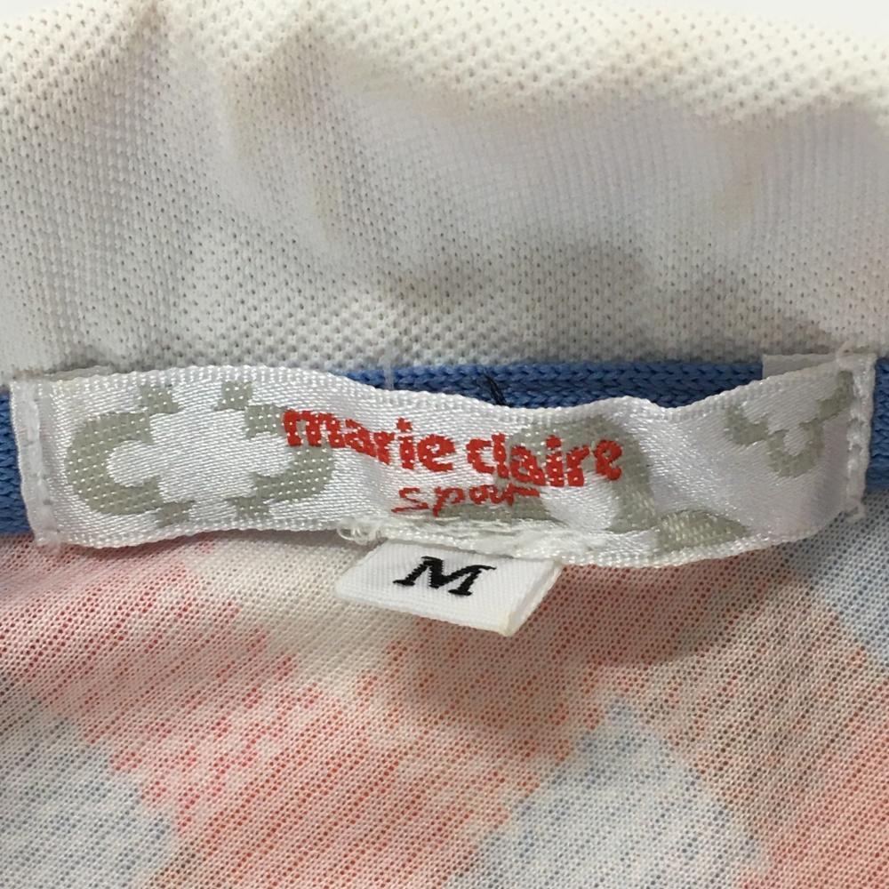 マリクレール 半袖ハイネックシャツ オレンジ×白×レッド ブロックチェック スナップボタン レディース M ゴルフウェア marie claire