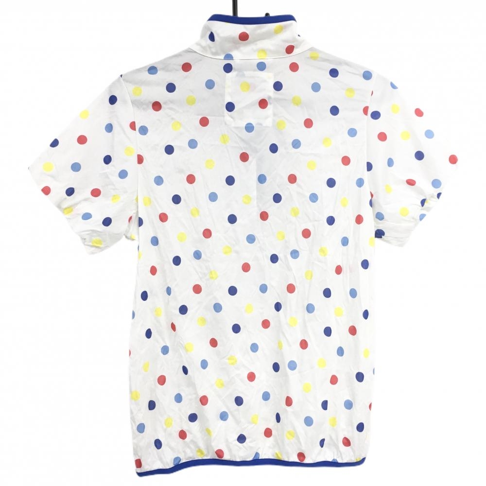 【未使用品】ルコック 半袖ブルゾン 白×マルチカラー ドット柄 ハーフジップ 総柄 レディース S ゴルフウェア le coq sportif