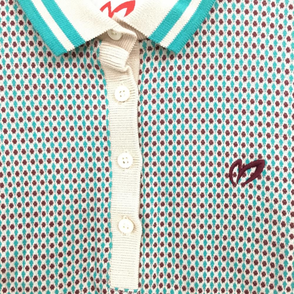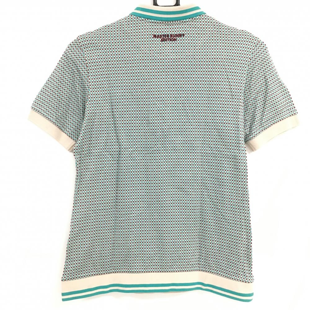 【美品】マスターバニー 半袖ポロシャツ ライトグリーン×ベージュ 総柄 レディース 0(S) ゴルフウェア MASTER BUNNY EDITION