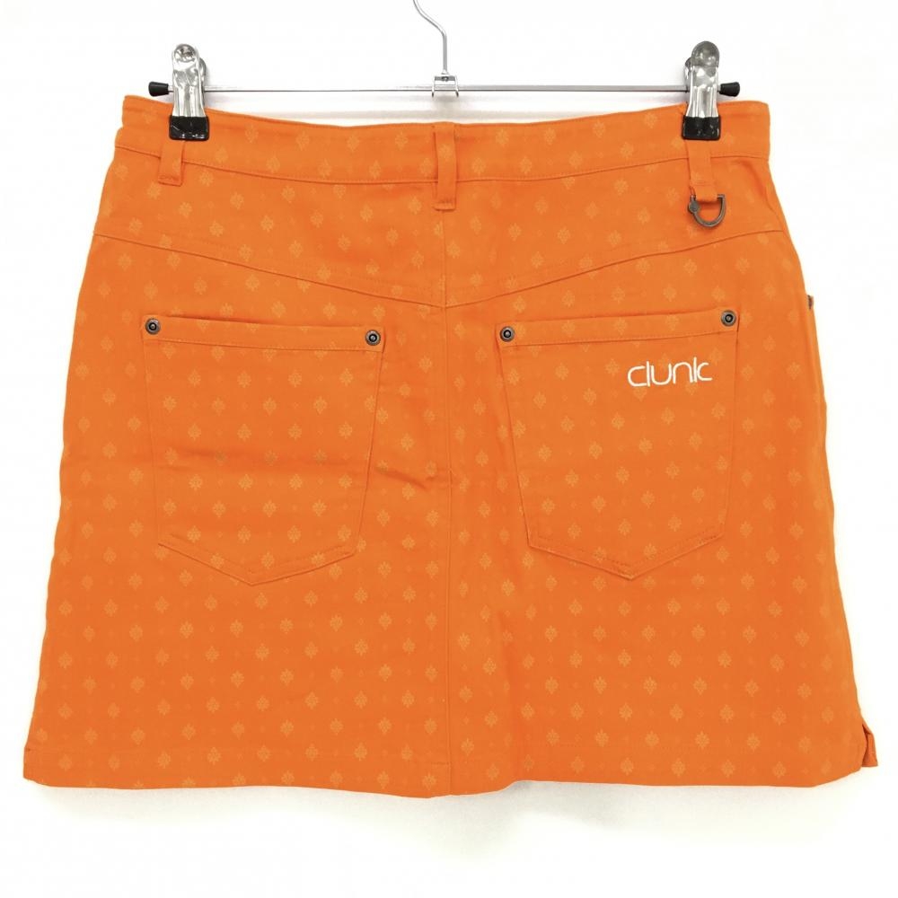 【美品】クランク スカート オレンジ 総柄 バックロゴ刺しゅう レディース L ゴルフウェア CLUNK