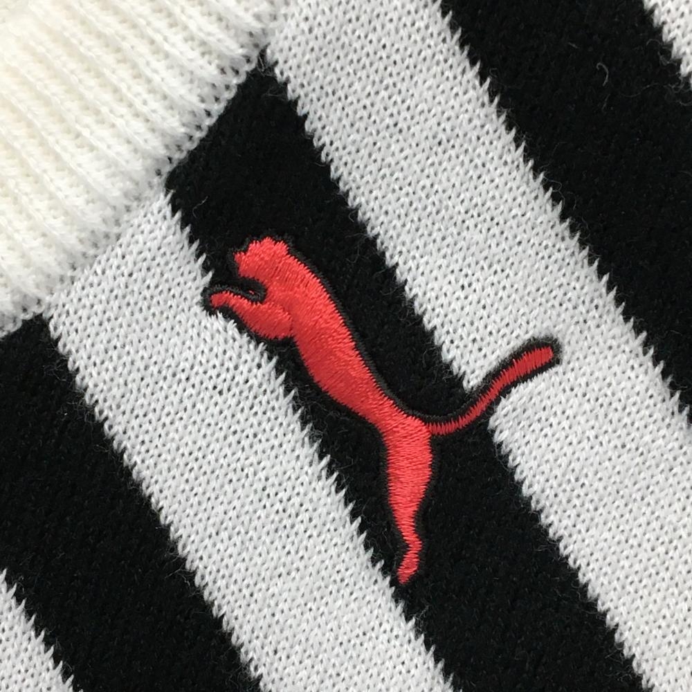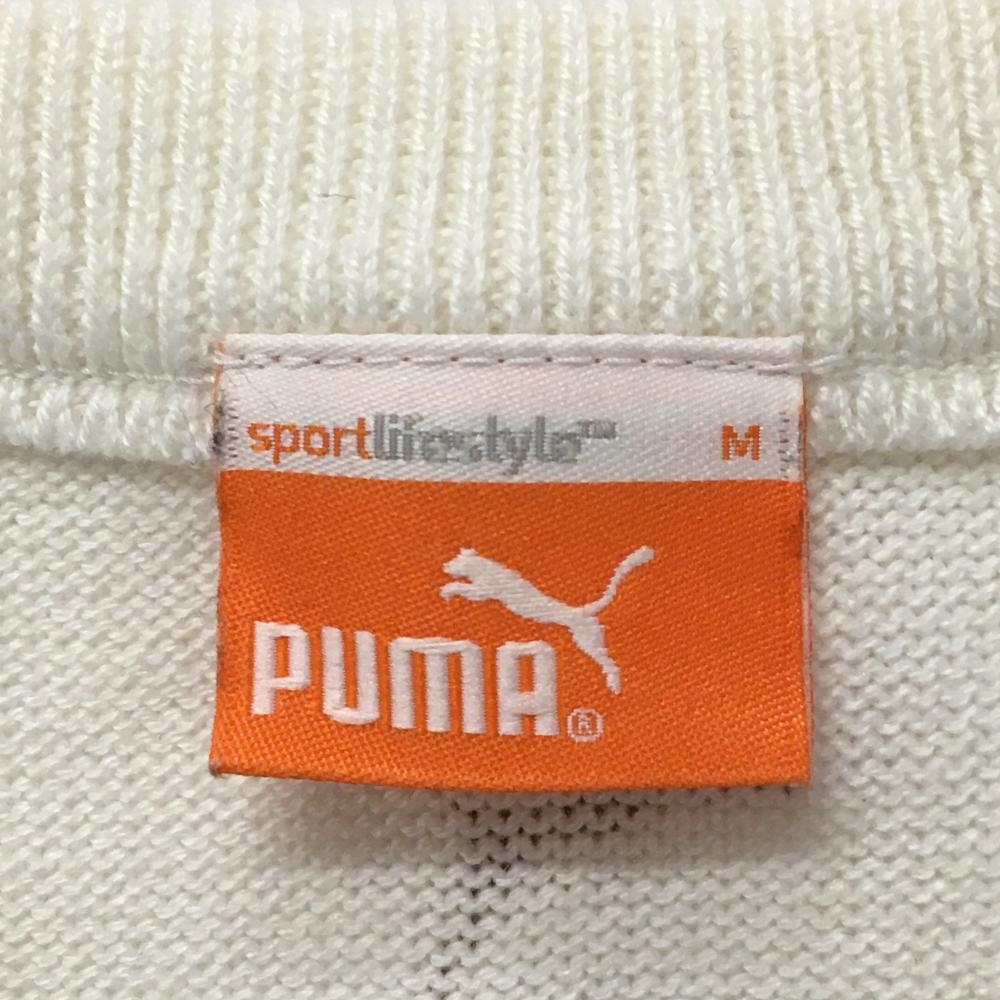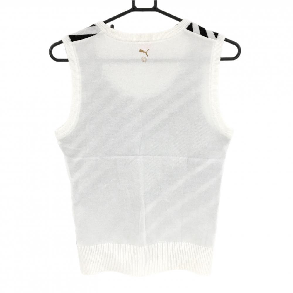 【超美品】プーマ ニットベスト 白×黒 前面斜めストライプ アクリル混 レディース M ゴルフウェア PUMA