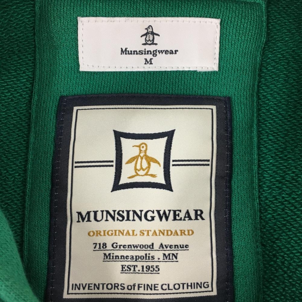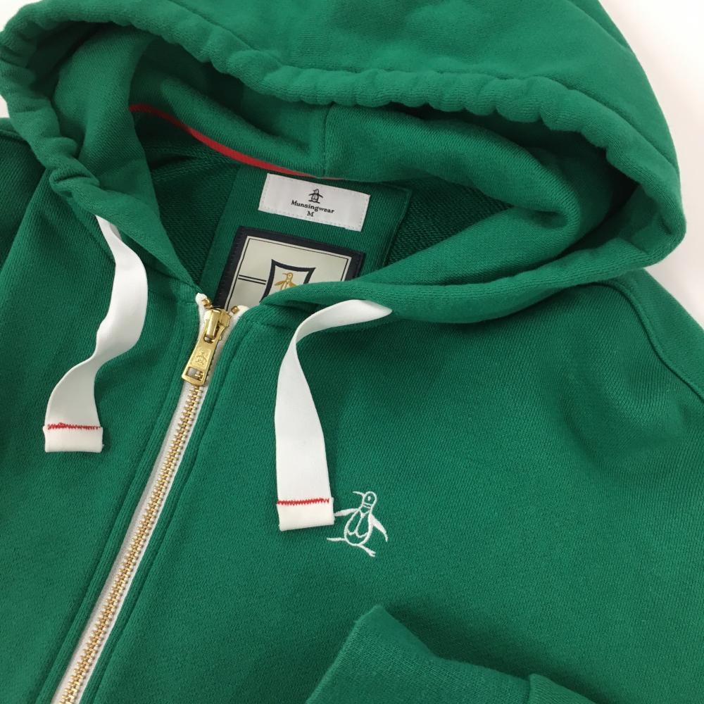 マンシングウェア ジップパーカー グリーン×白 ロゴ刺しゅう メンズ M ゴルフウェア Munsingwear