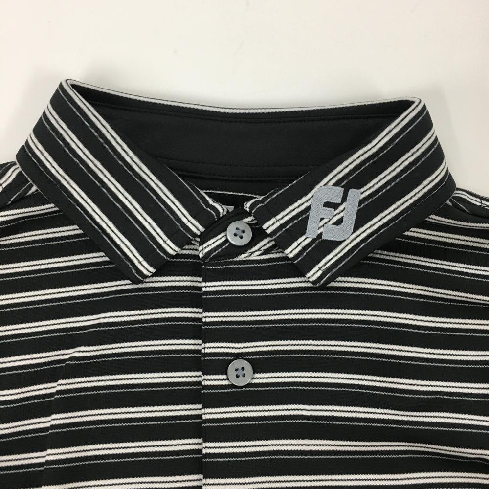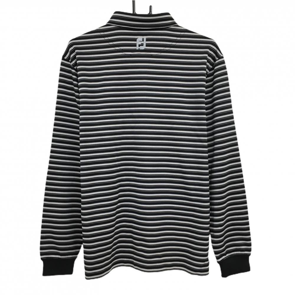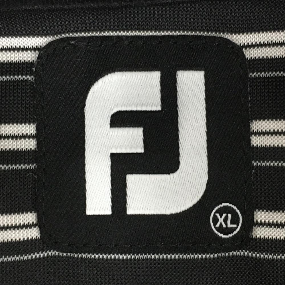 【超美品】フットジョイ 長袖ポロシャツ 黒×白 ボーダー 襟ロゴ メンズ XL ゴルフウェア FootJoy