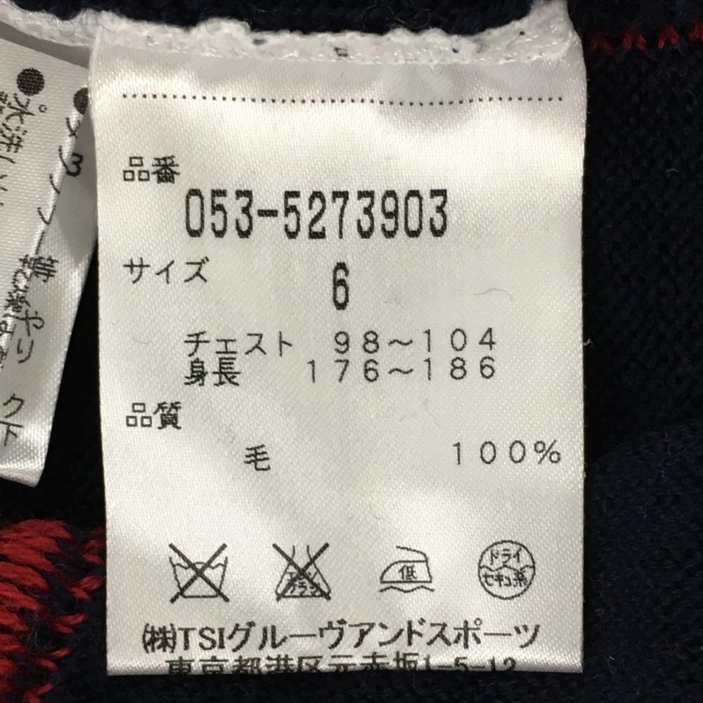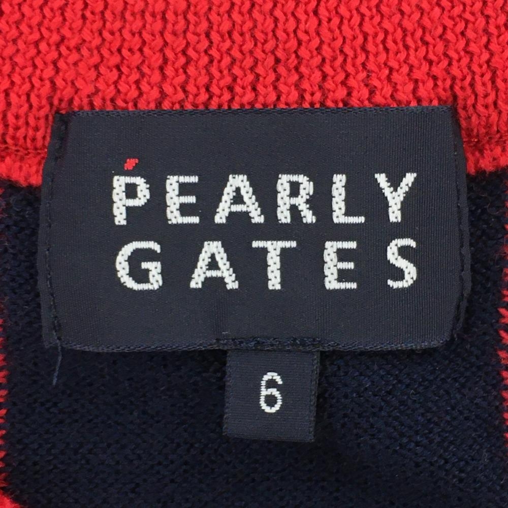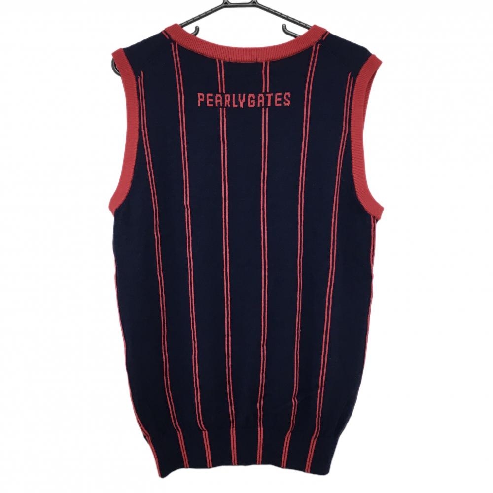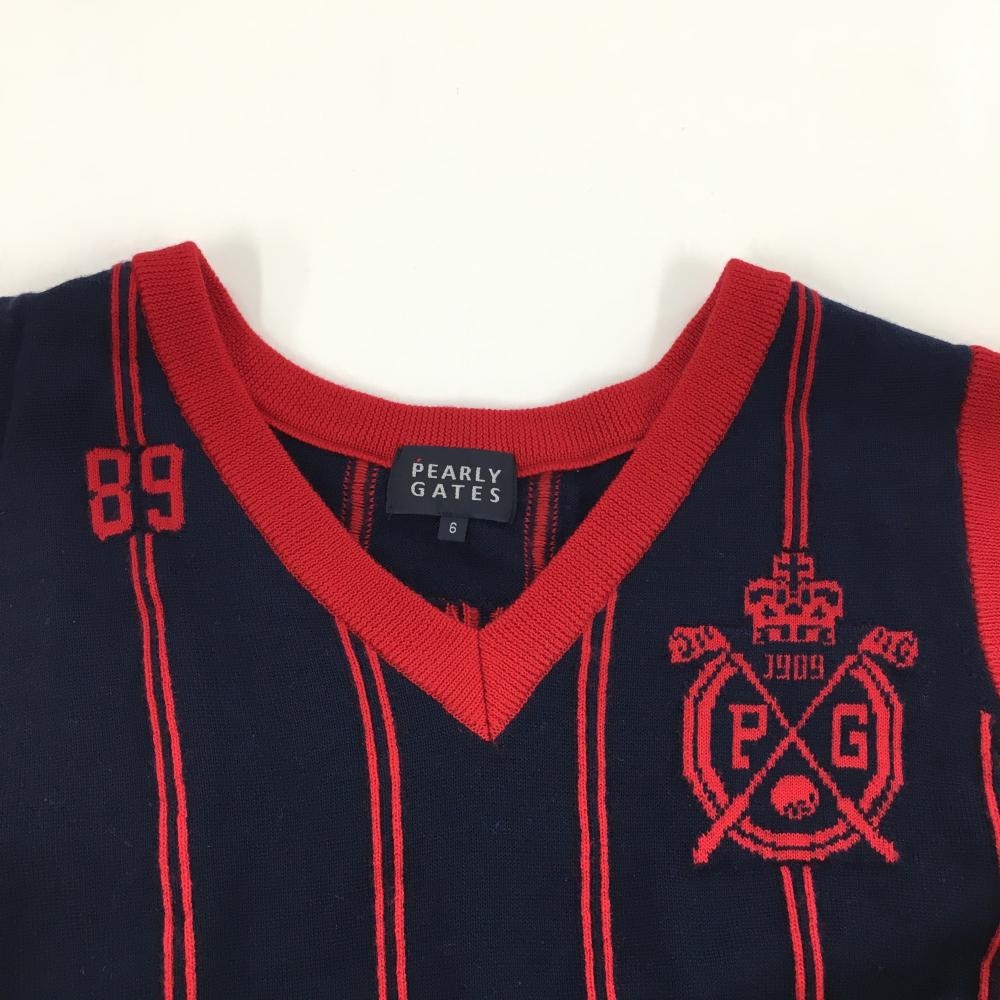 【超美品】パーリーゲイツ ニットベスト ネイビー×レッド ストライプ ウール100% Vネック メンズ 6(XL) ゴルフウェア PEARLY GATES