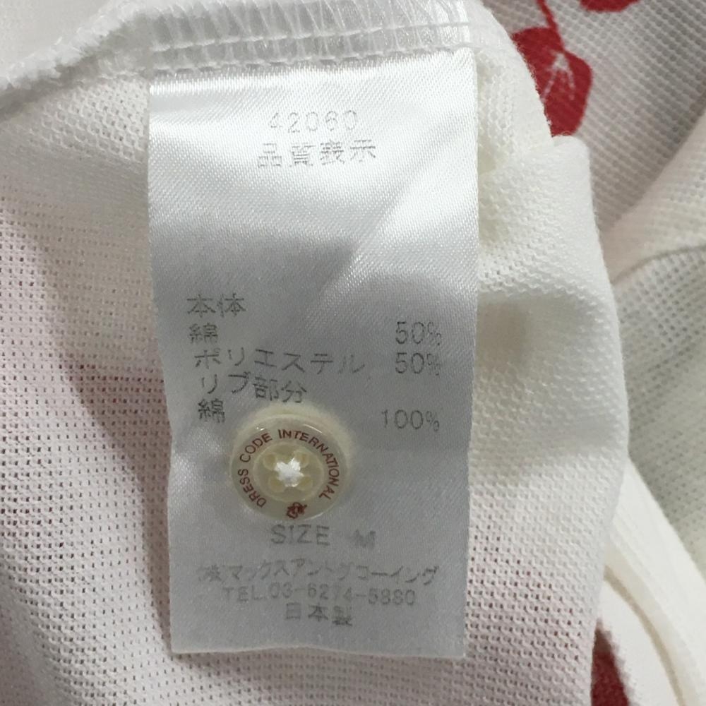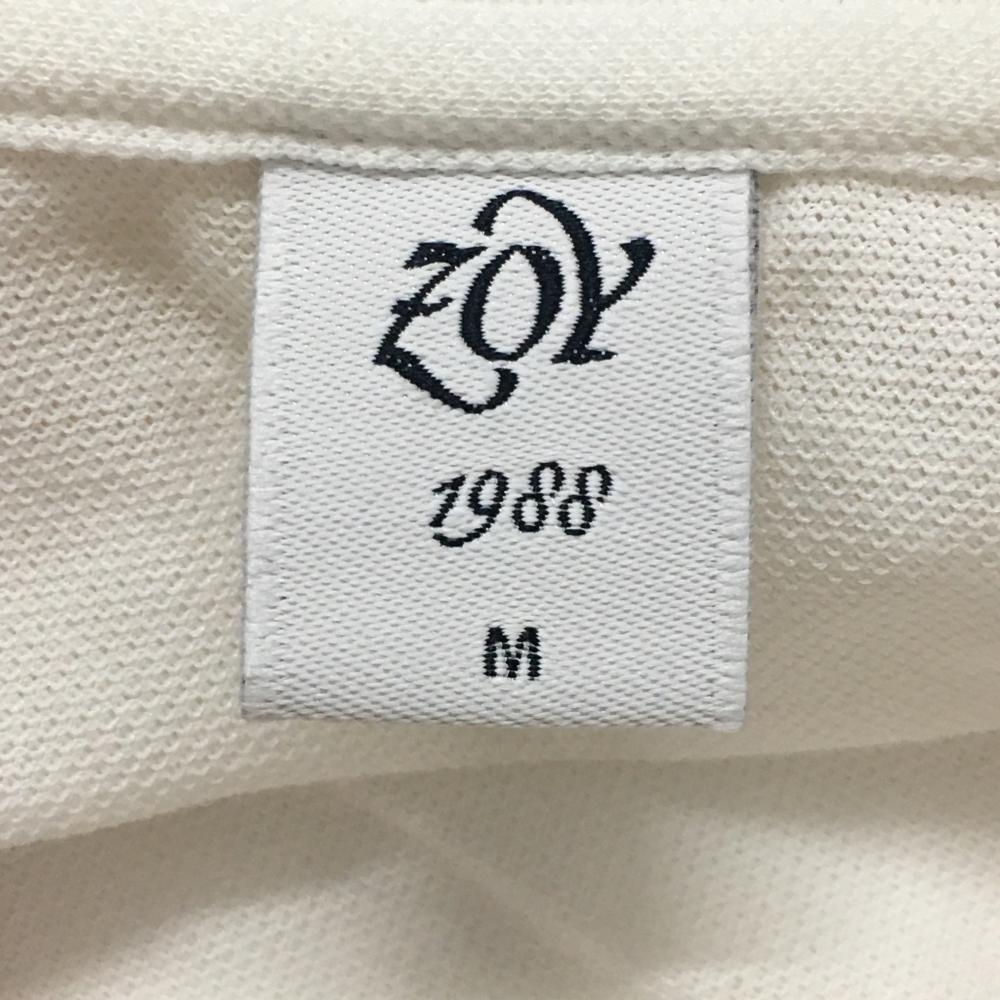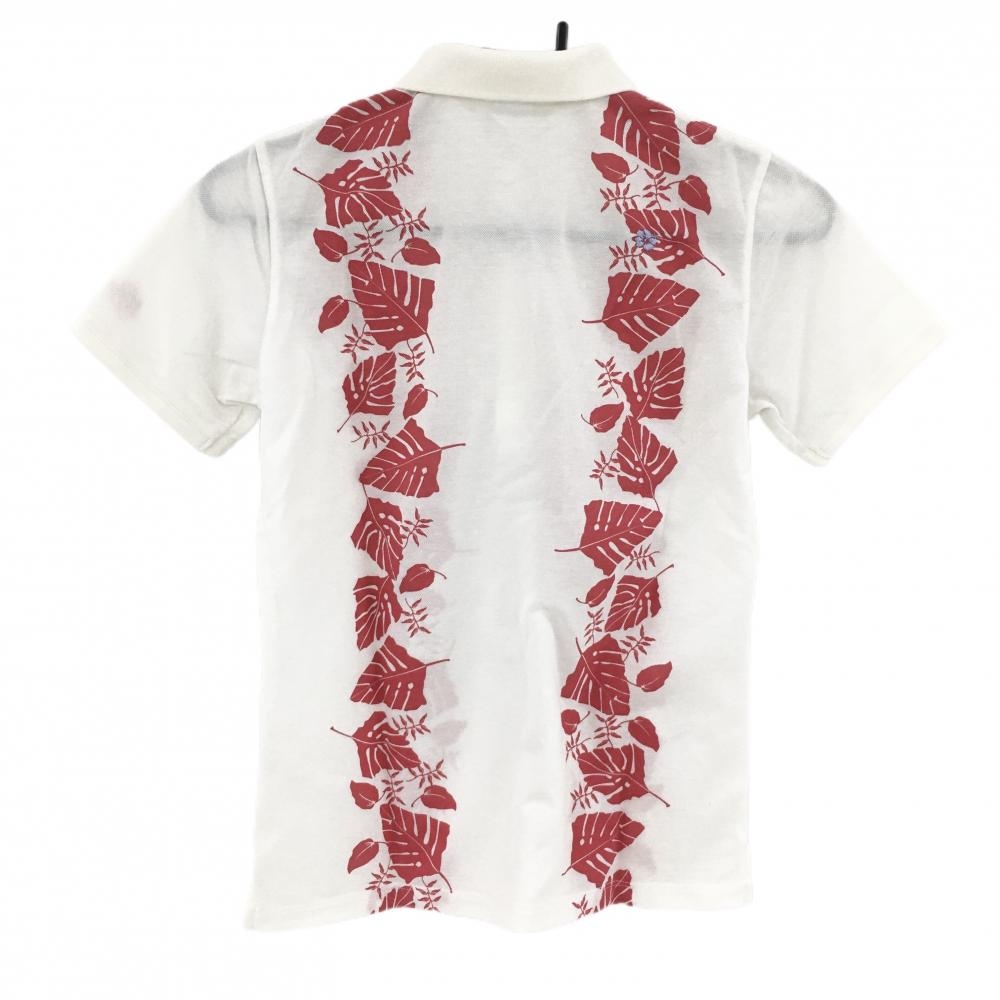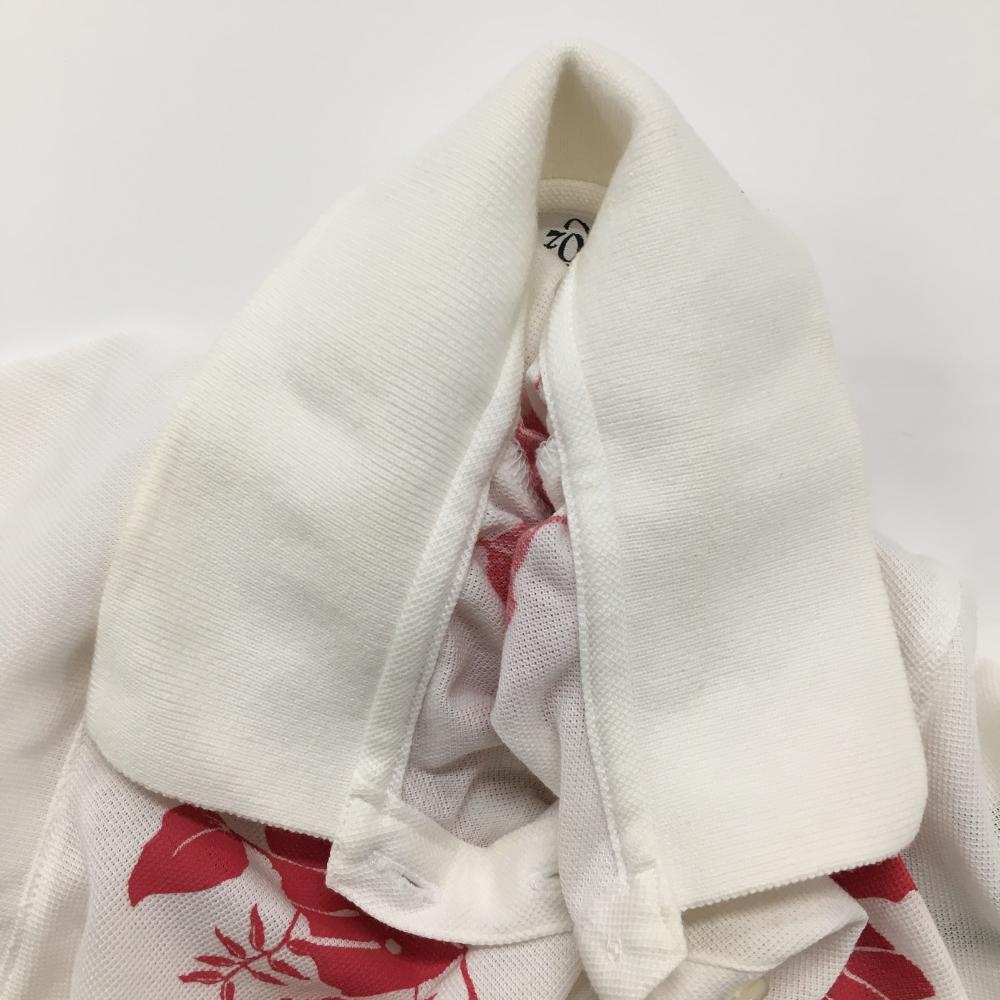 ゾーイ 半袖ポロシャツ 白×ピンクレッド リーフ柄 袖ロゴ刺しゅう レディース M ゴルフウェア ZOY