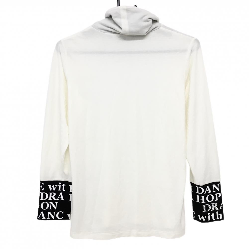 【美品】ダンスウィズドラゴン 長袖ハイネックシャツ 白×黒 微起毛 袖口プリント レディース 3(L) ゴルフウェア Dance With Dragon