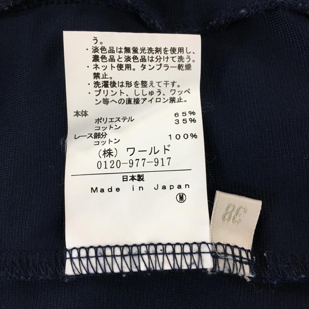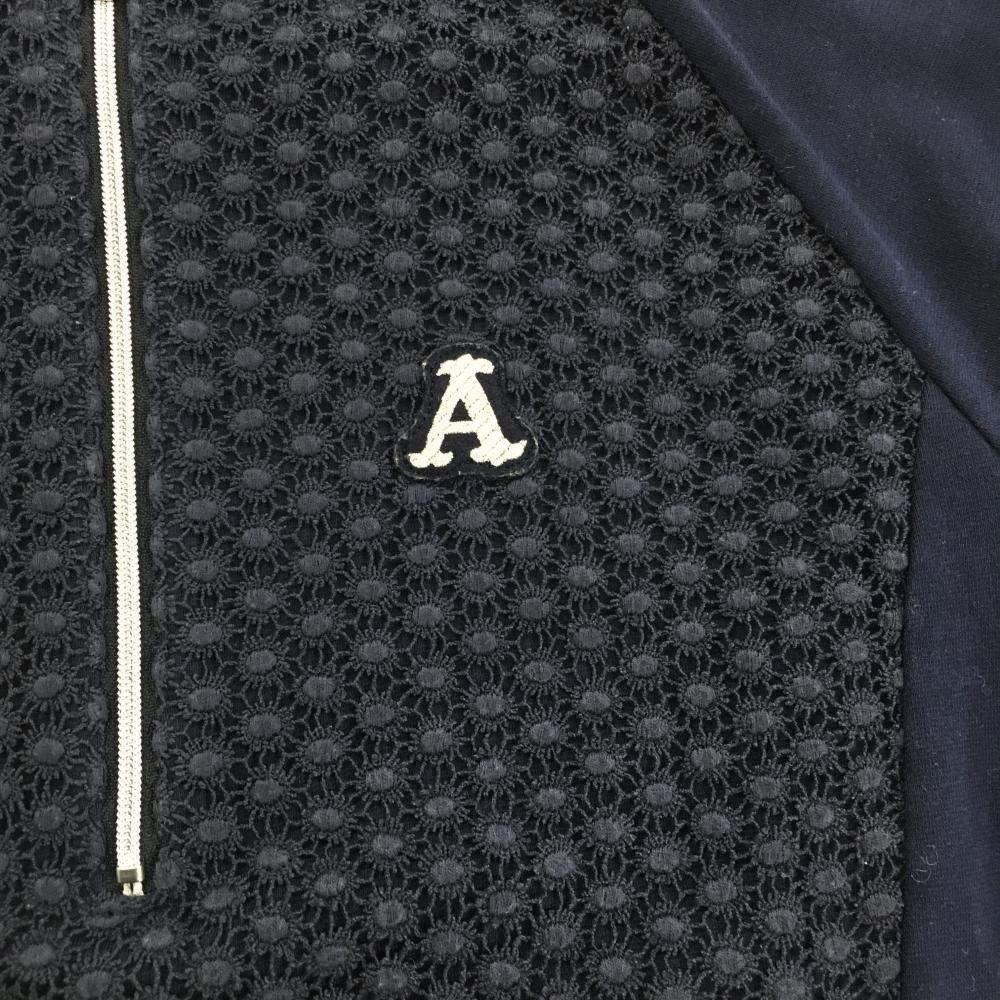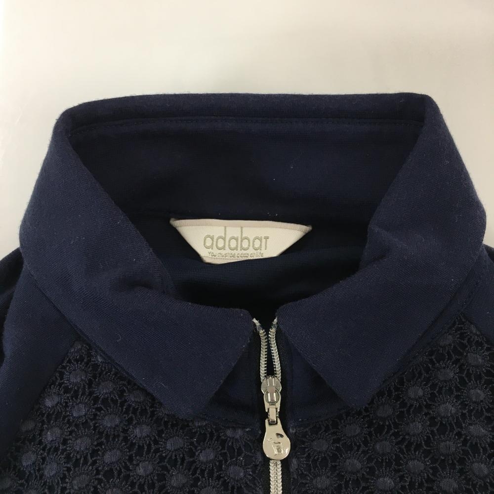 【美品】アダバット 長袖ポロシャツ ネイビー 前身頃レース ハーフジップ レディース 38(M) ゴルフウェア adabat