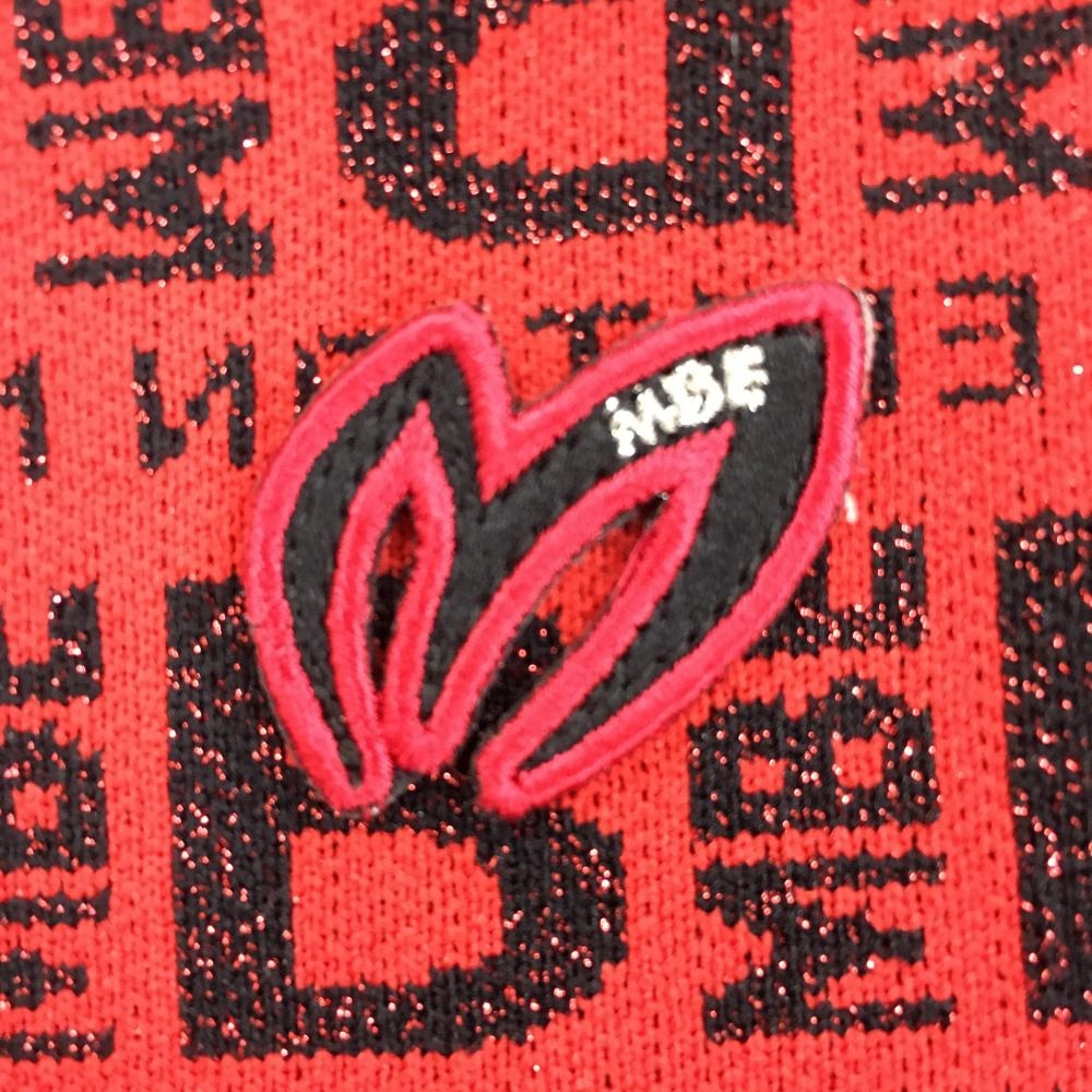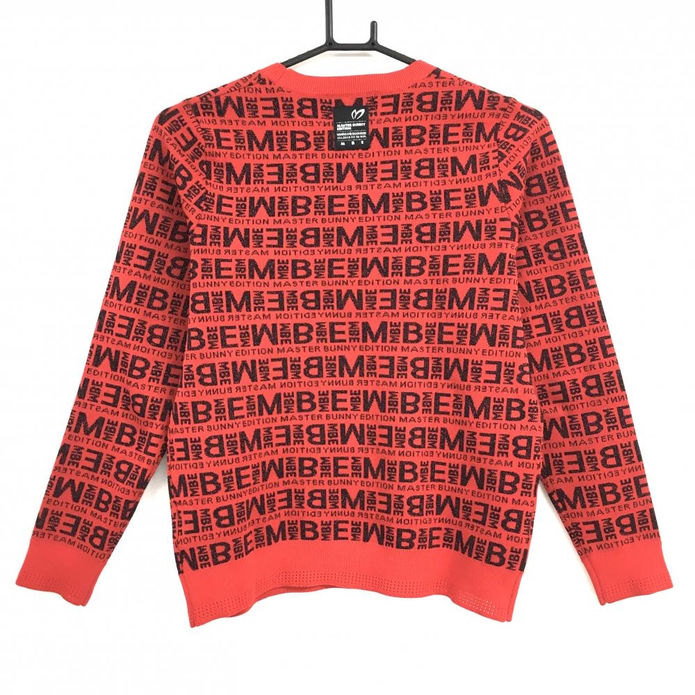 【超美品】マスターバニー セーター レッド×黒 ロゴ総柄 ラメ ニット レディース 0(S) ゴルフウェア MASTER BUNNY EDITION