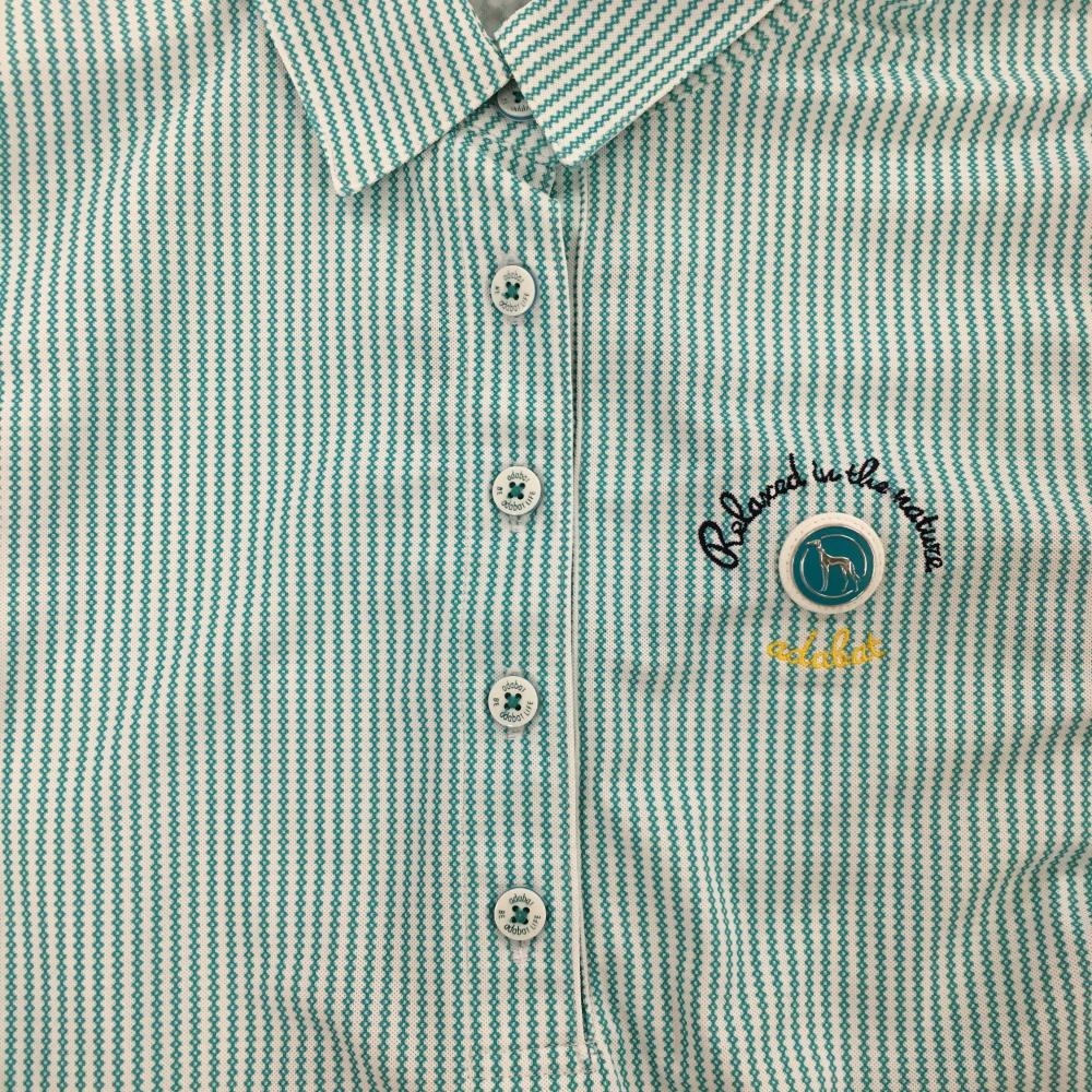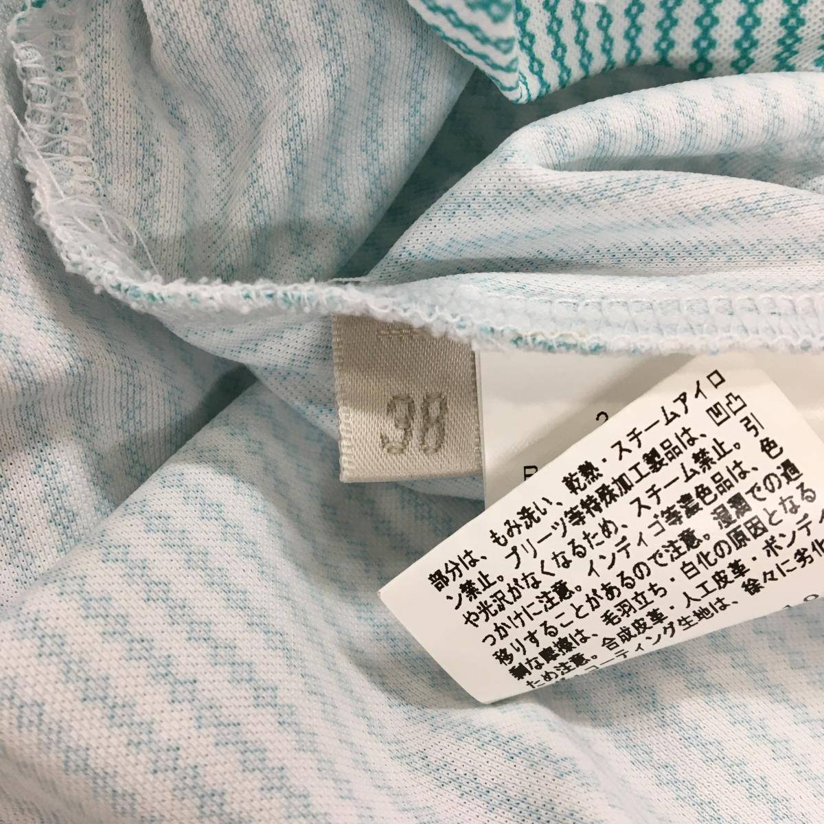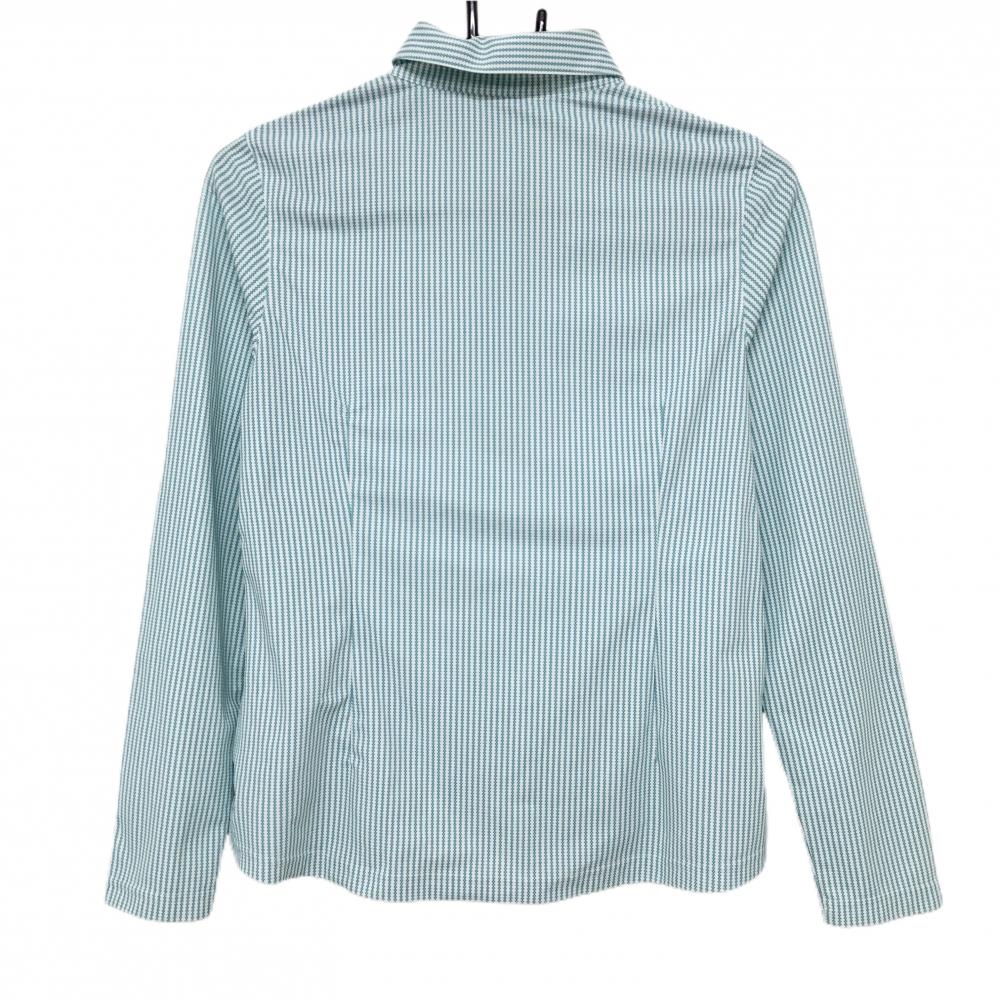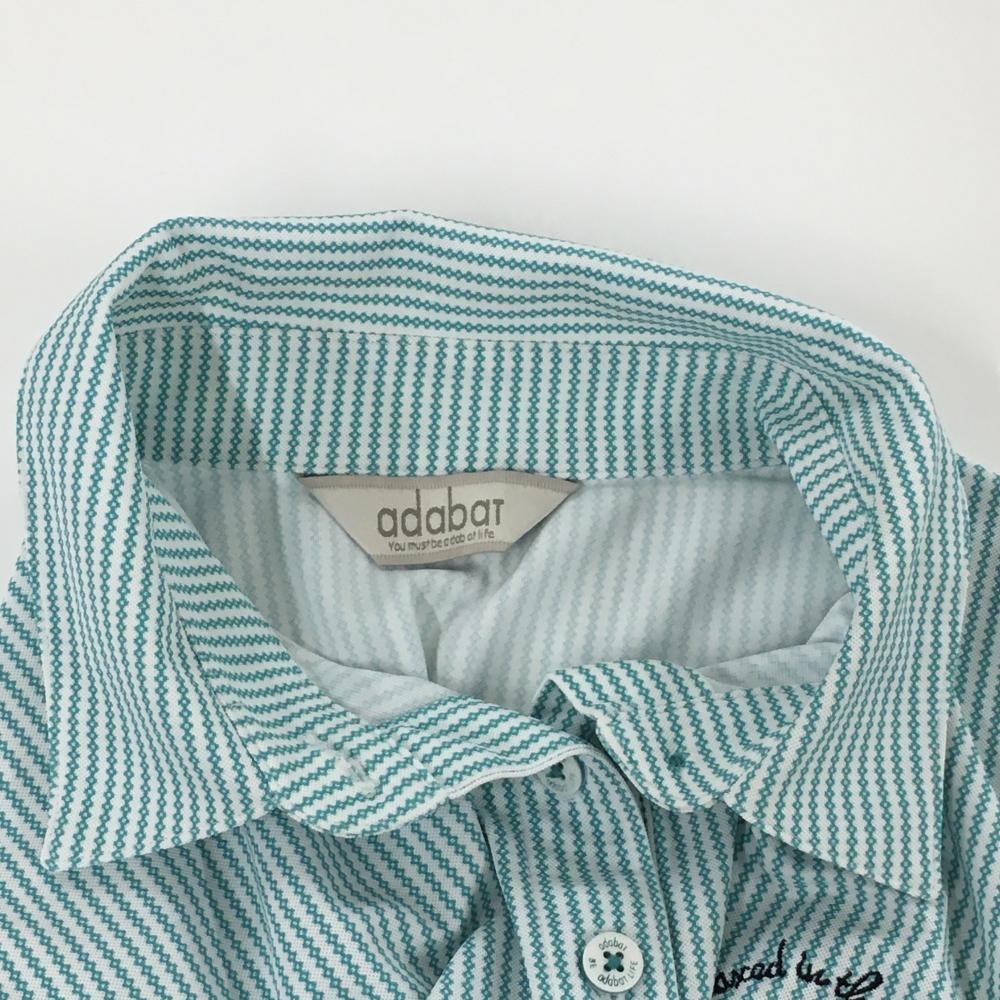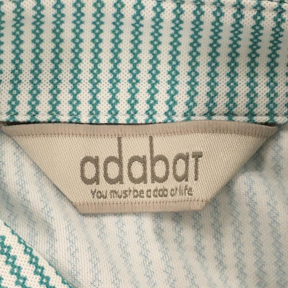 アダバット 長袖ポロシャツ 白×ブルーグリーン ストライプ調 レディース 38(M) ゴルフウェア adabat