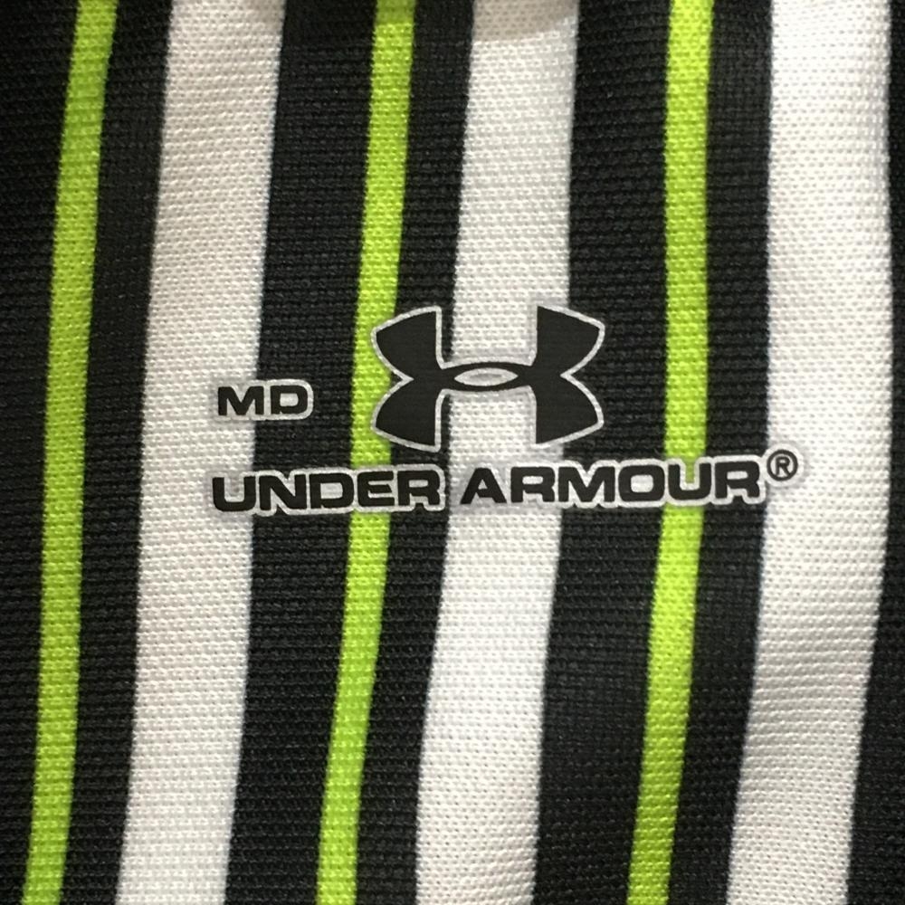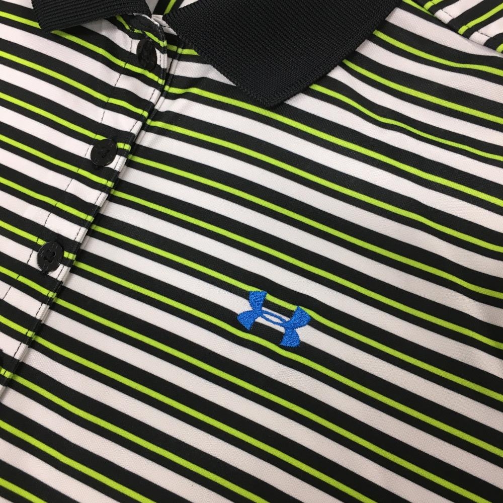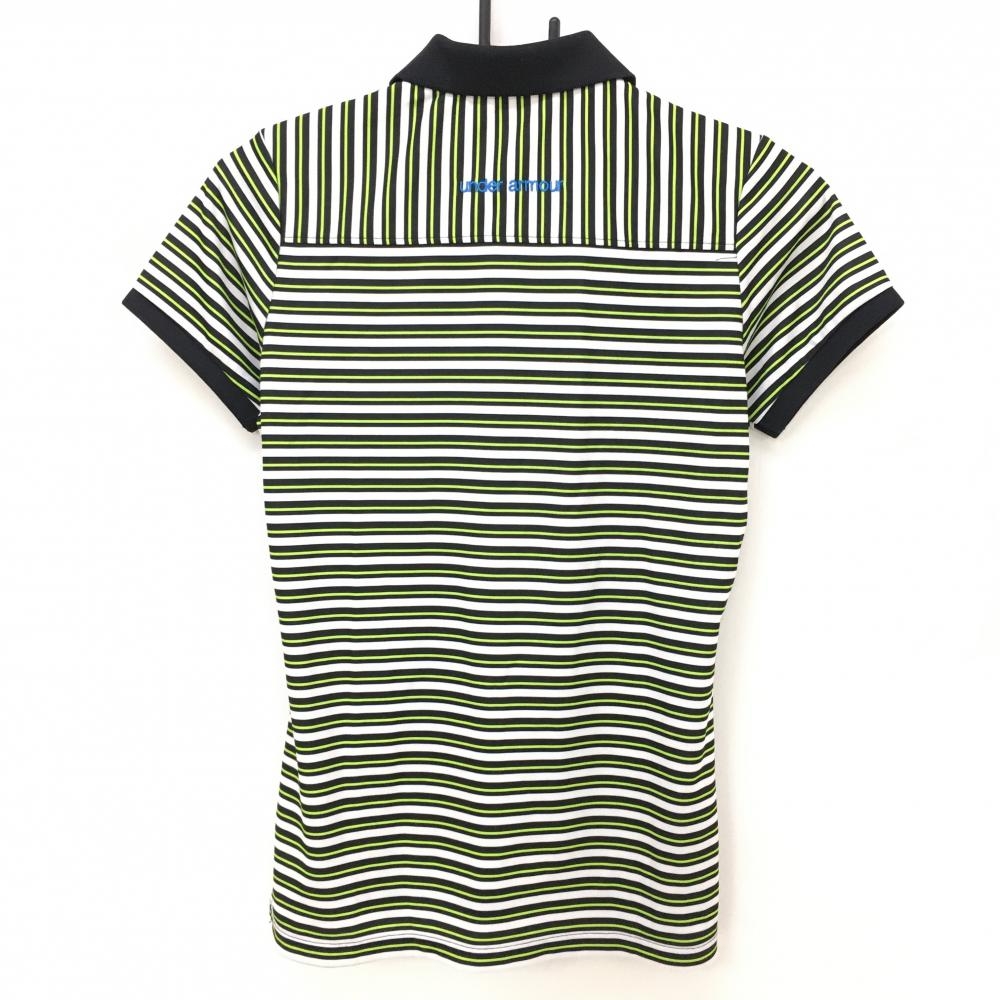 【超美品】アンダーアーマー 半袖ポロシャツ 白×黒 ボーダー 胸ロゴ刺しゅう レディース MP ゴルフウェア UNDER ARMOUR