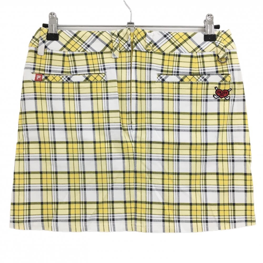 【超美品】フィラゴルフ スカート イエロー×白 チェック レディース L ゴルフウェア FILA GOLF