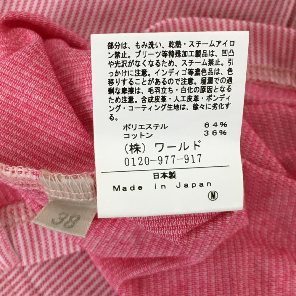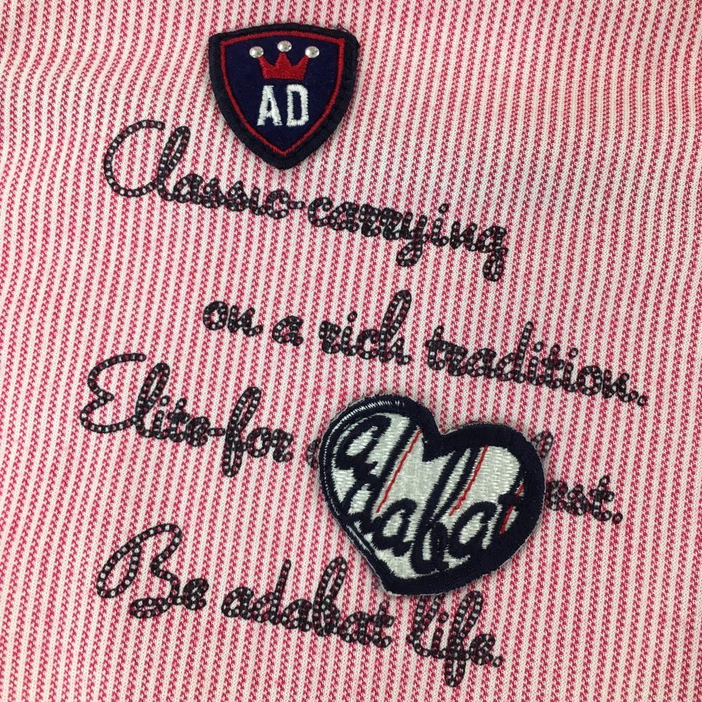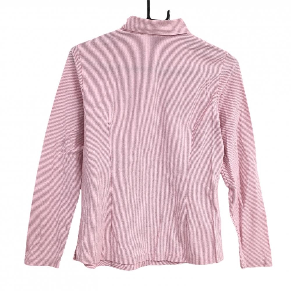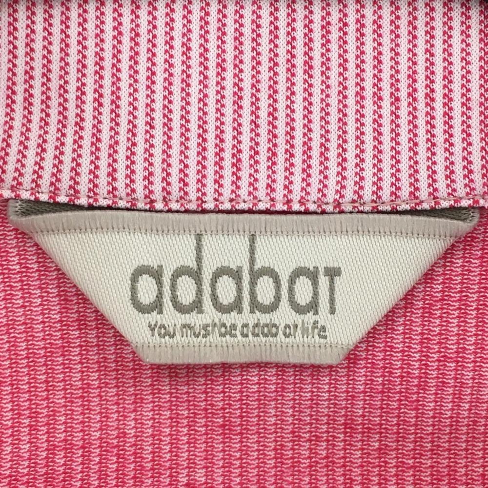 【美品】アダバット 長袖ポロシャツ ピンク×白 ストライプ ロゴワッペン レディース 38(M) ゴルフウェア adabat