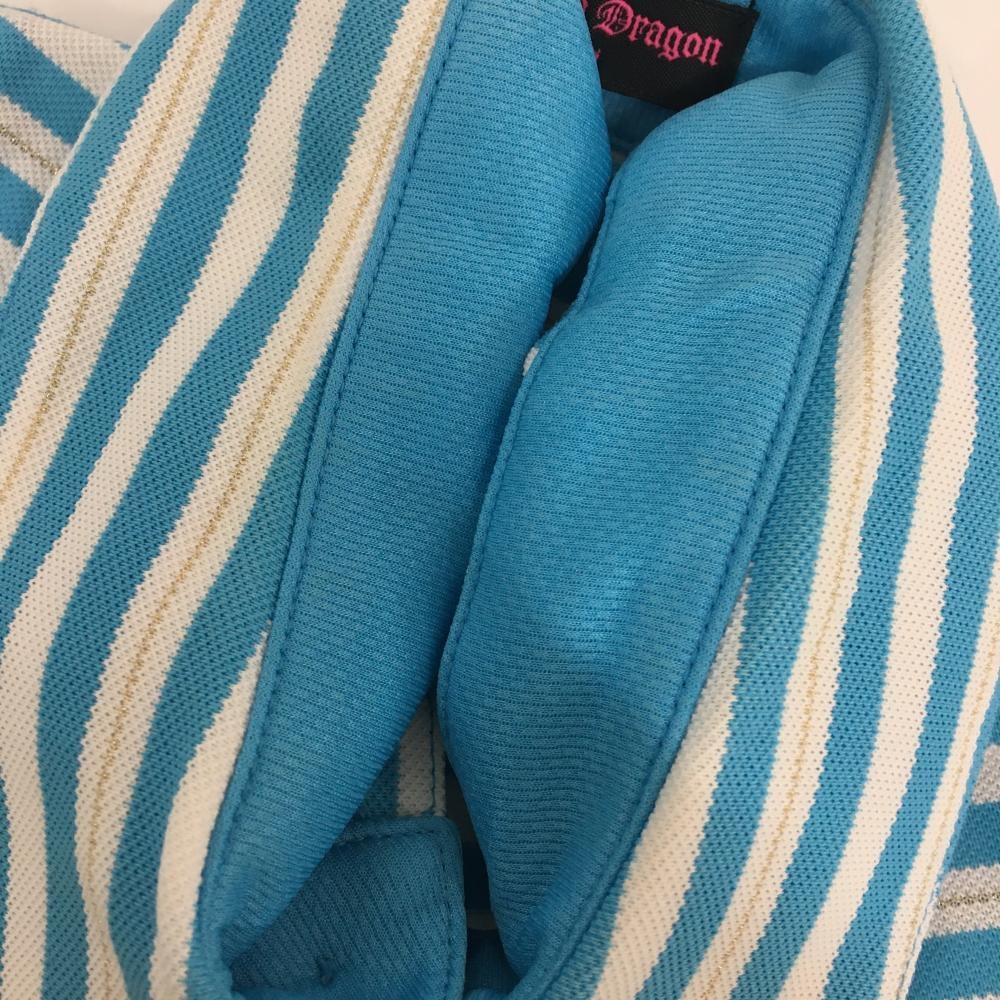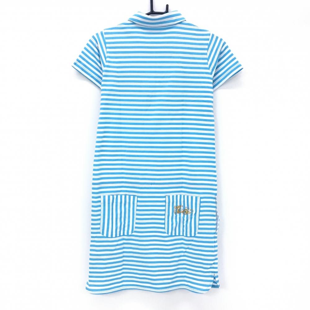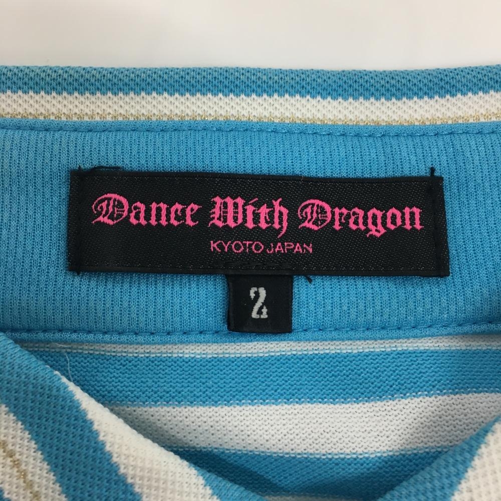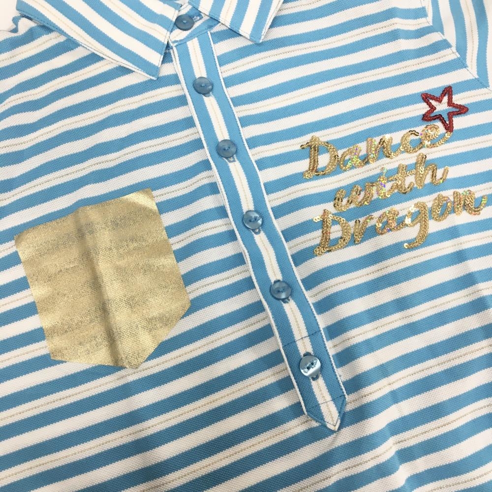 ダンスウィズドラゴン 半袖ポロワンピース ライトブルー×白 ボーダー スパンコールロゴ レディース 2(M) ゴルフウェア Dance With Dragon