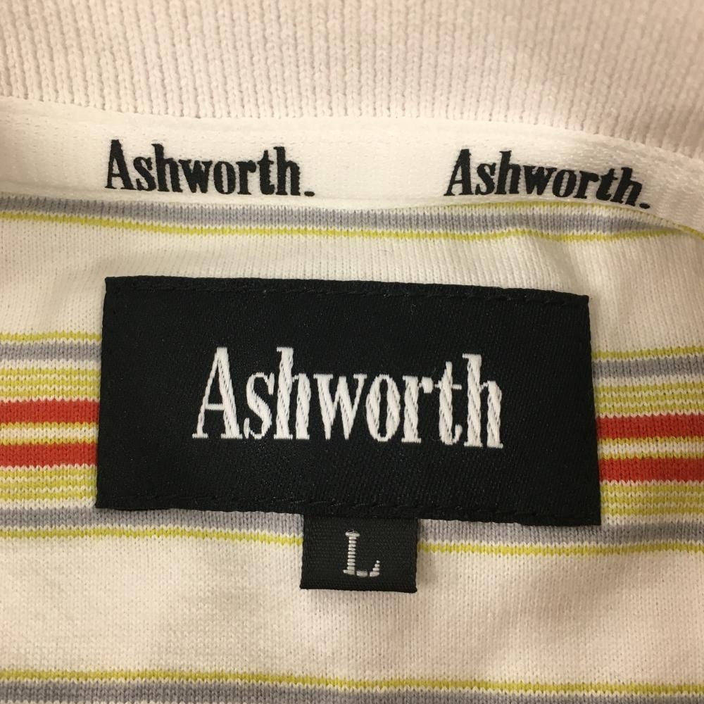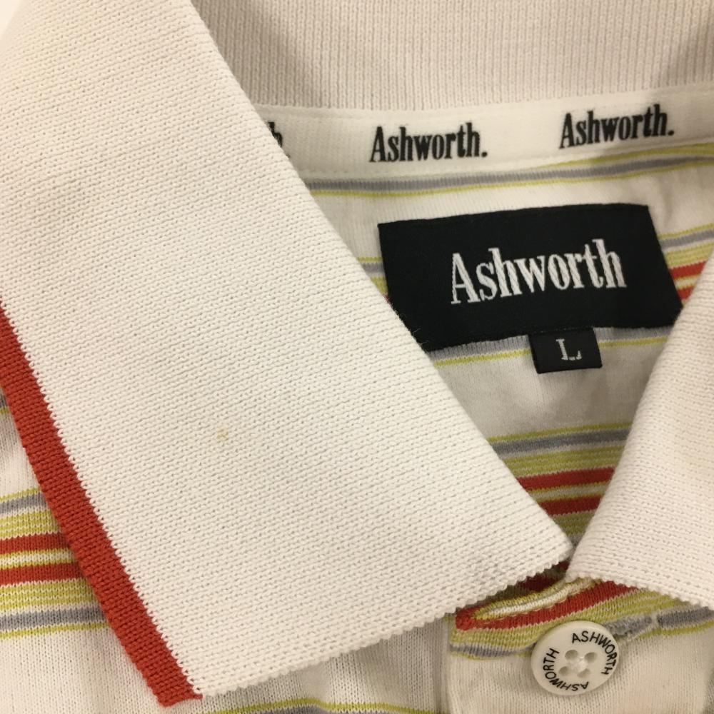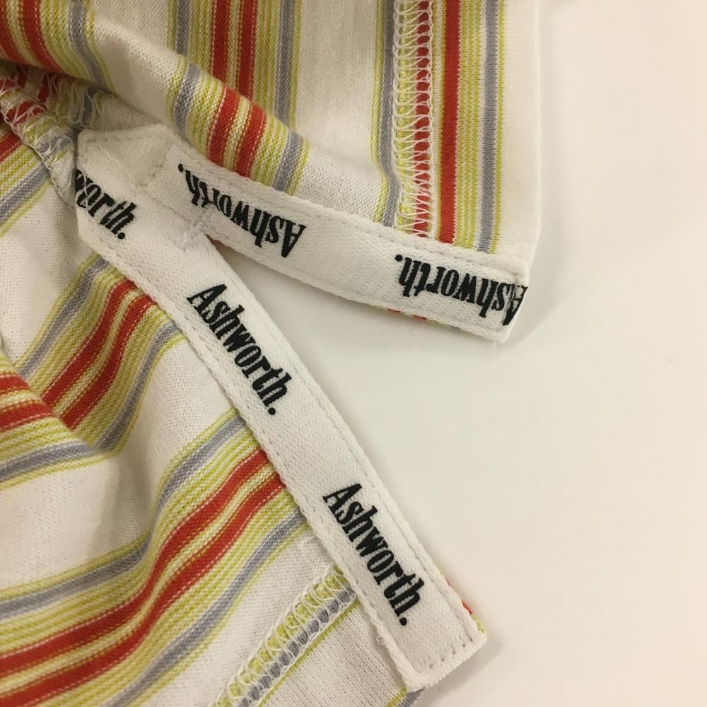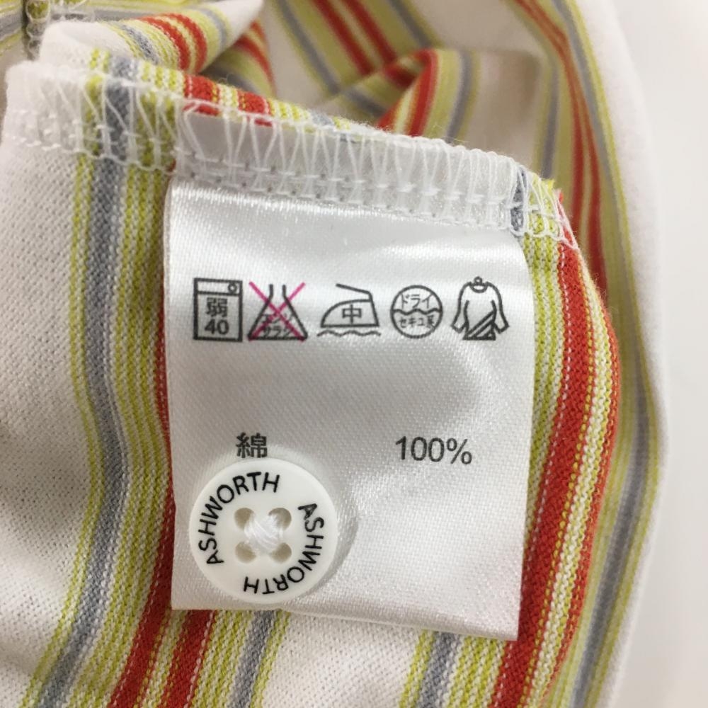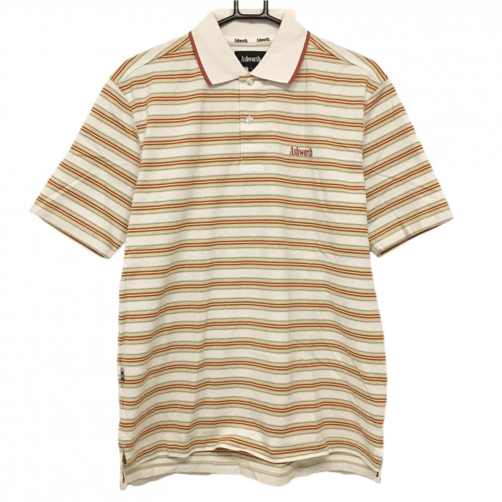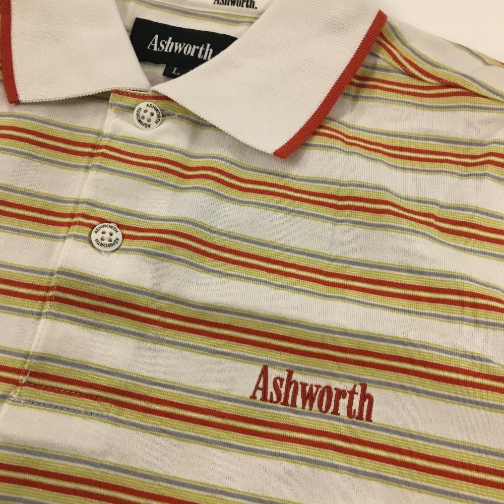 アシュワース 半袖ポロシャツ 白×オレンジ×イエロー ボーダー メンズ L ゴルフウェア ASHWORTH