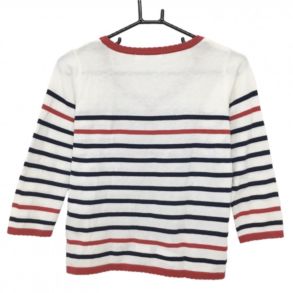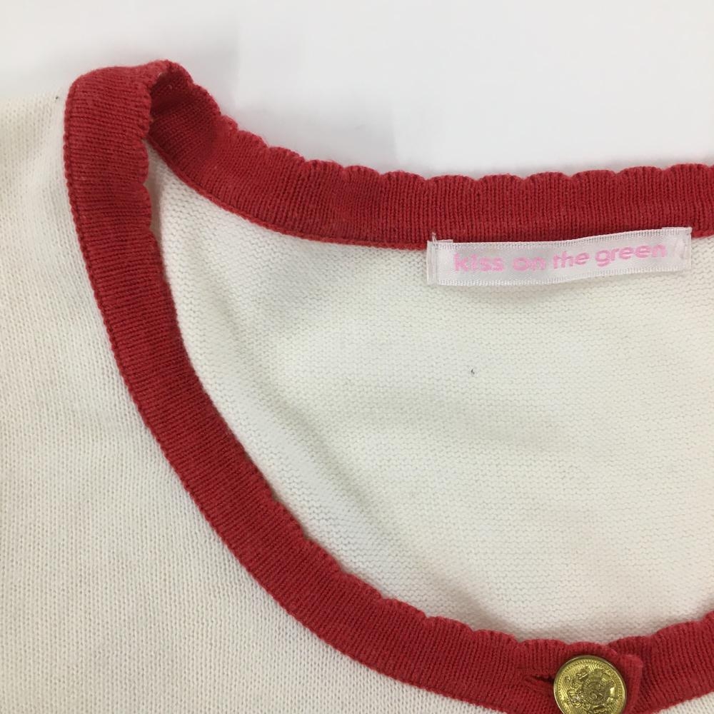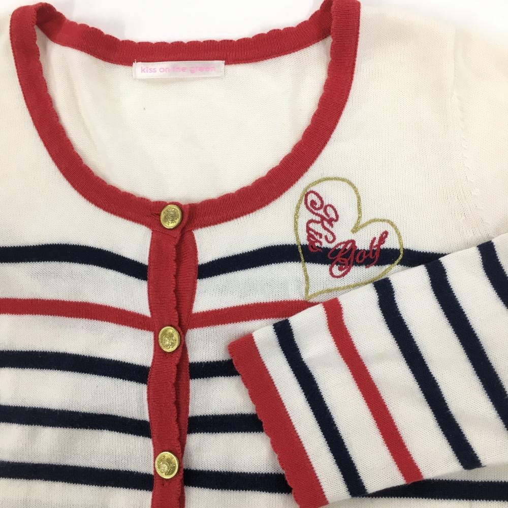 キスオンザグリーン 七分袖カーディガン 白×ネイビー×レッド ボーダー ニット レディース F ゴルフウェア kiss on the green