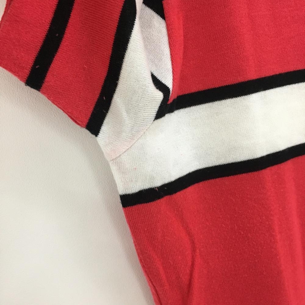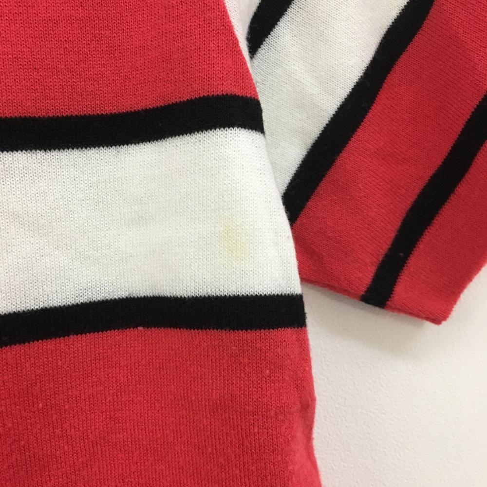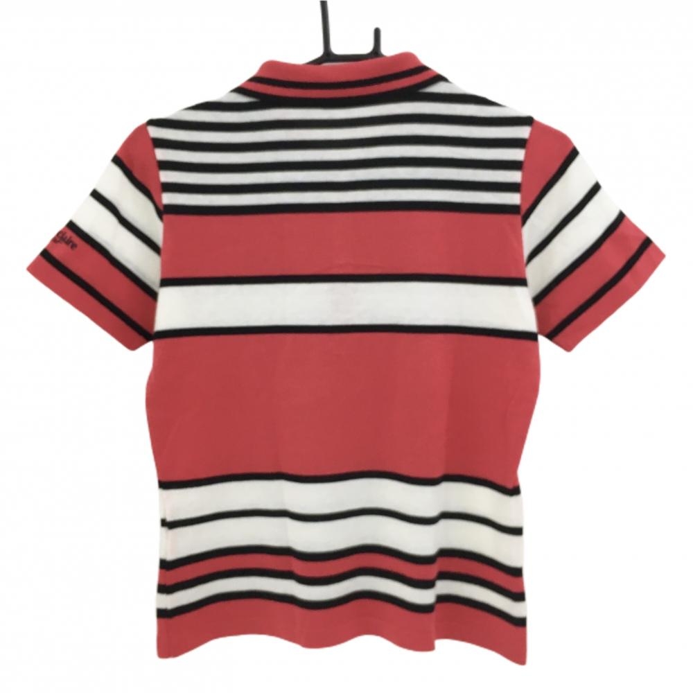 【美品】マリクレール 半袖ポロシャツ レッド×白 ボーダー柄 ロゴ刺しゅう レディース ゴルフウェア marie claire