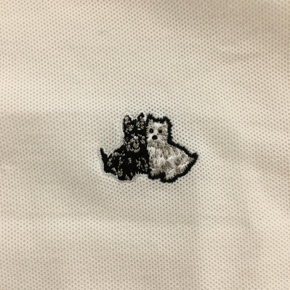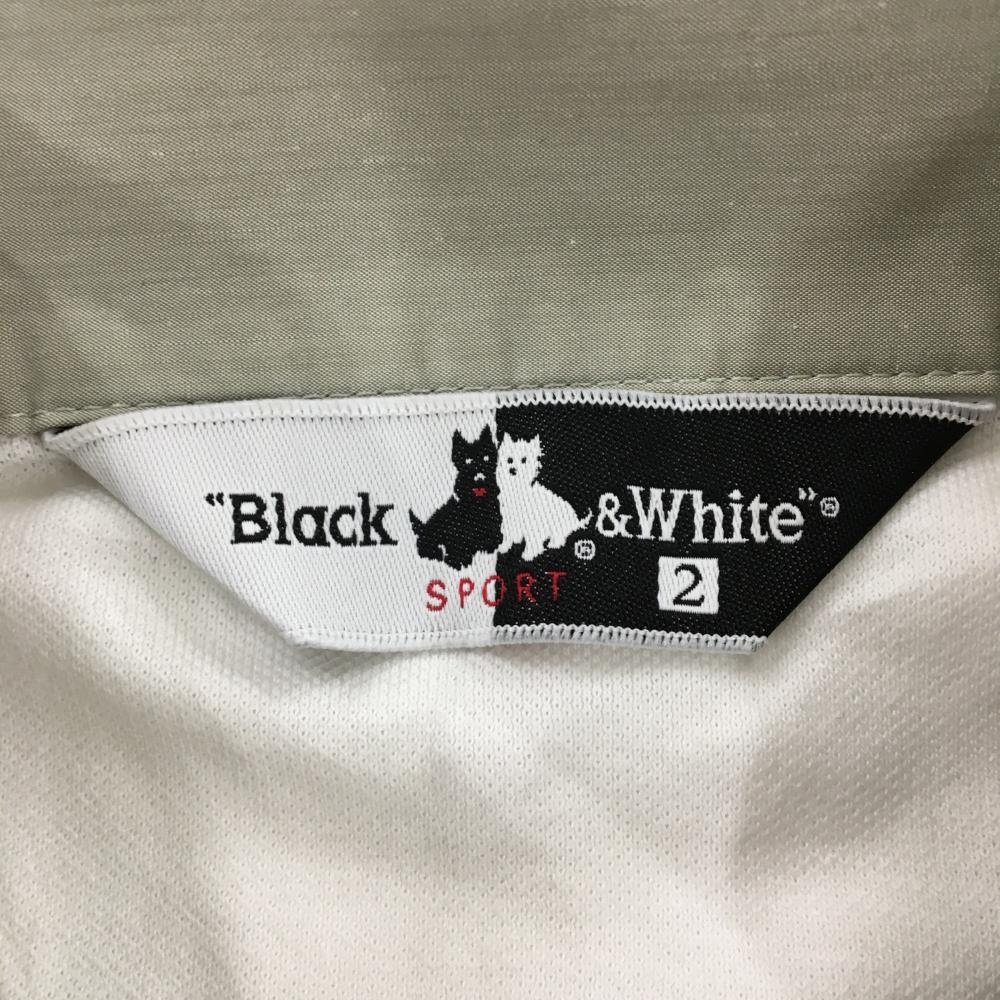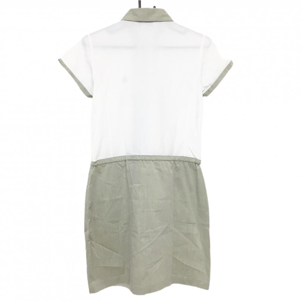 【美品】ブラックアンドホワイト 半袖ポロワンピース 白×ライトカーキ レディース 2(M) ゴルフウェア Black&White