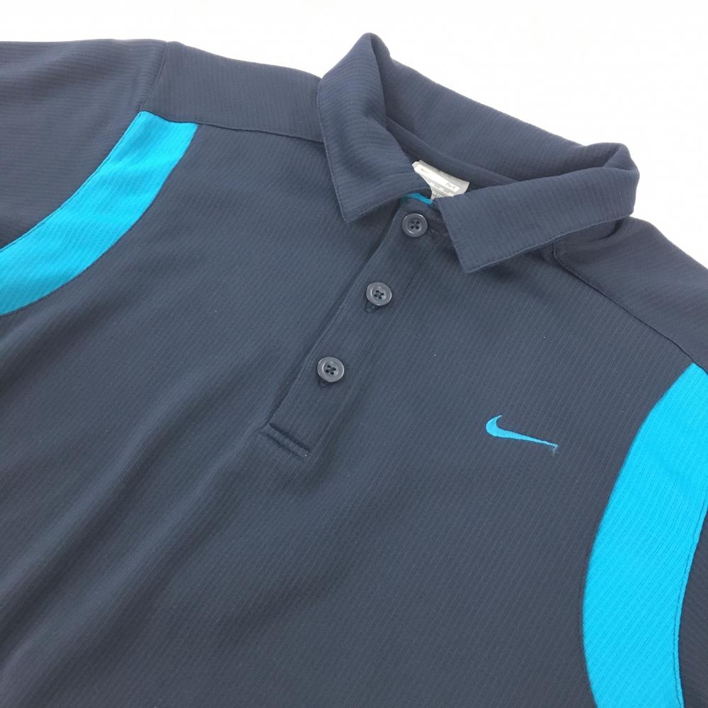 【美品】ナイキ 半袖ポロシャツ ネイビー×ブルー 織生地 NikeFITDRY メンズ M ゴルフウェア NIKE