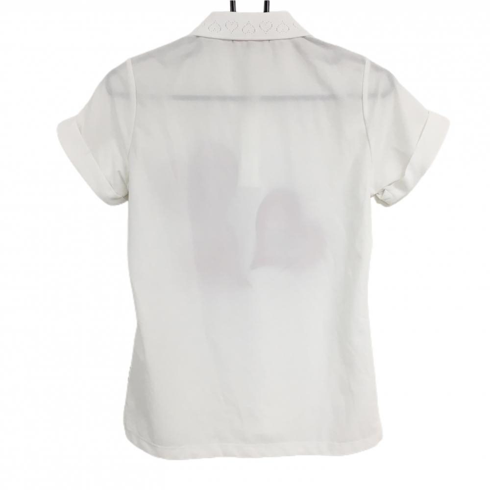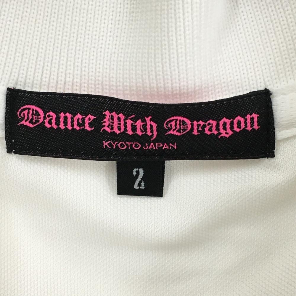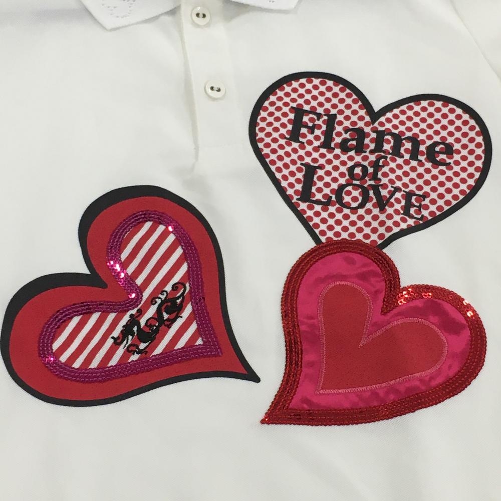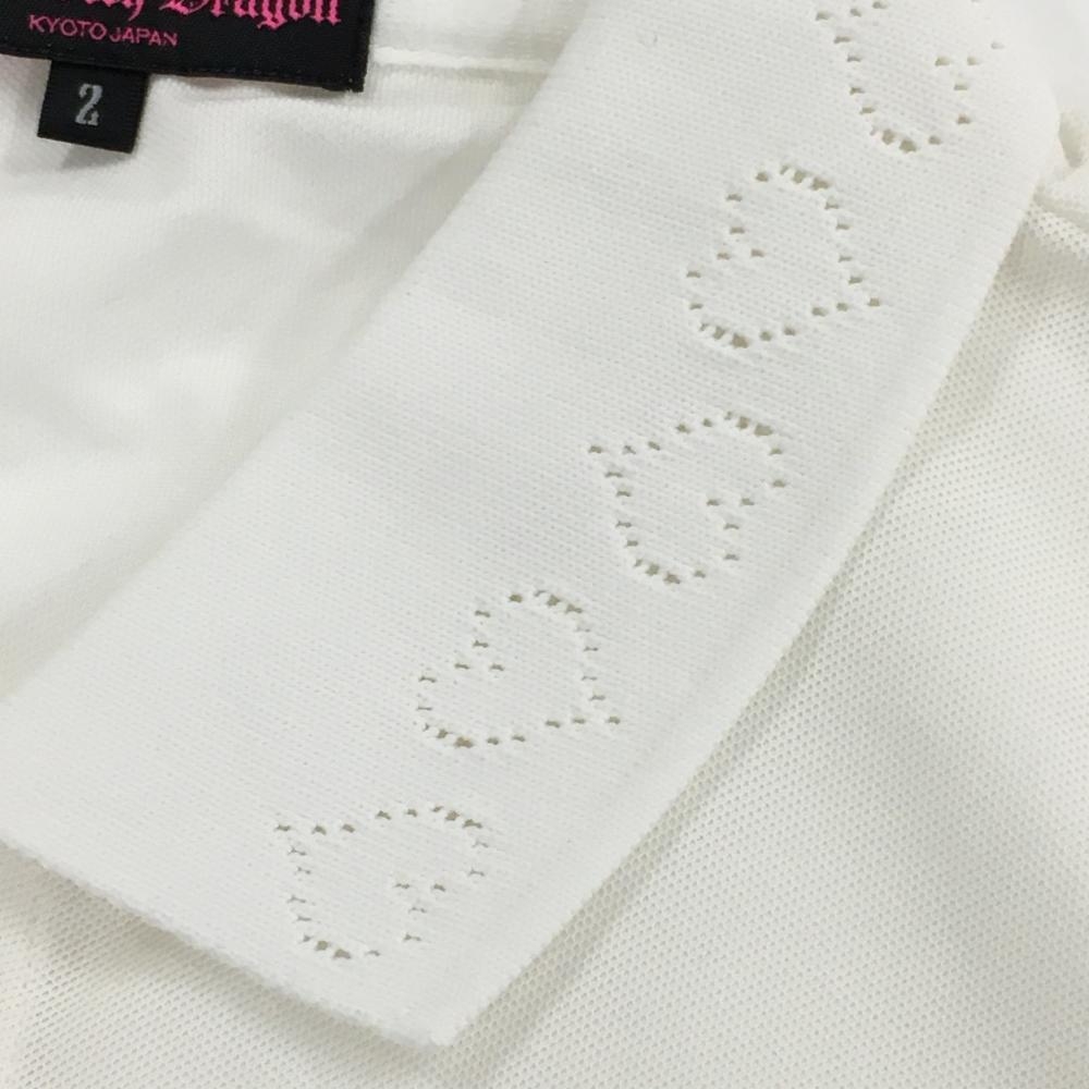 【超美品】ダンスウィズドラゴン 半袖ポロシャツ 白×レッド ハート ドット スパンコール レディース 2(M) ゴルフウェア Dance With Dragon