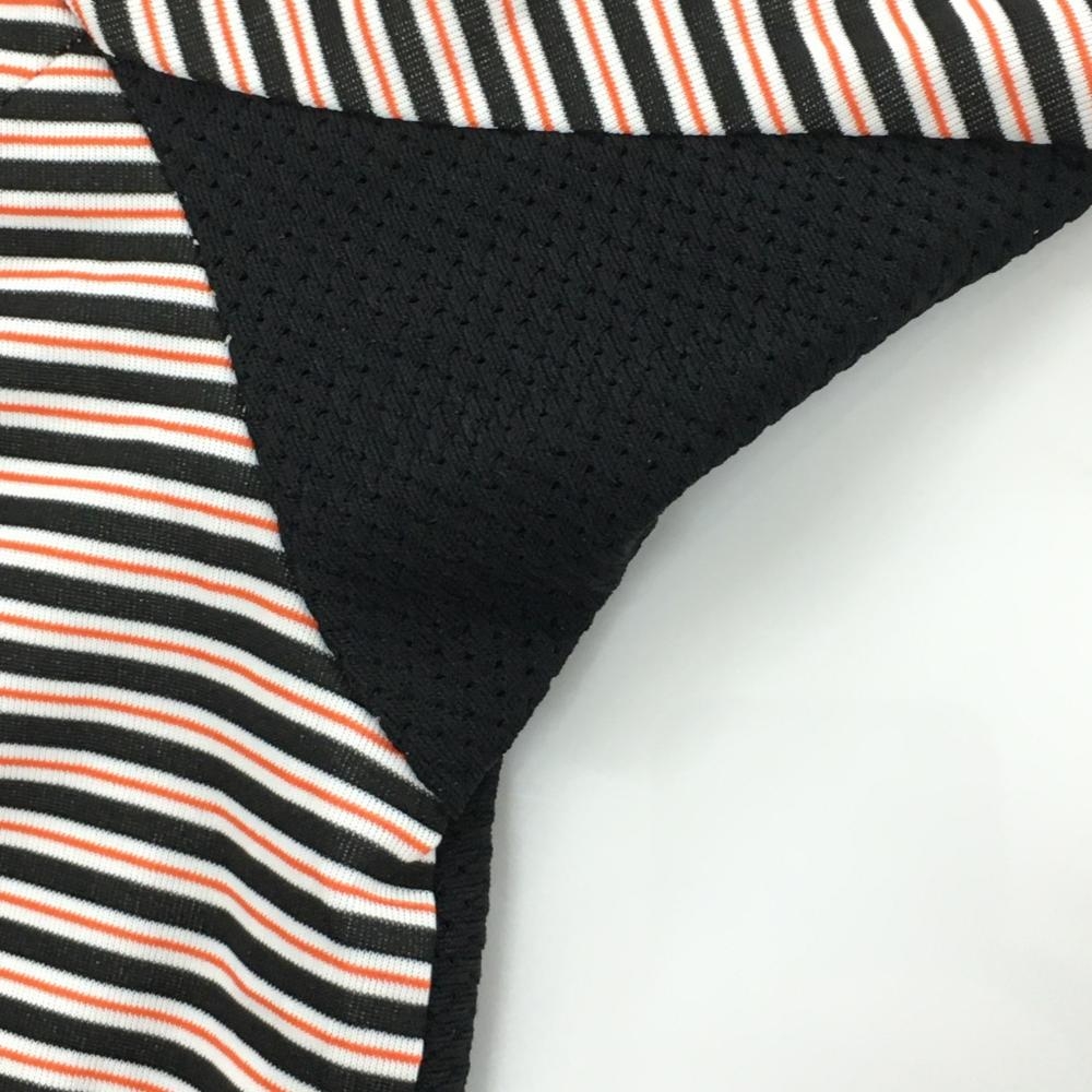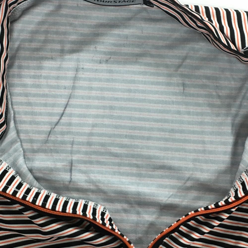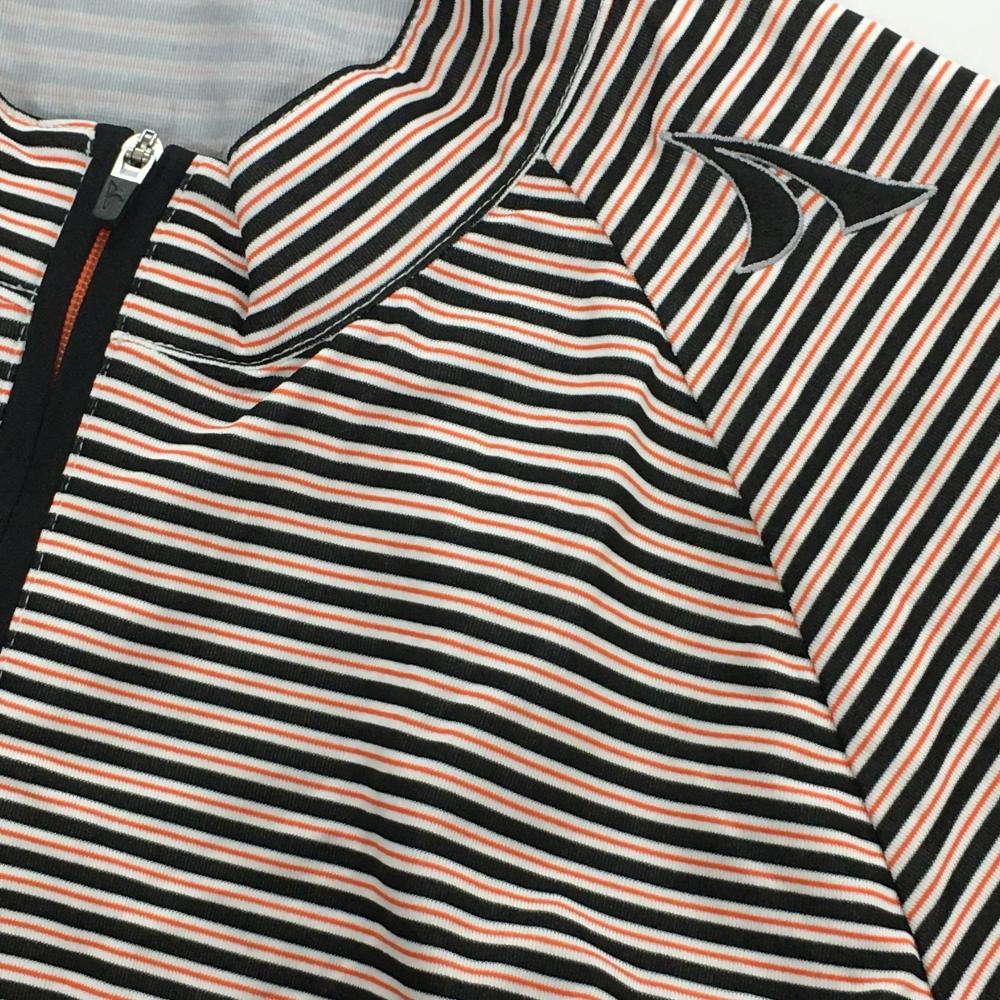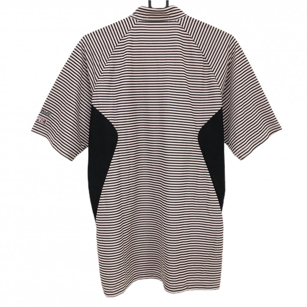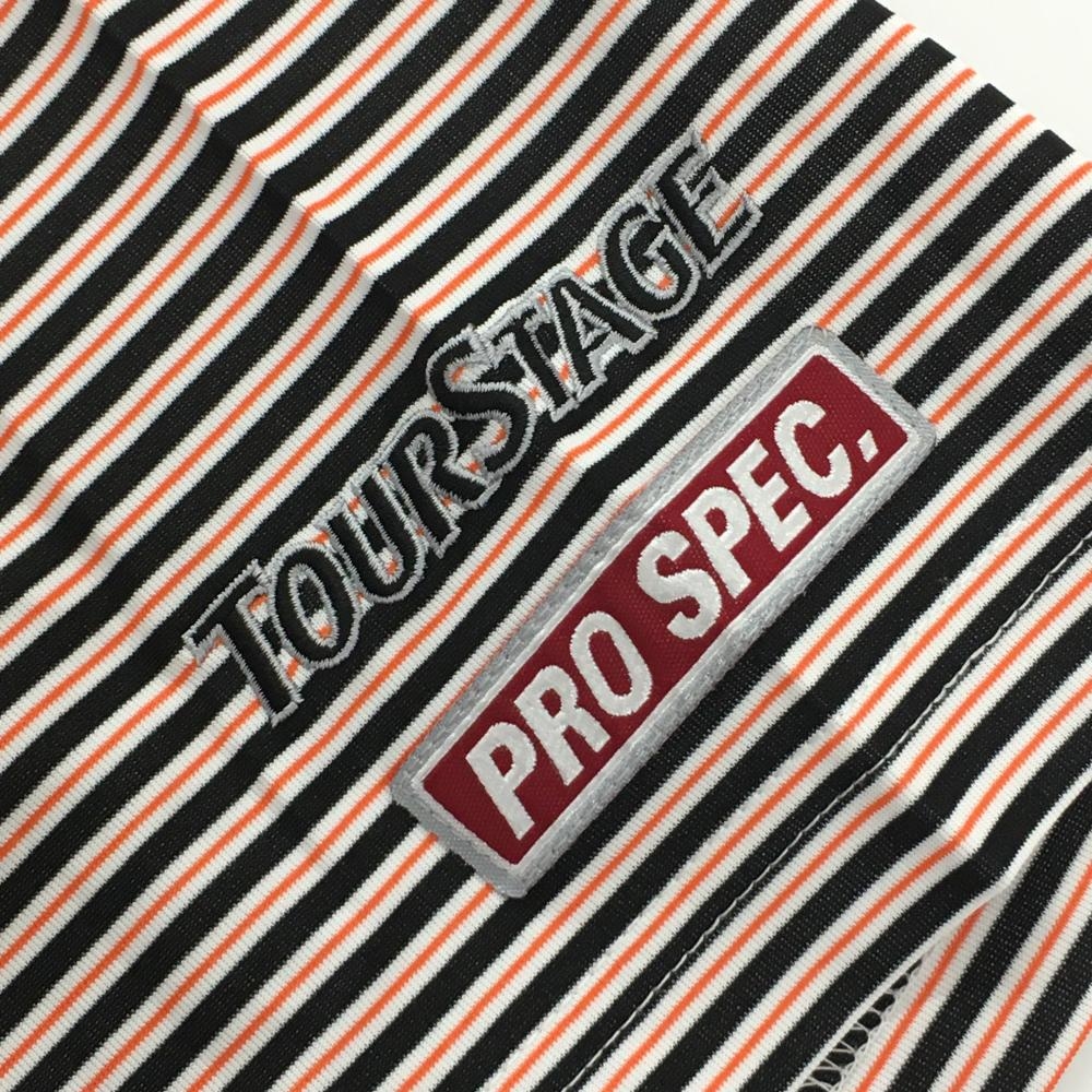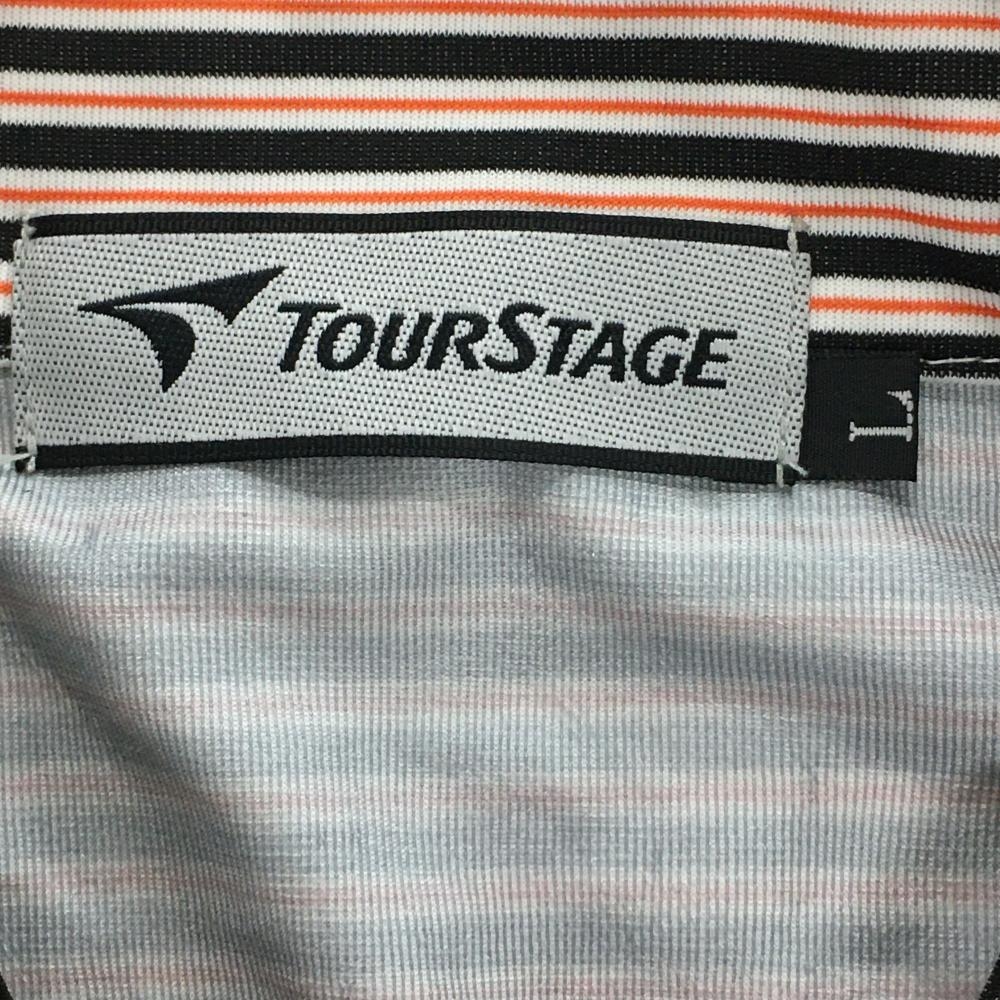 【超美品】ツアーステージ 半袖ハイネックシャツ 黒×オレンジ ボーダー ハーフジップ 肩ロゴ メンズ L ゴルフウェア TOURSTAGE