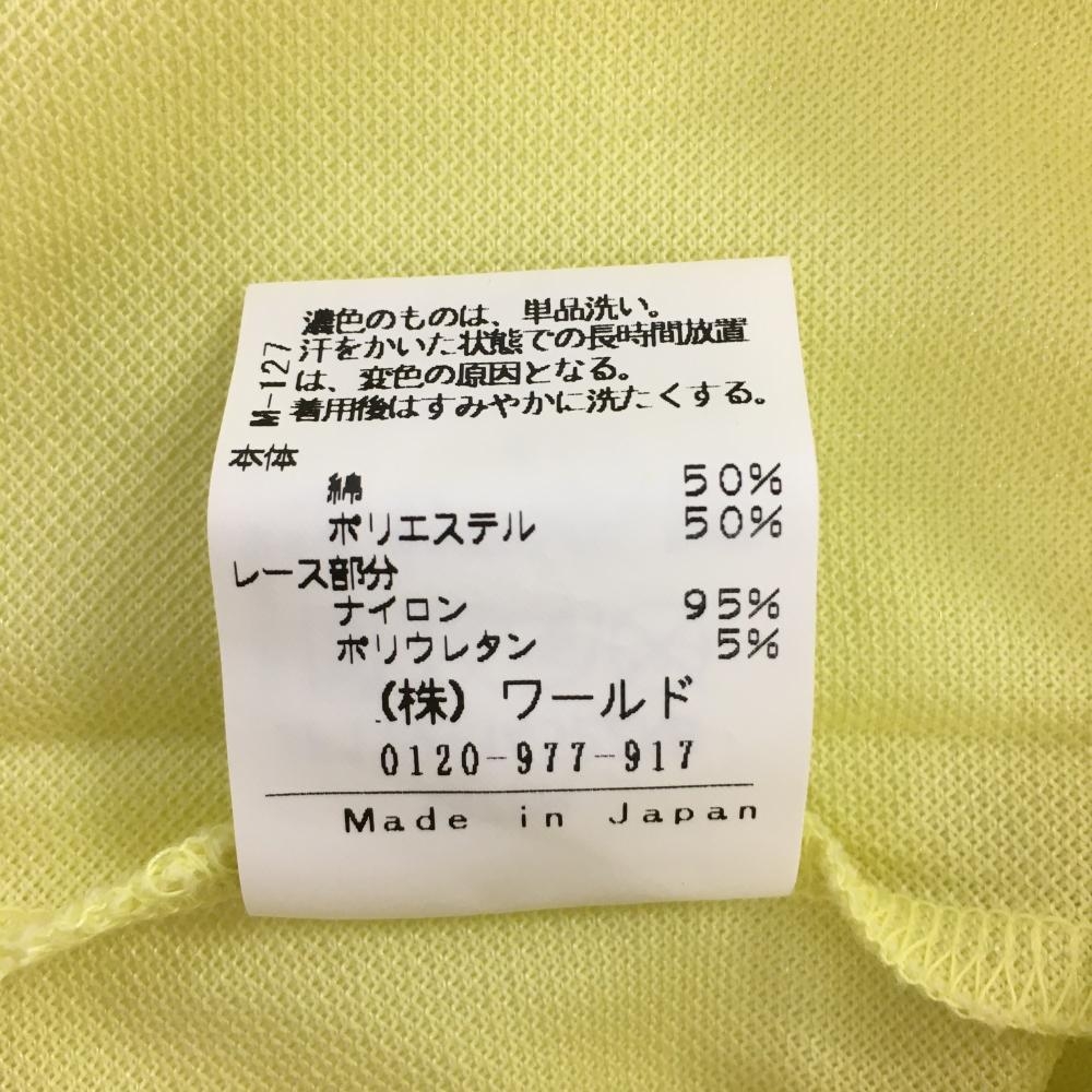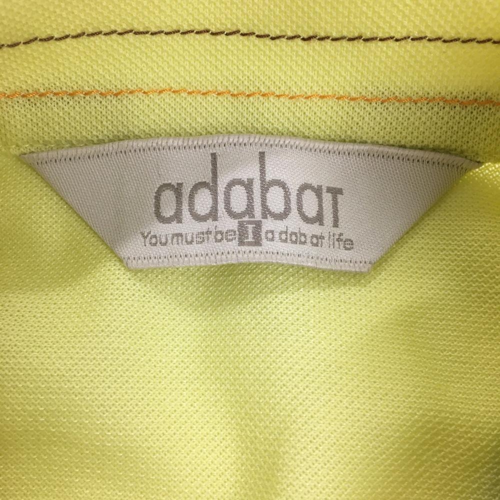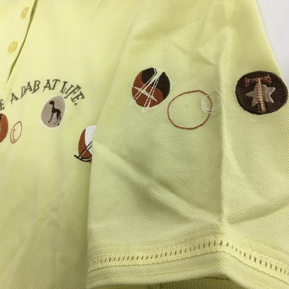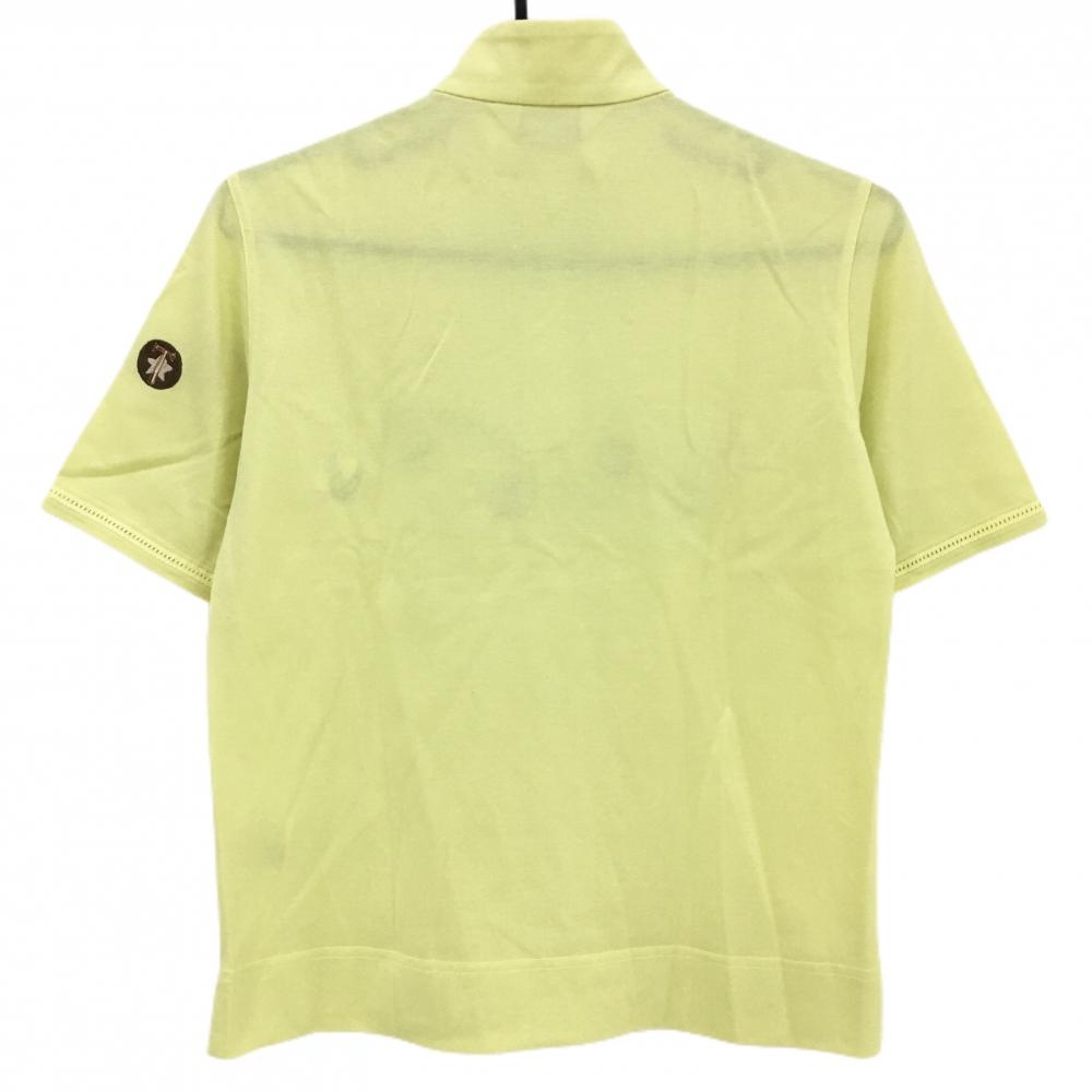 【超美品】アダバット 半袖ハイネックシャツ イエローグリーン イヌ刺しゅう ボタン レディース I(M) ゴルフウェア adabat