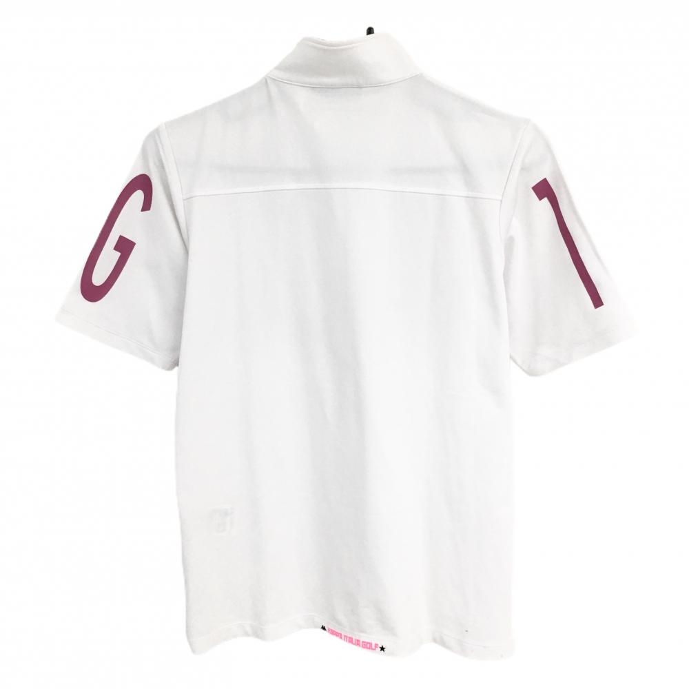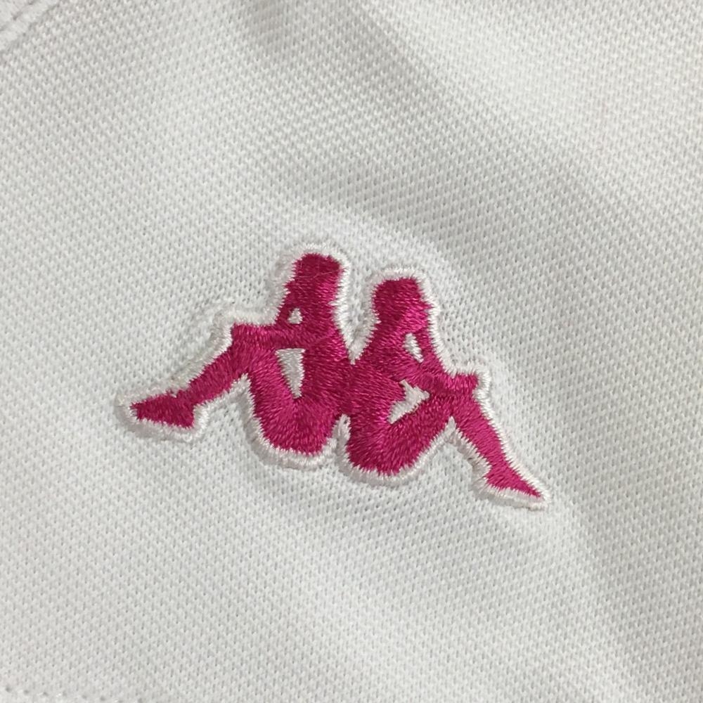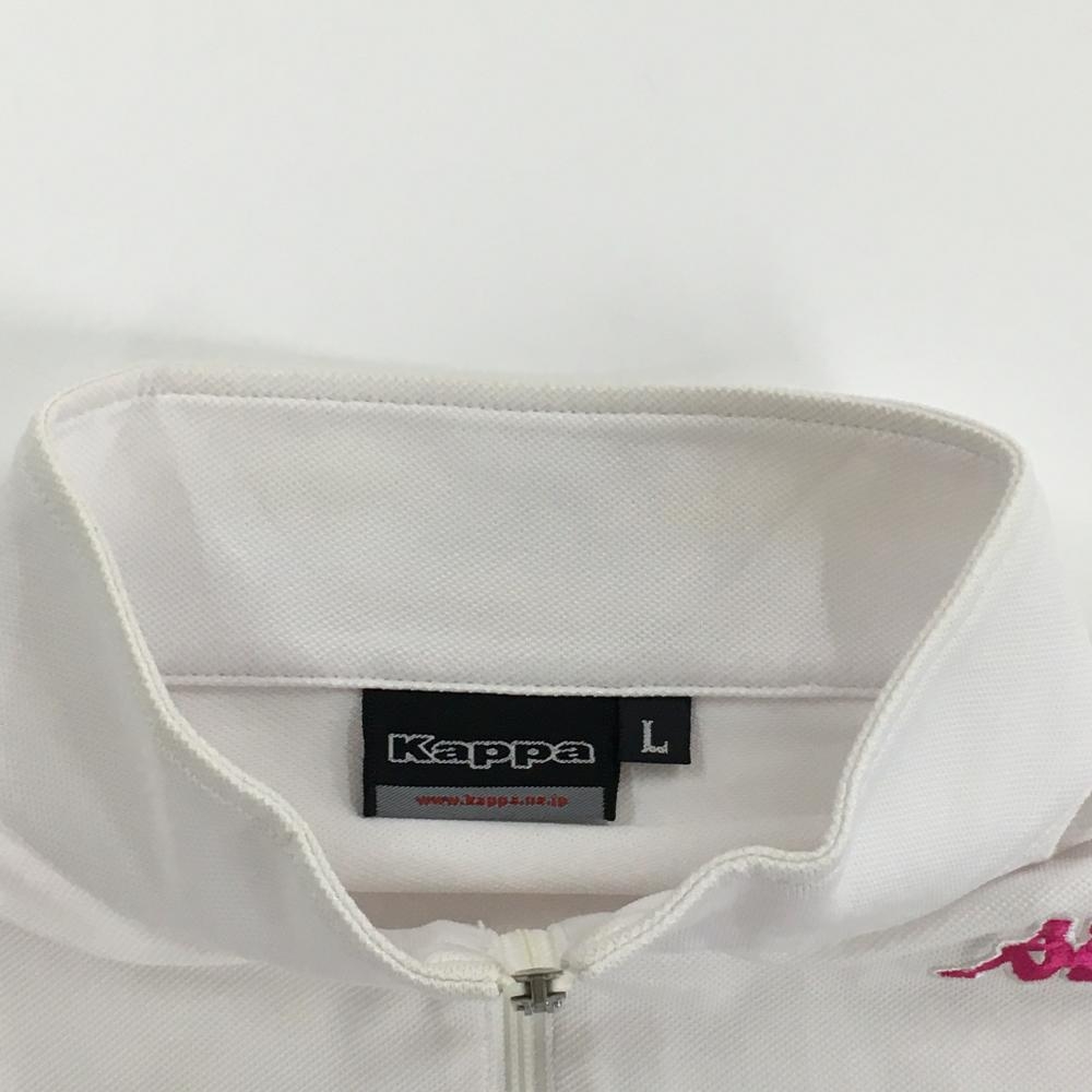 カッパ 半袖ハイネックシャツ 白×パープルピンク ハーフジップ ロゴ刺しゅう レディース L ゴルフウェア Kappa