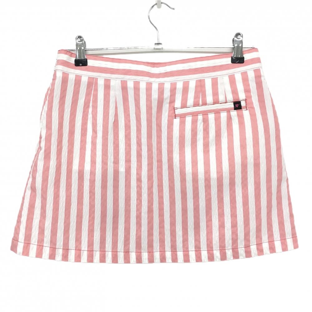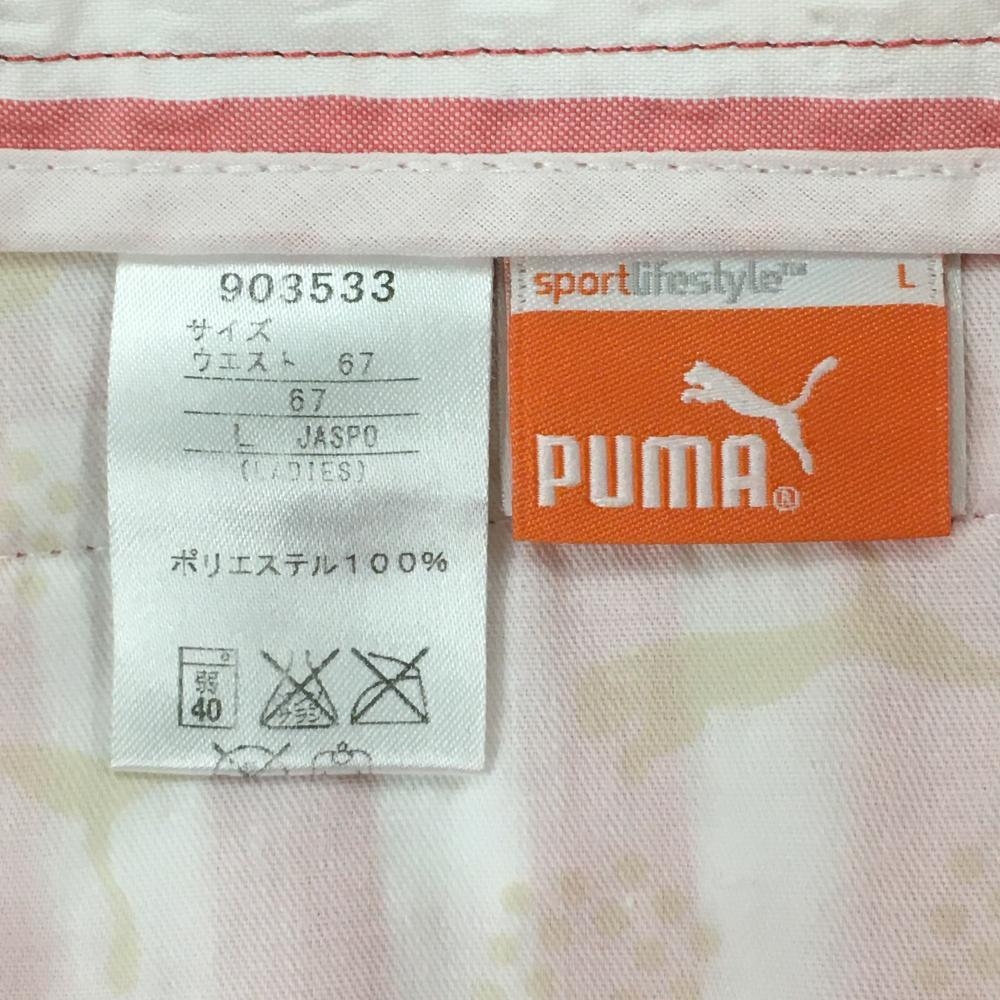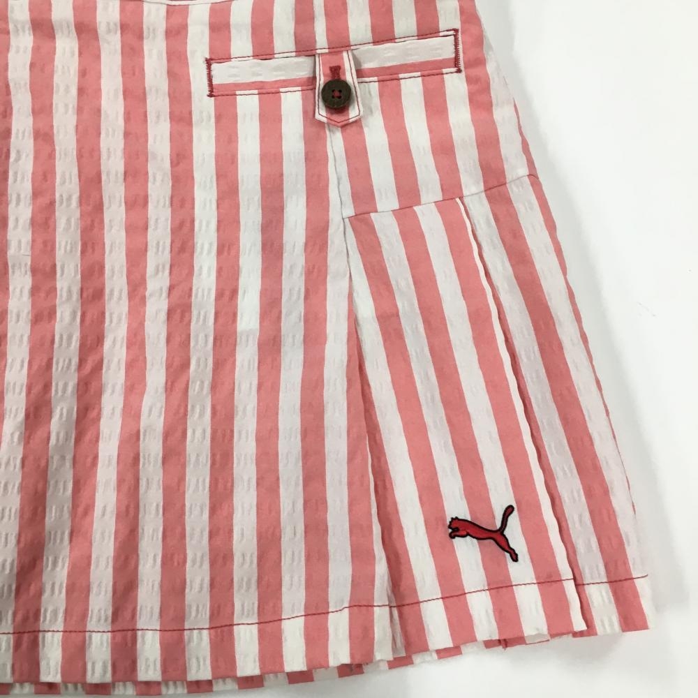 【超美品】プーマ スカート ピンク×白 ストライプ サッカー生地 レディース L ゴルフウェア PUMA
