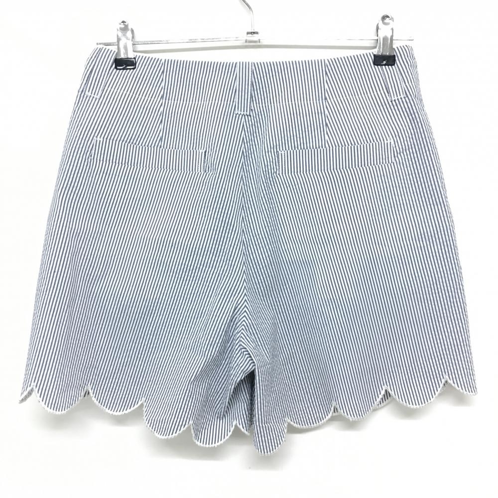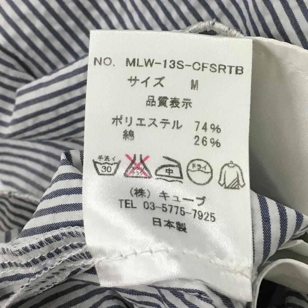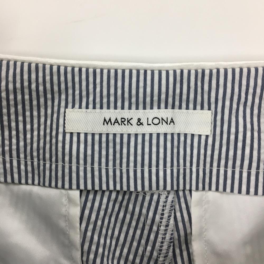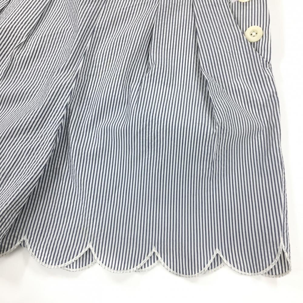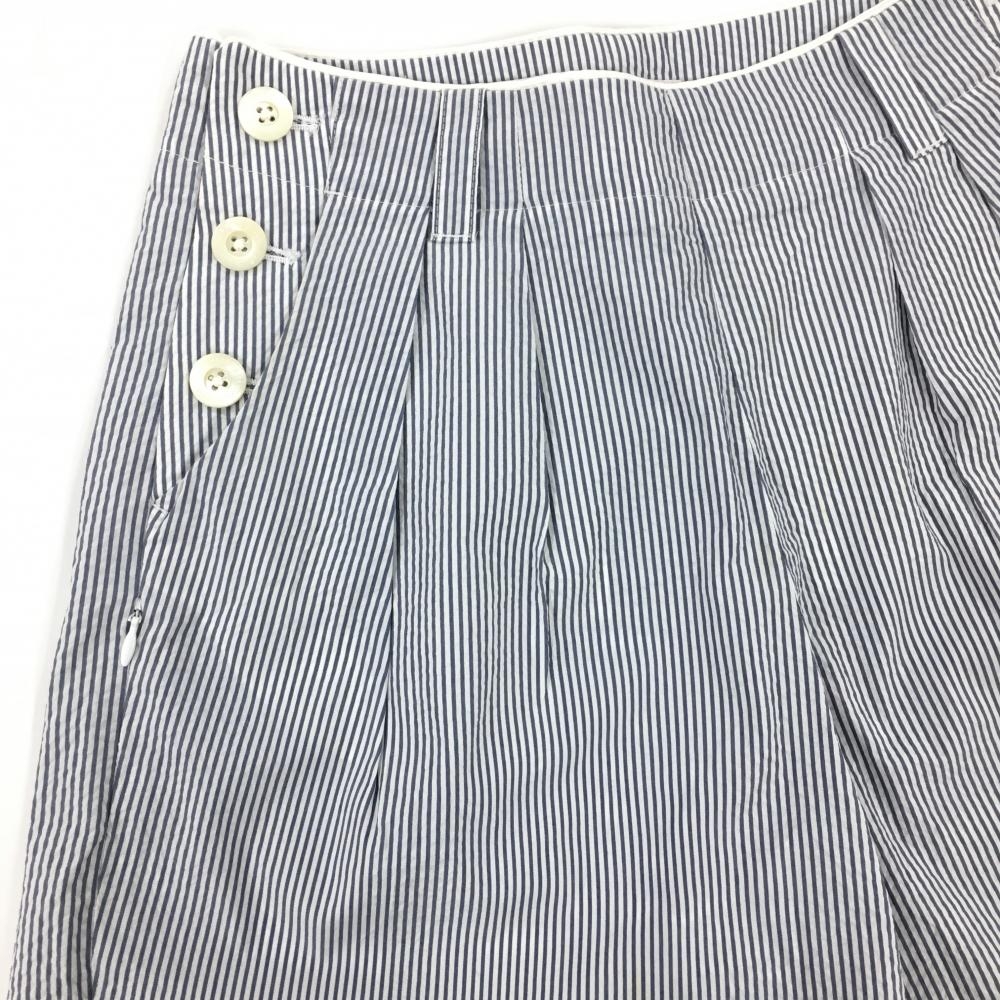 【超美品】マークアンドロナ キュロットスカート ネイビー×白 ストライプ サッカー生地 スカラップ レディース M ゴルフウェア MARK&LONA