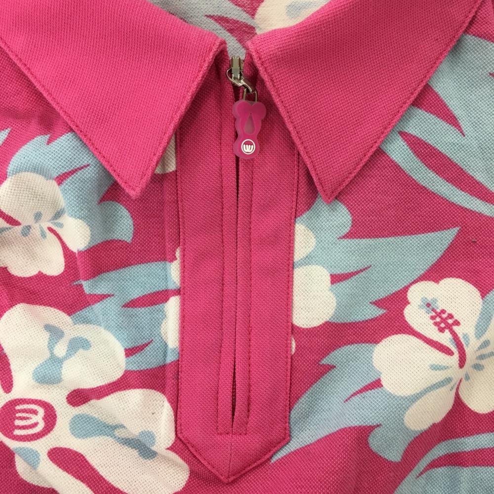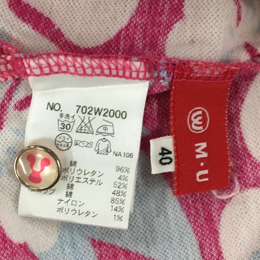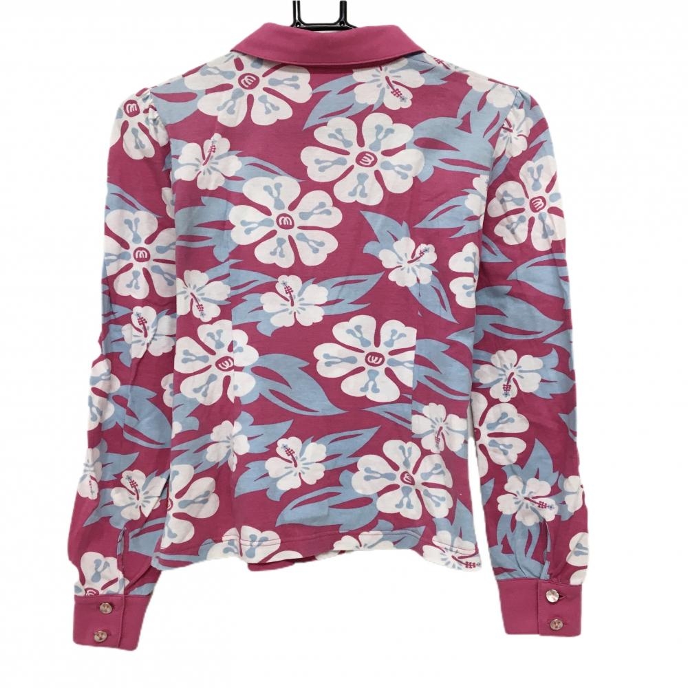 MUスポーツ 長袖ポロシャツ ピンク×ライトブルー 花柄 ハーフジップ レディース 40(M) ゴルフウェア M・U SPORTS