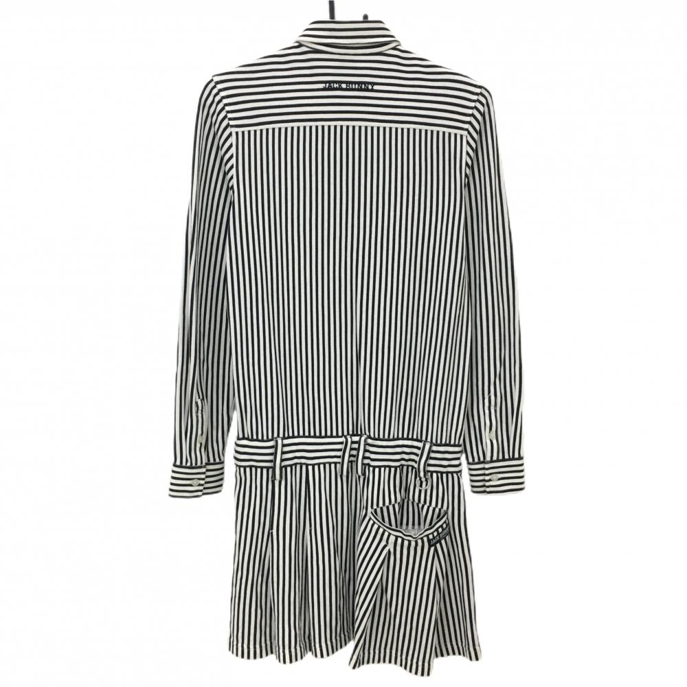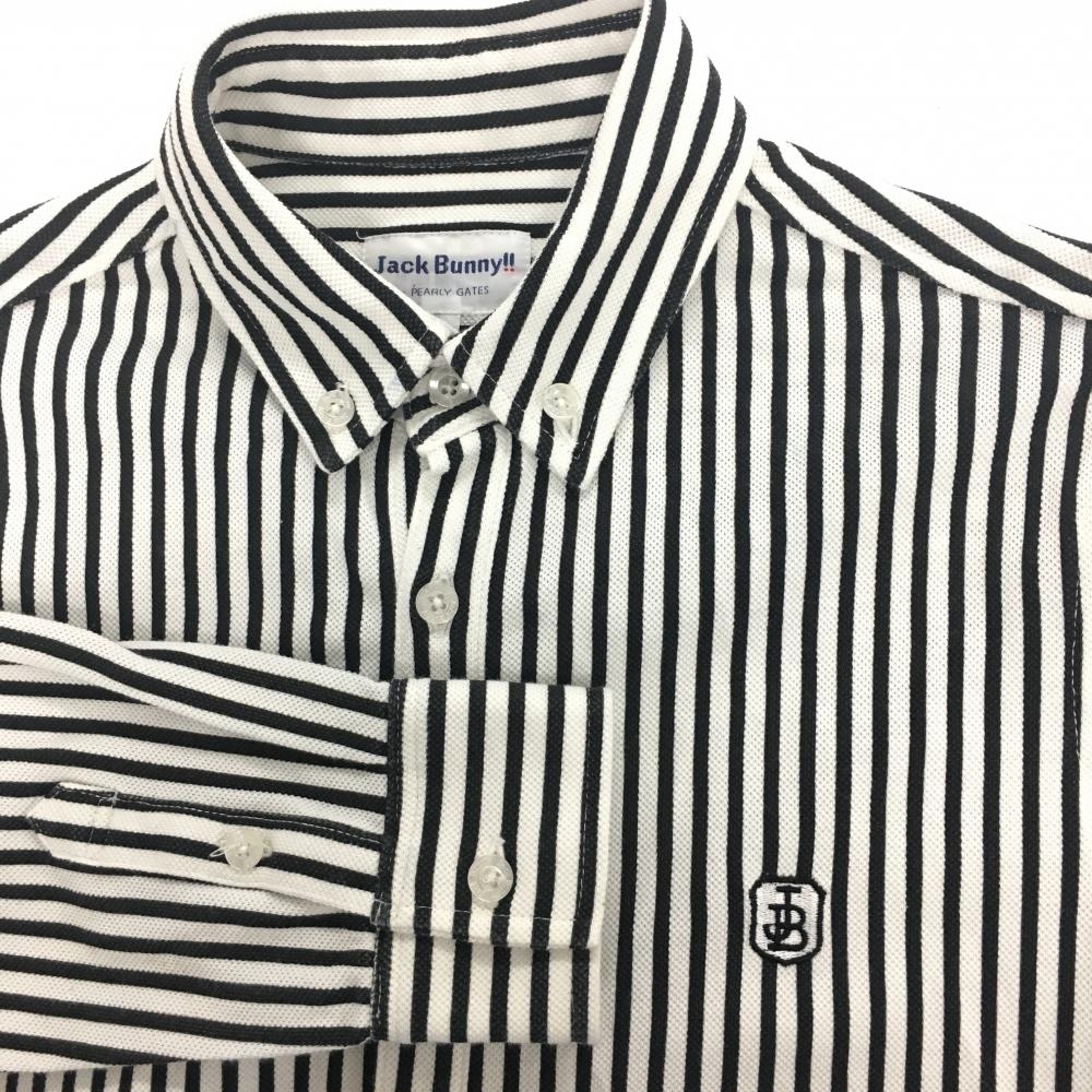ジャックバニー 長袖ポロワンピース 白×黒 ストライプ ボタンダウン レディース 2(L) ゴルフウェア Jack Bunny