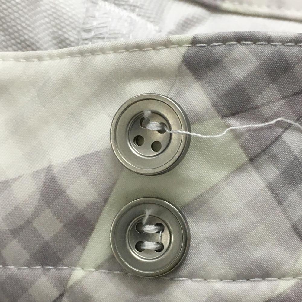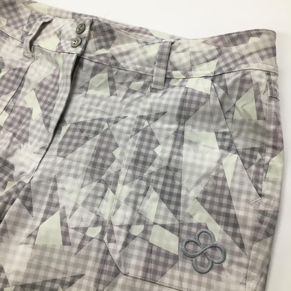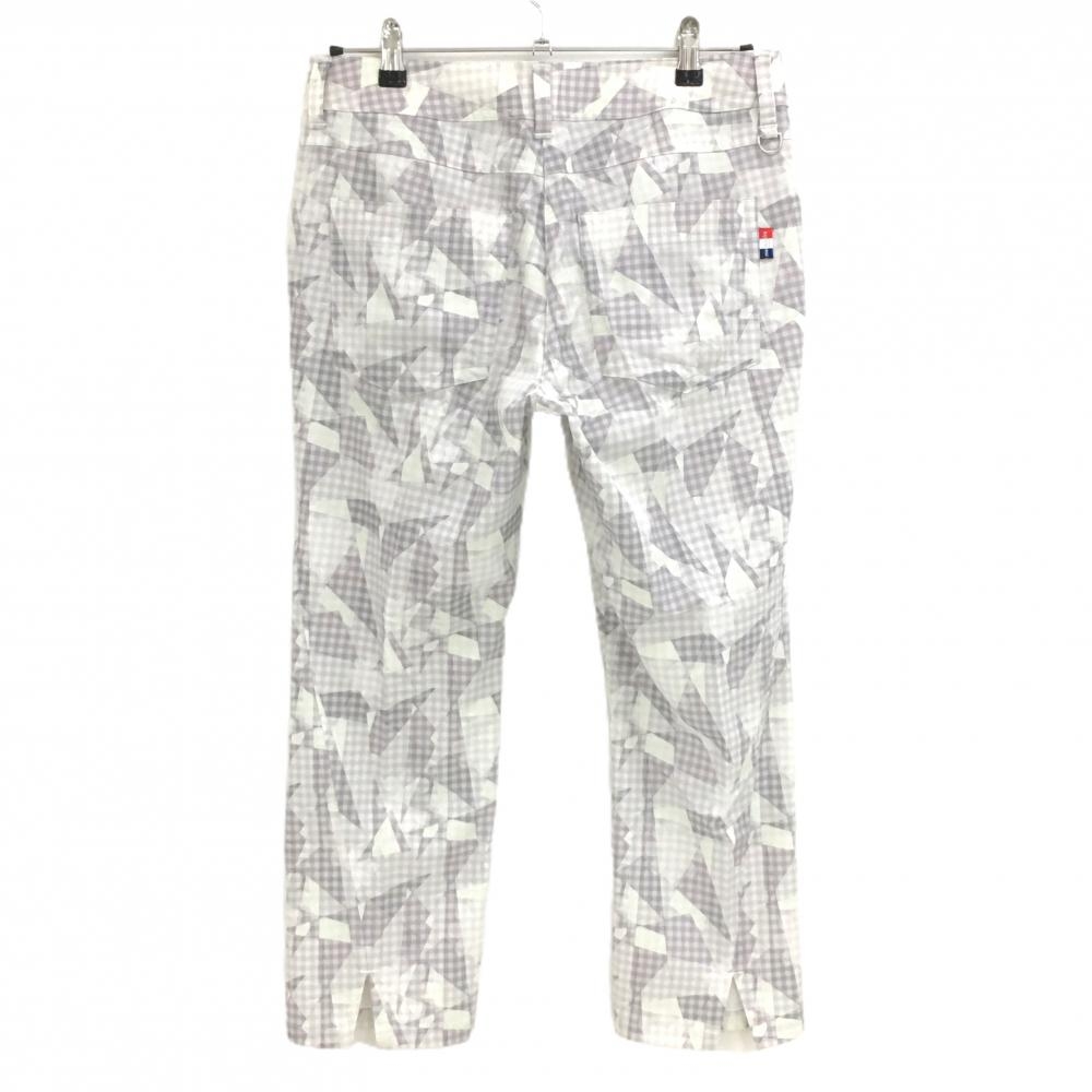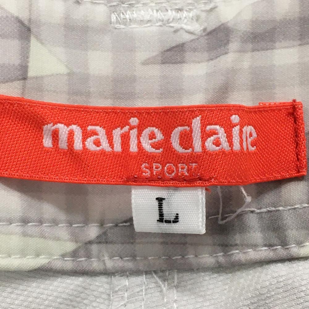 マリクレールスポール 半端丈パンツ 白×グレー 総柄 裾スリット レディース L ゴルフウェア marie claire