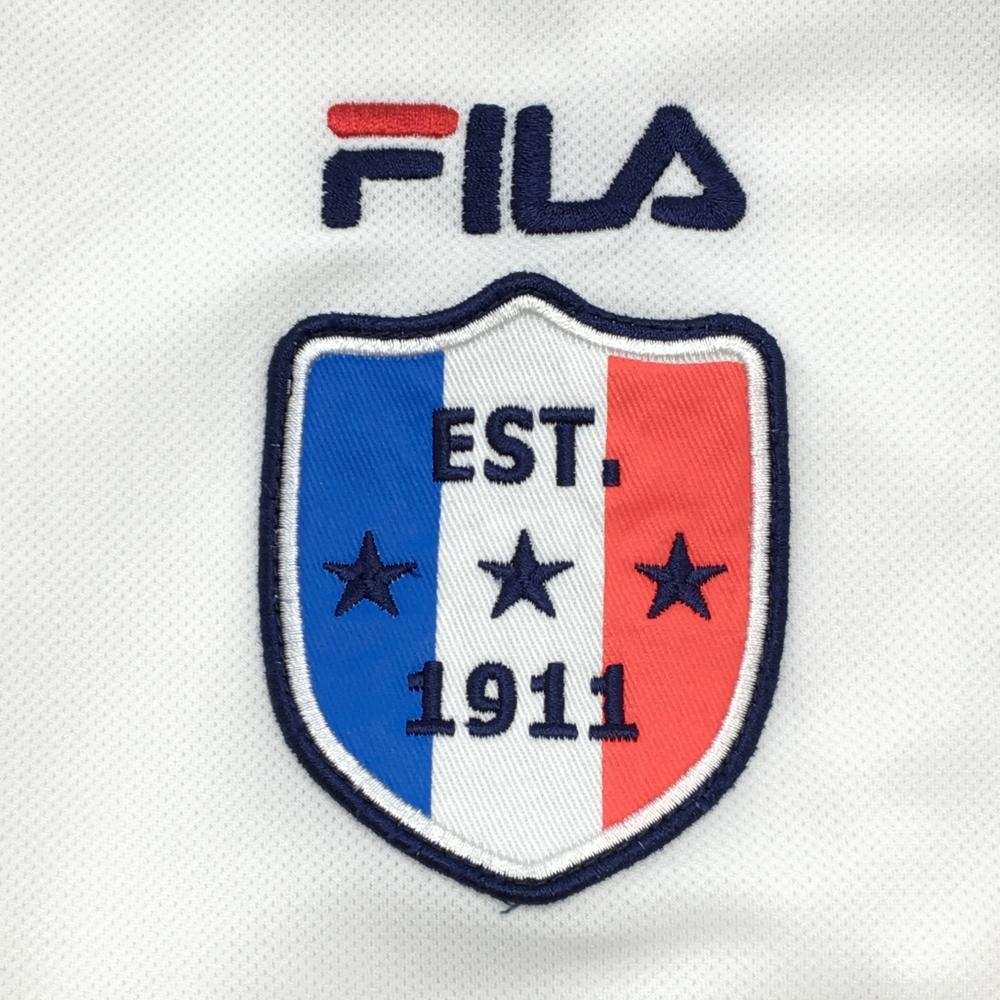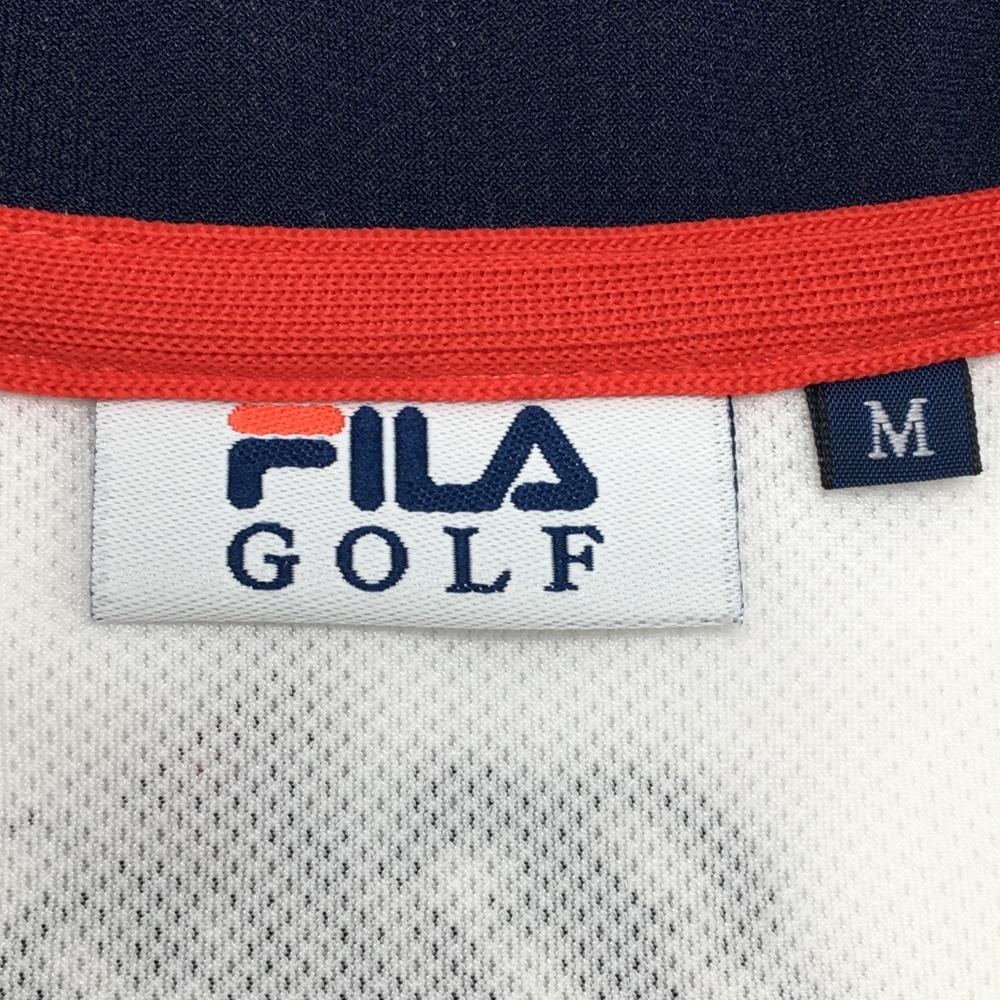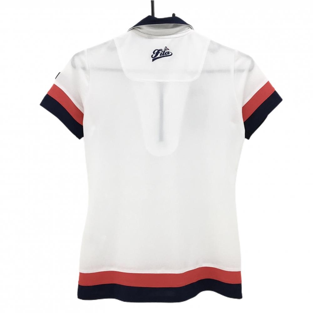 【美品】フィラゴルフ 半袖ハイネックシャツ 白×レッド×ネイビー トリコロール ハーフジップ レディース M ゴルフウェア FILA GOLF