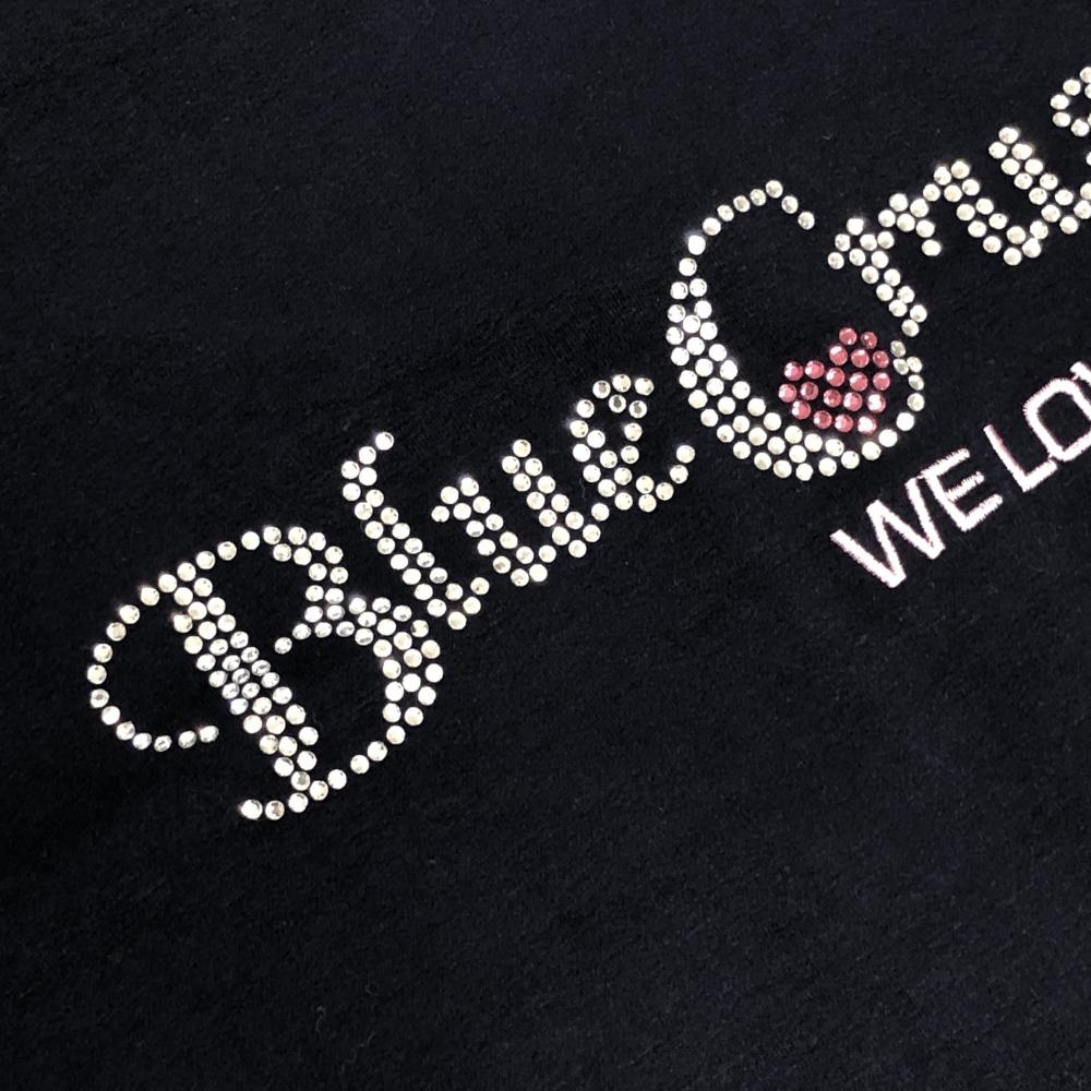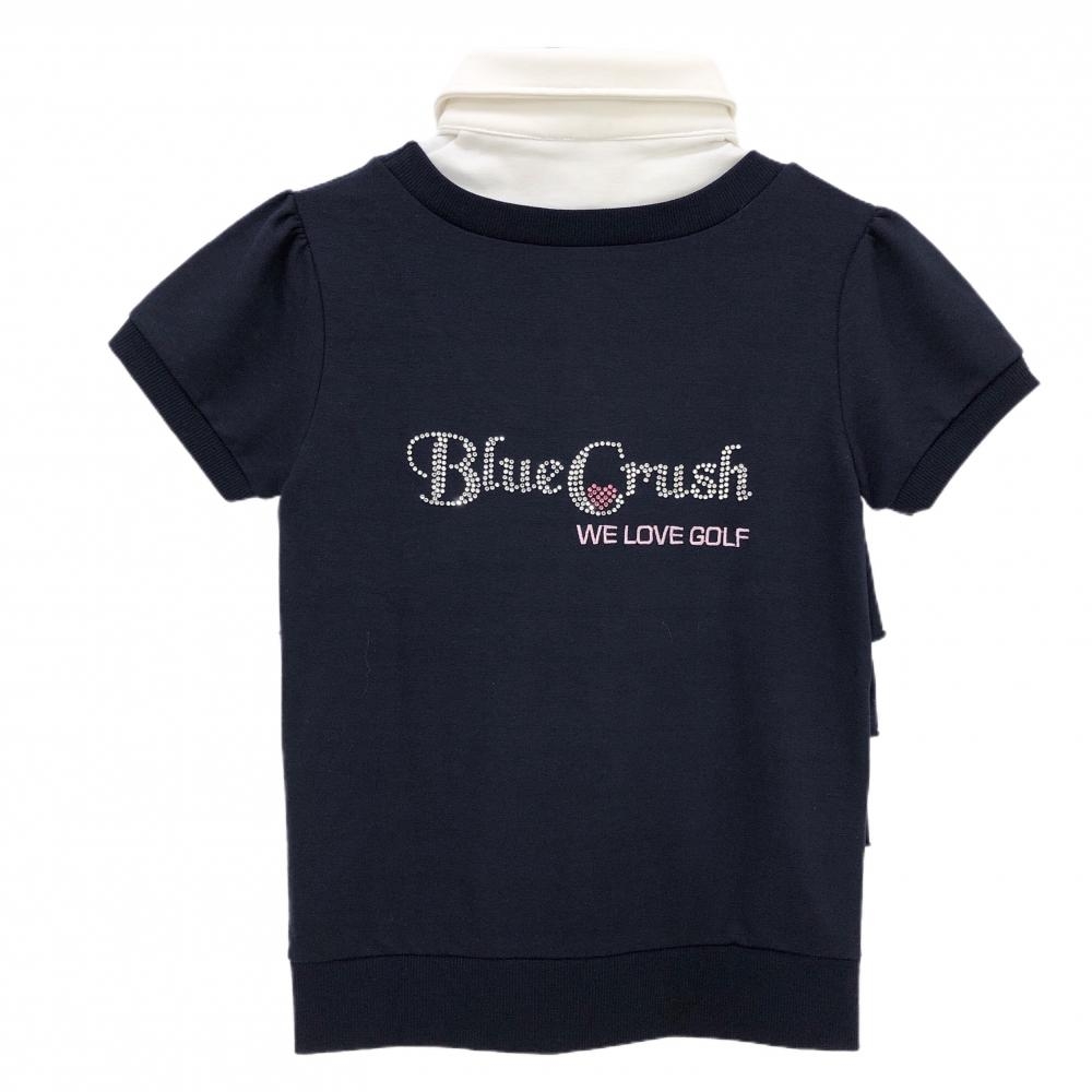 【超美品】ブルークラッシュ 半袖ポロシャツ ネイビー×白 重ね着風 ラインストーン レディース M ゴルフウェア BLUE CRUSH